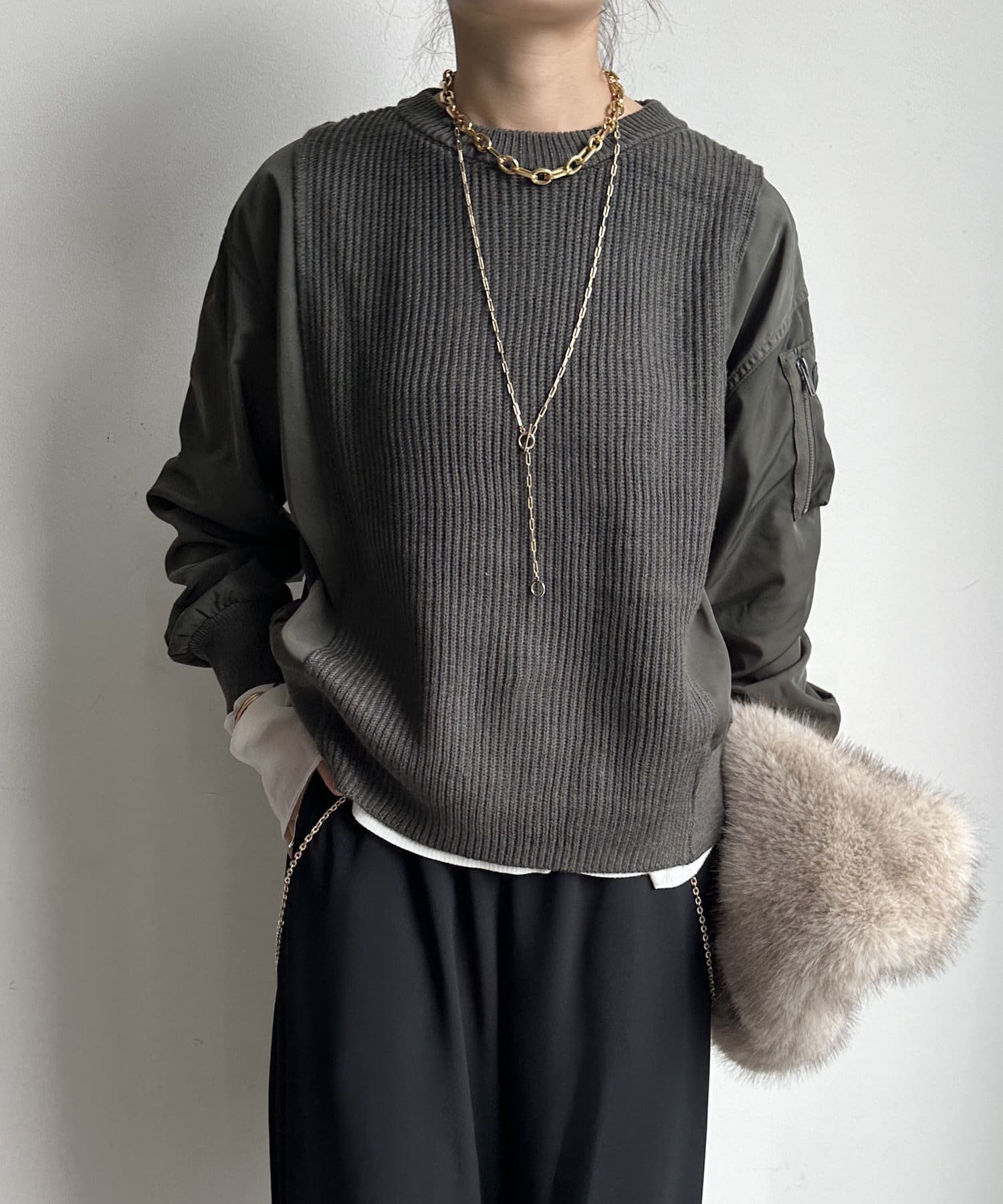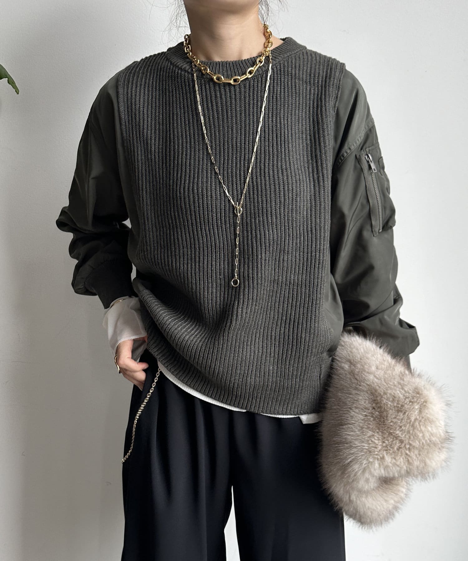 布帛と異素材がドッキングされたデザインのプルオーバーが登場!