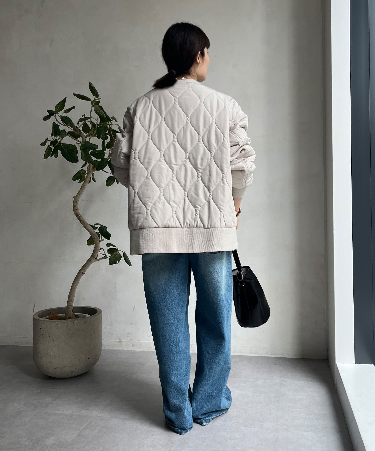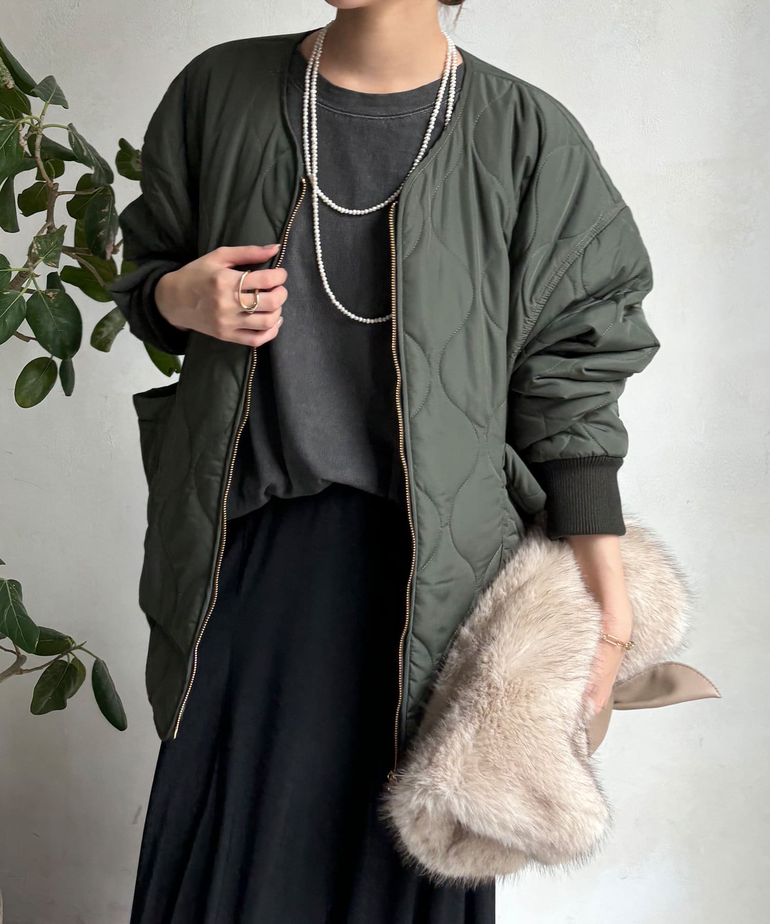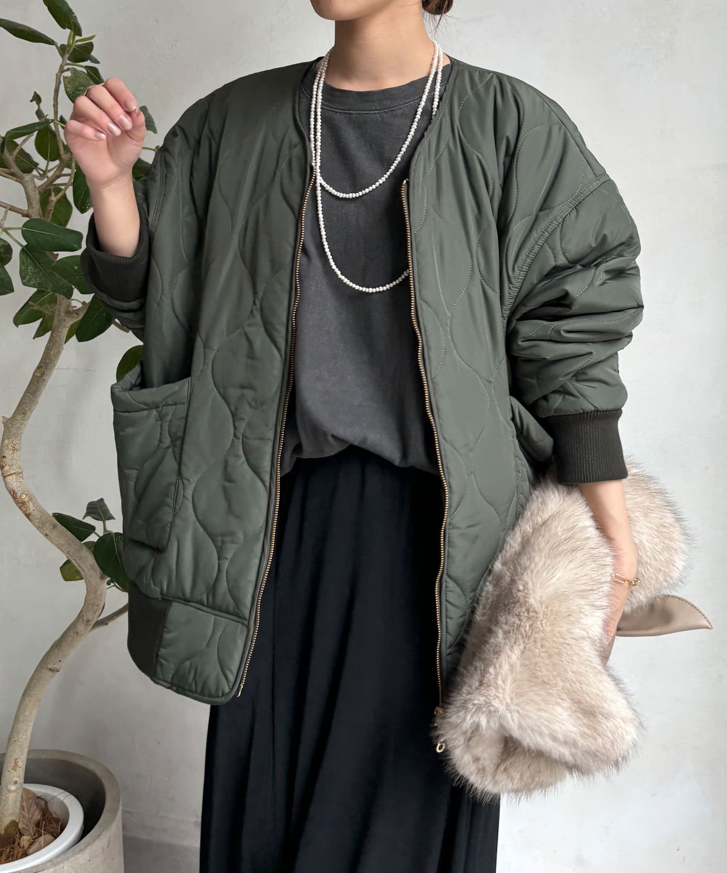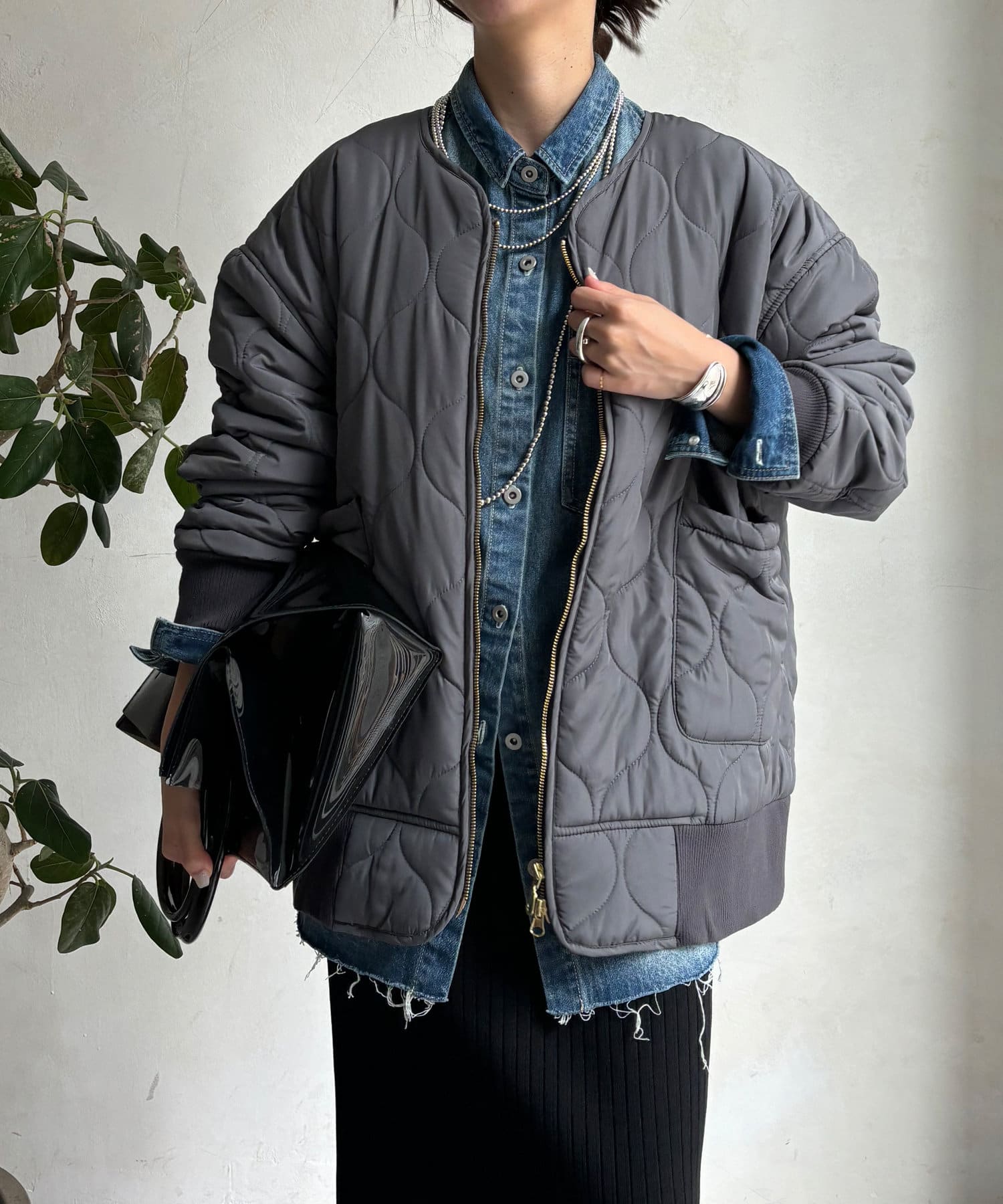 きれいめカジュアルなスタイリングが叶うキルティングアウター。