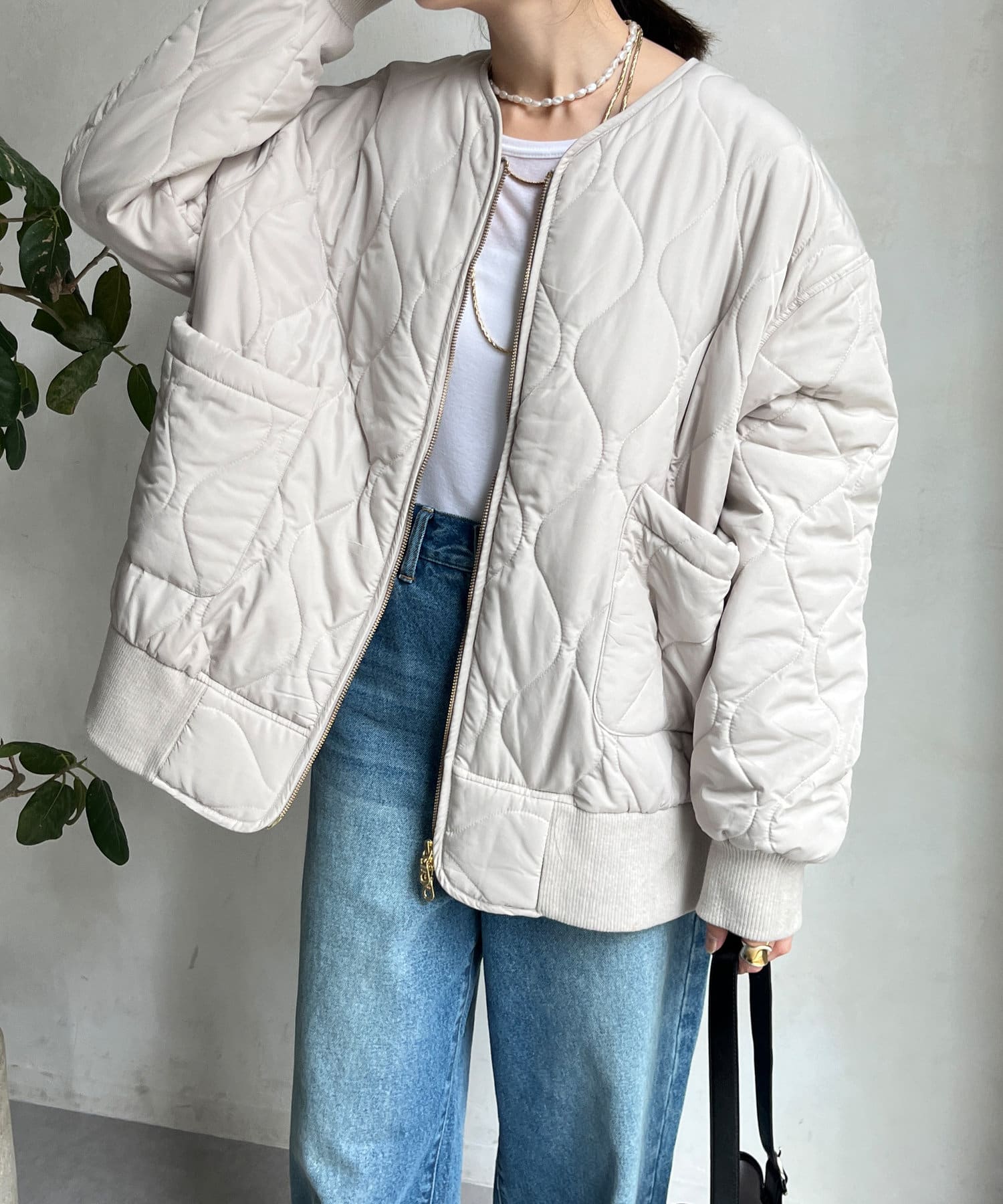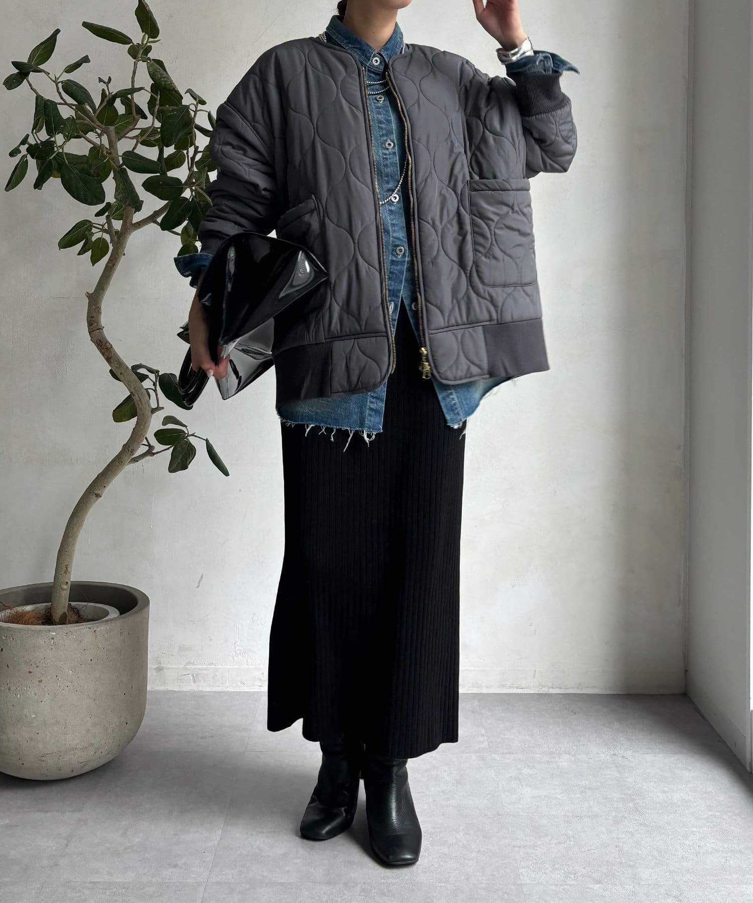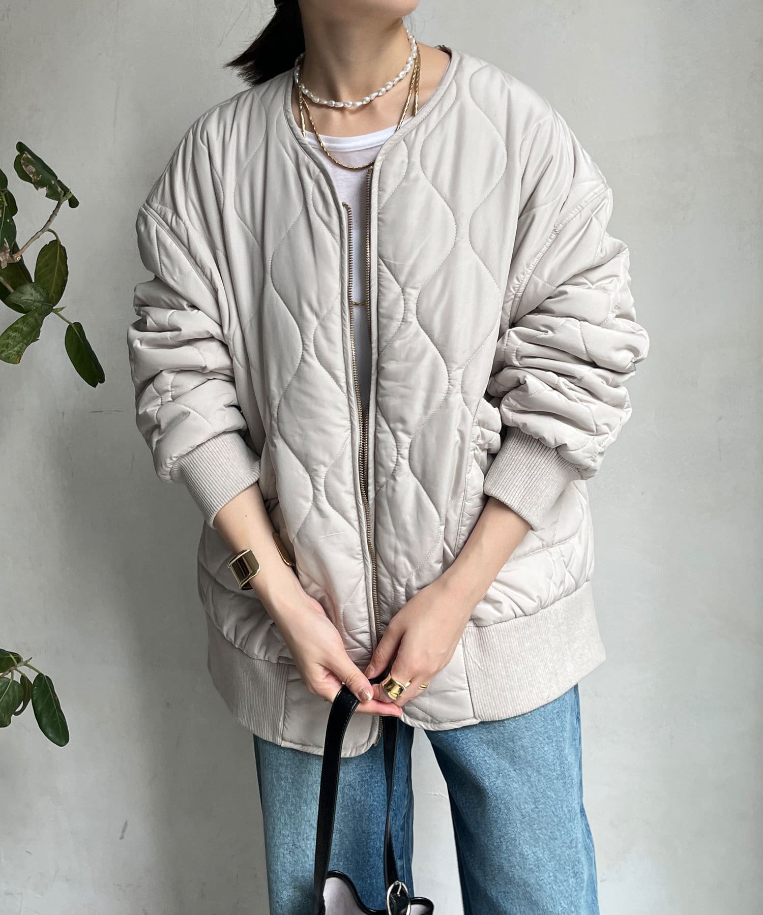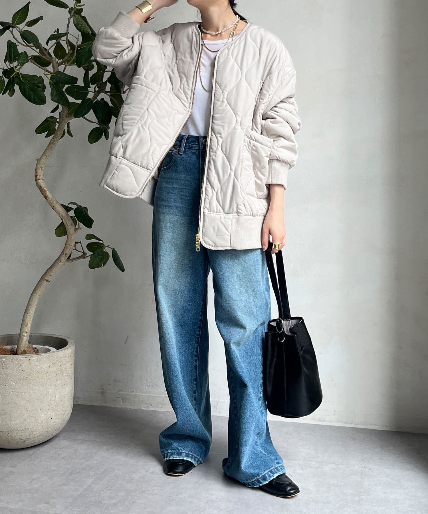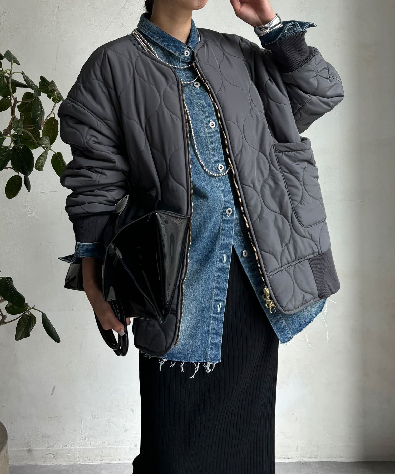 きれいめカジュアルなスタイリングが叶うキルティングアウター。