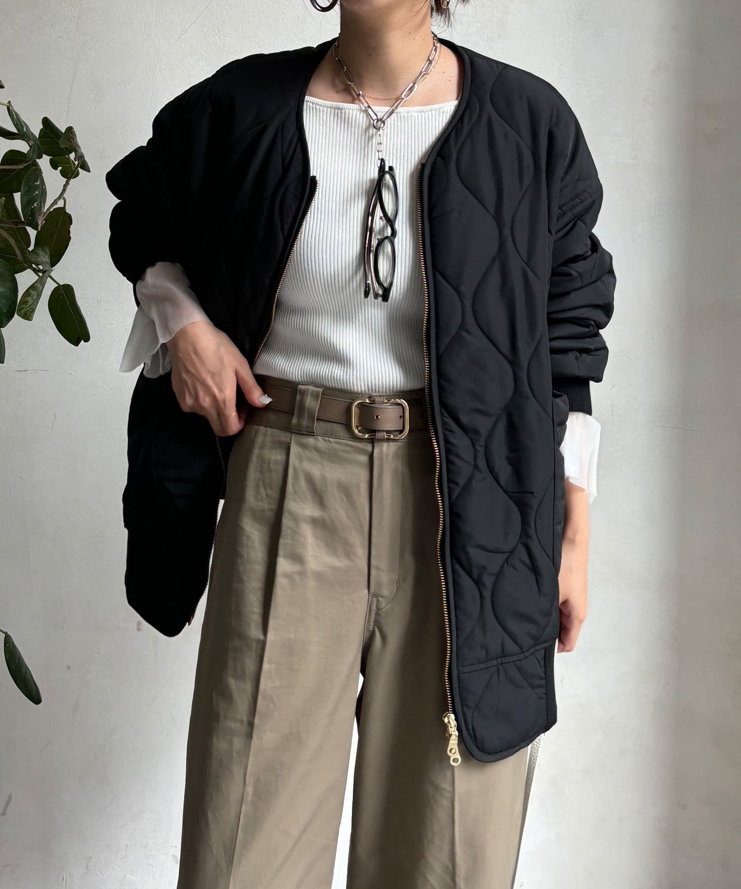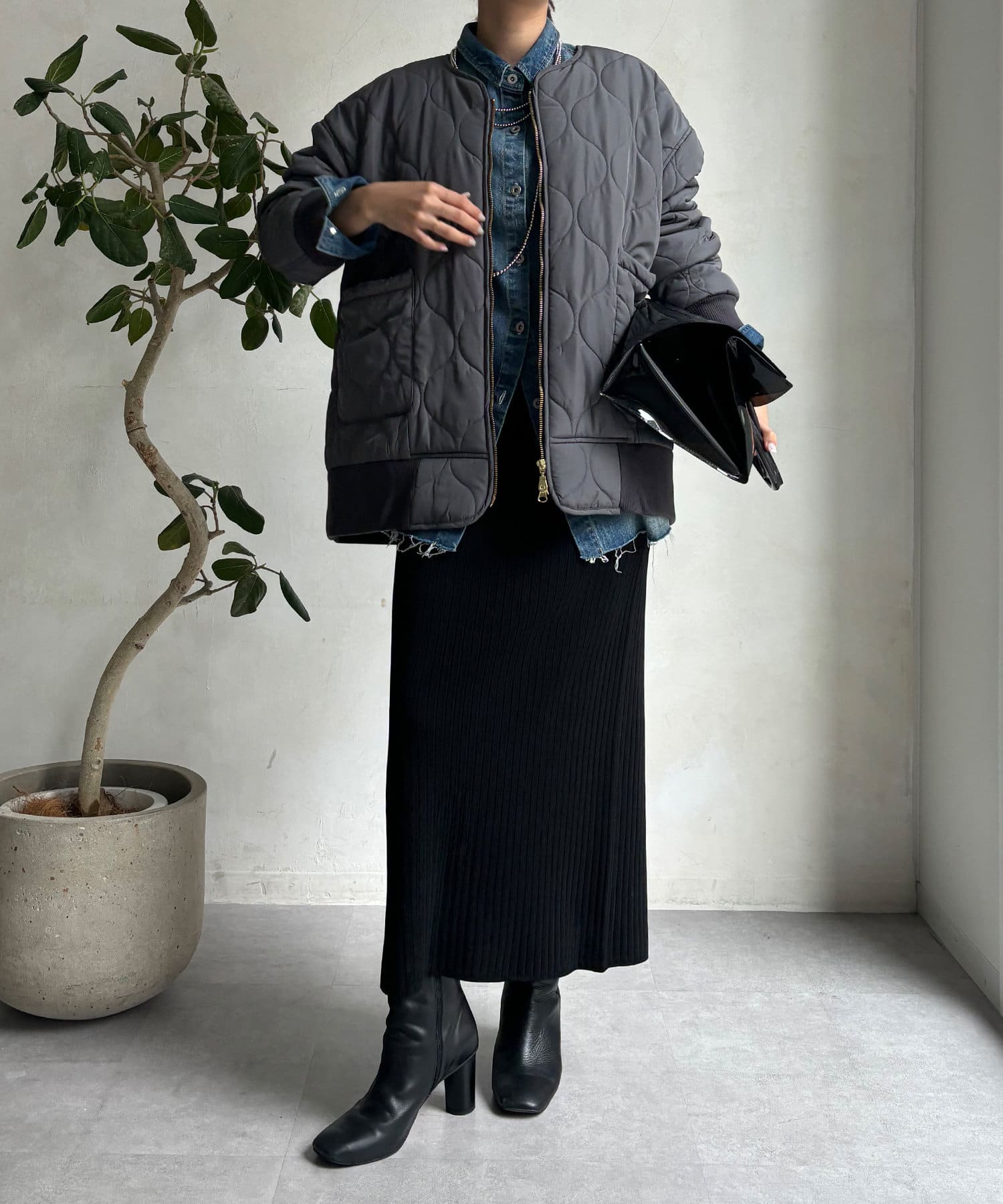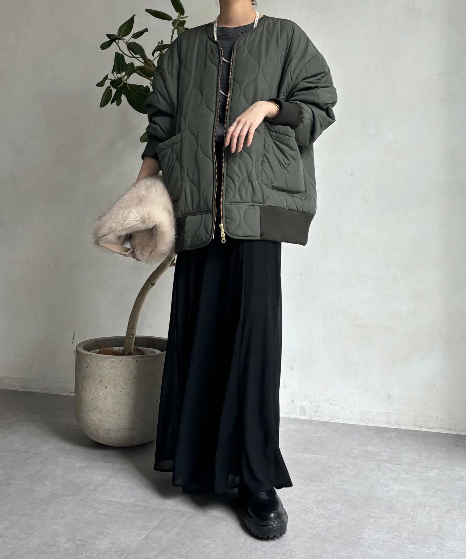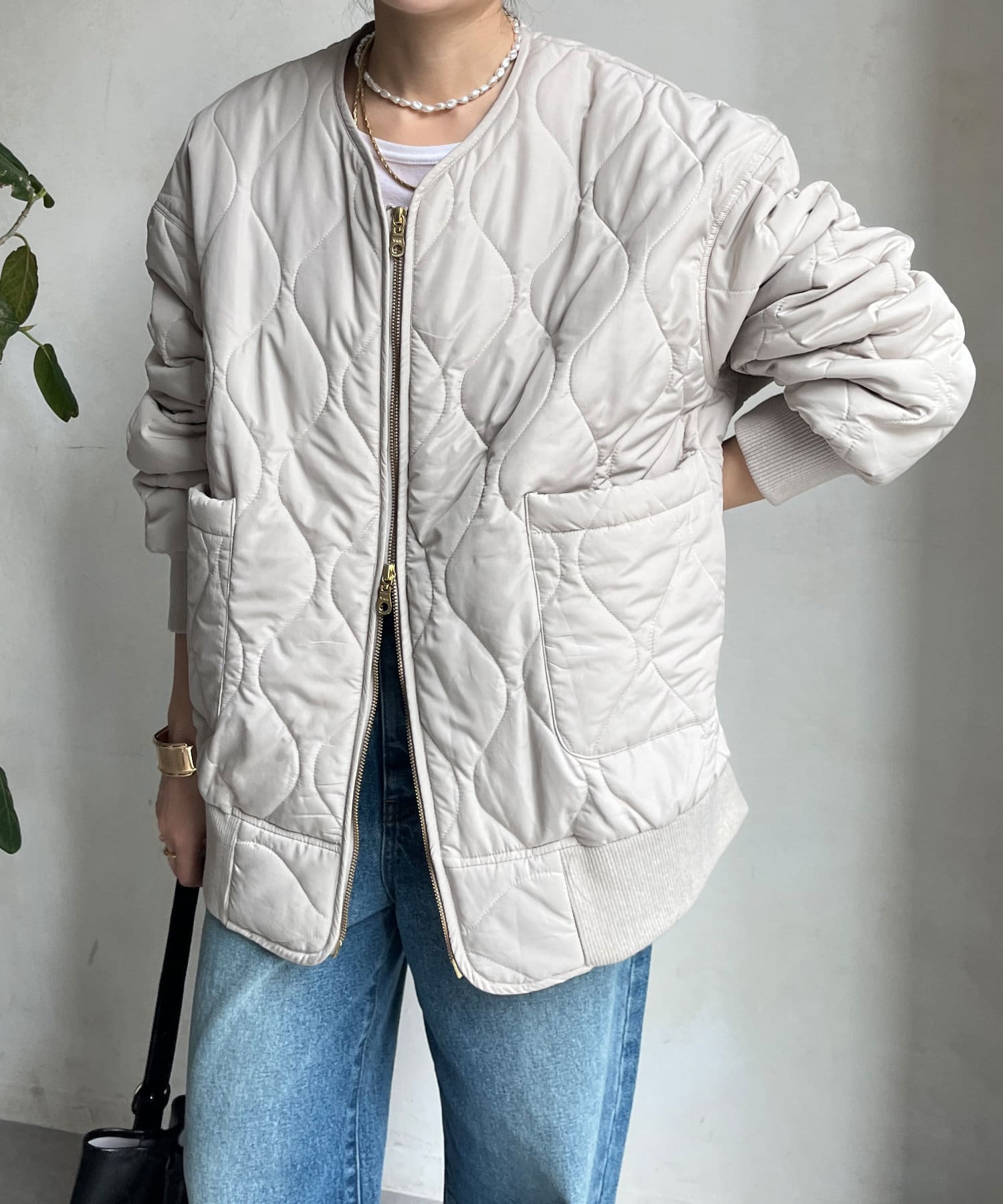 きれいめカジュアルなスタイリングが叶うキルティングアウター。
