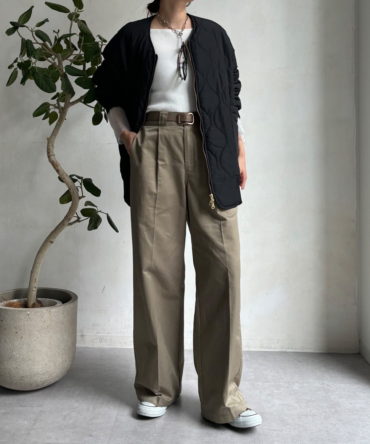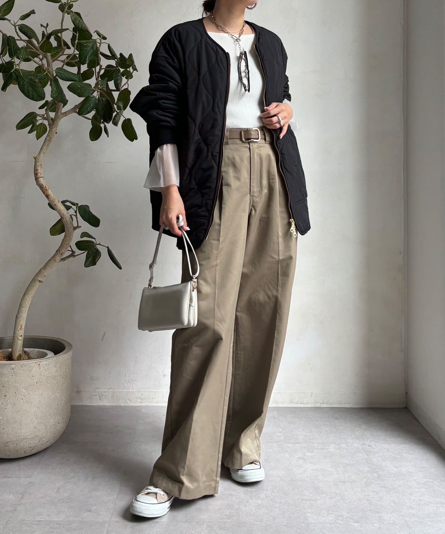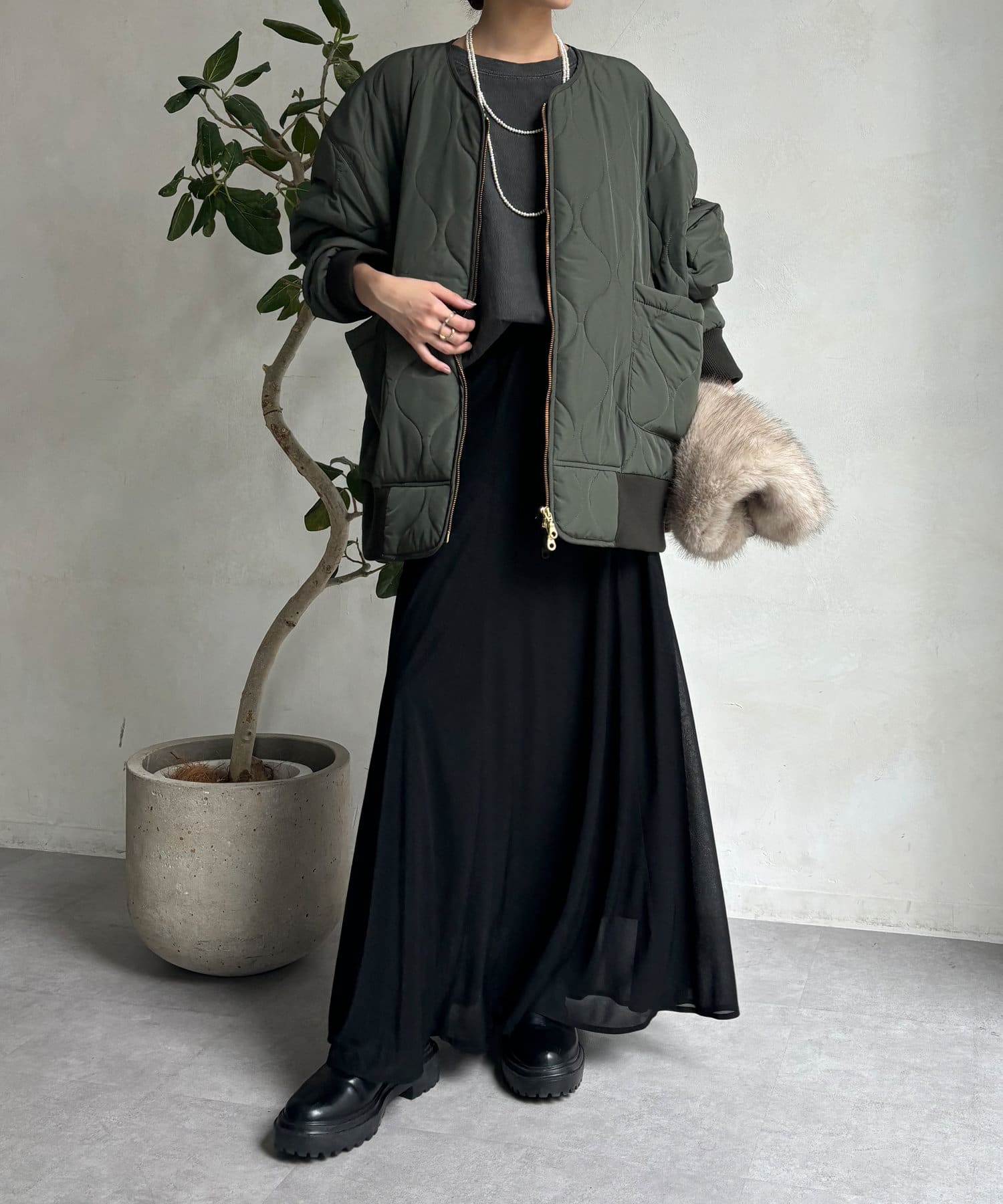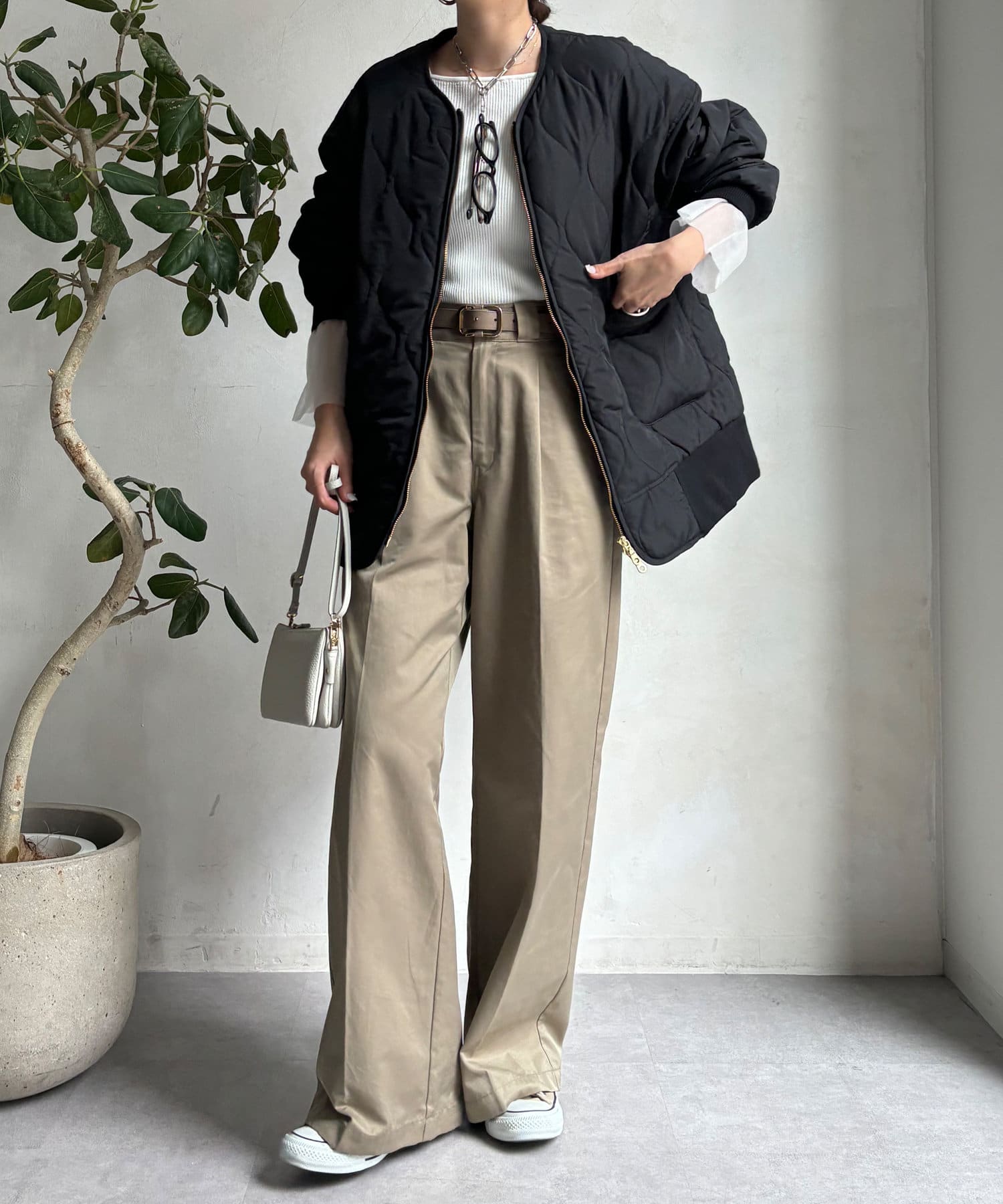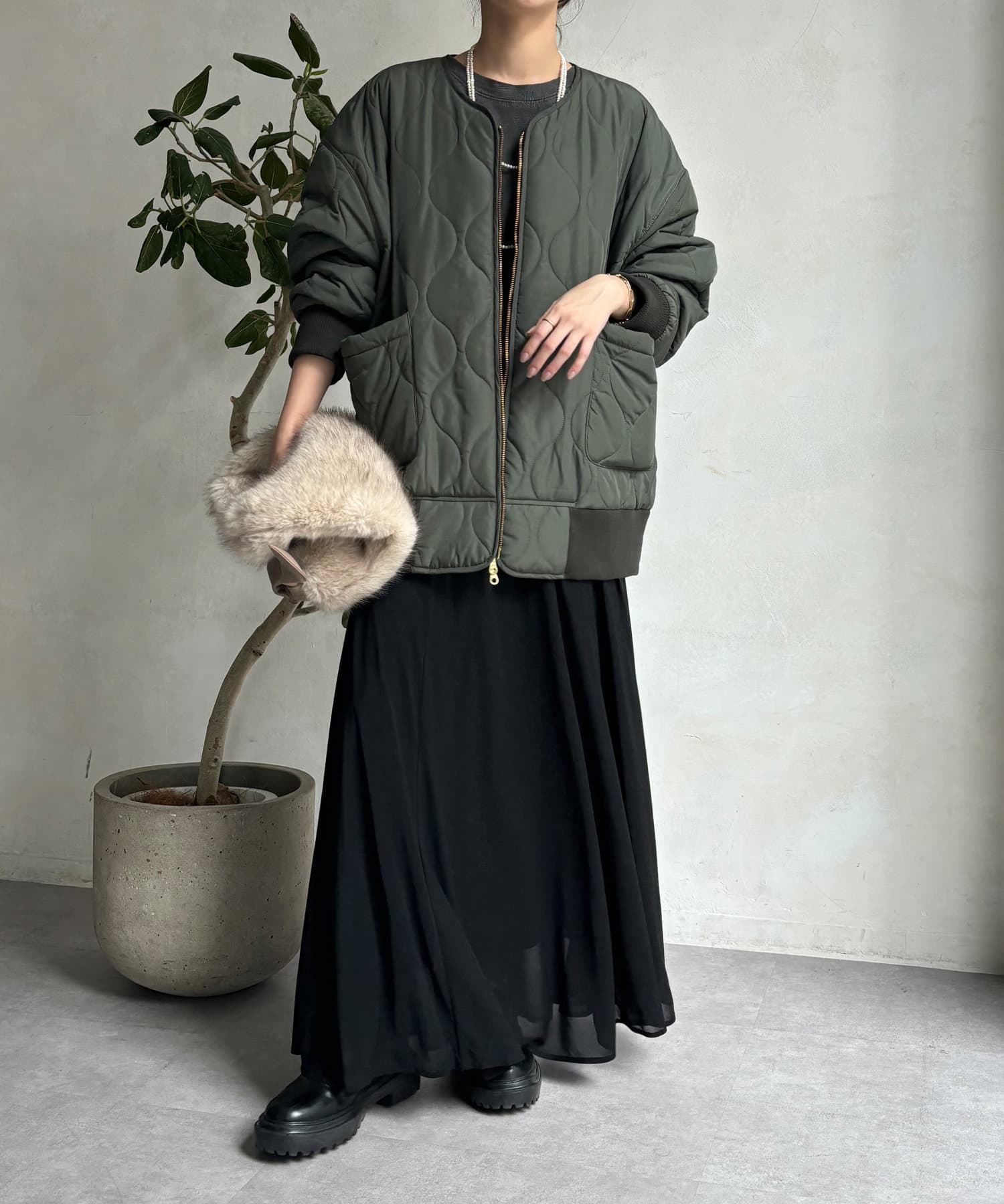 きれいめカジュアルなスタイリングが叶うキルティングアウター。