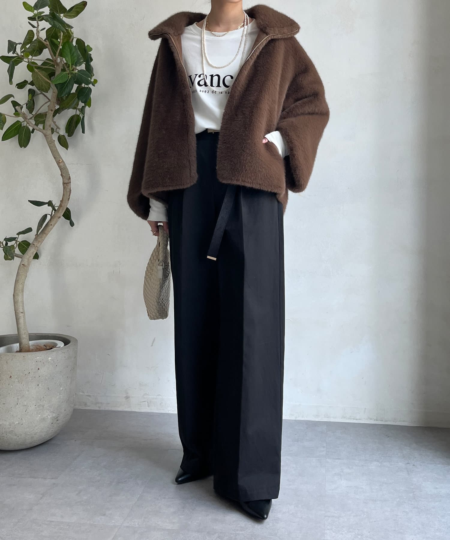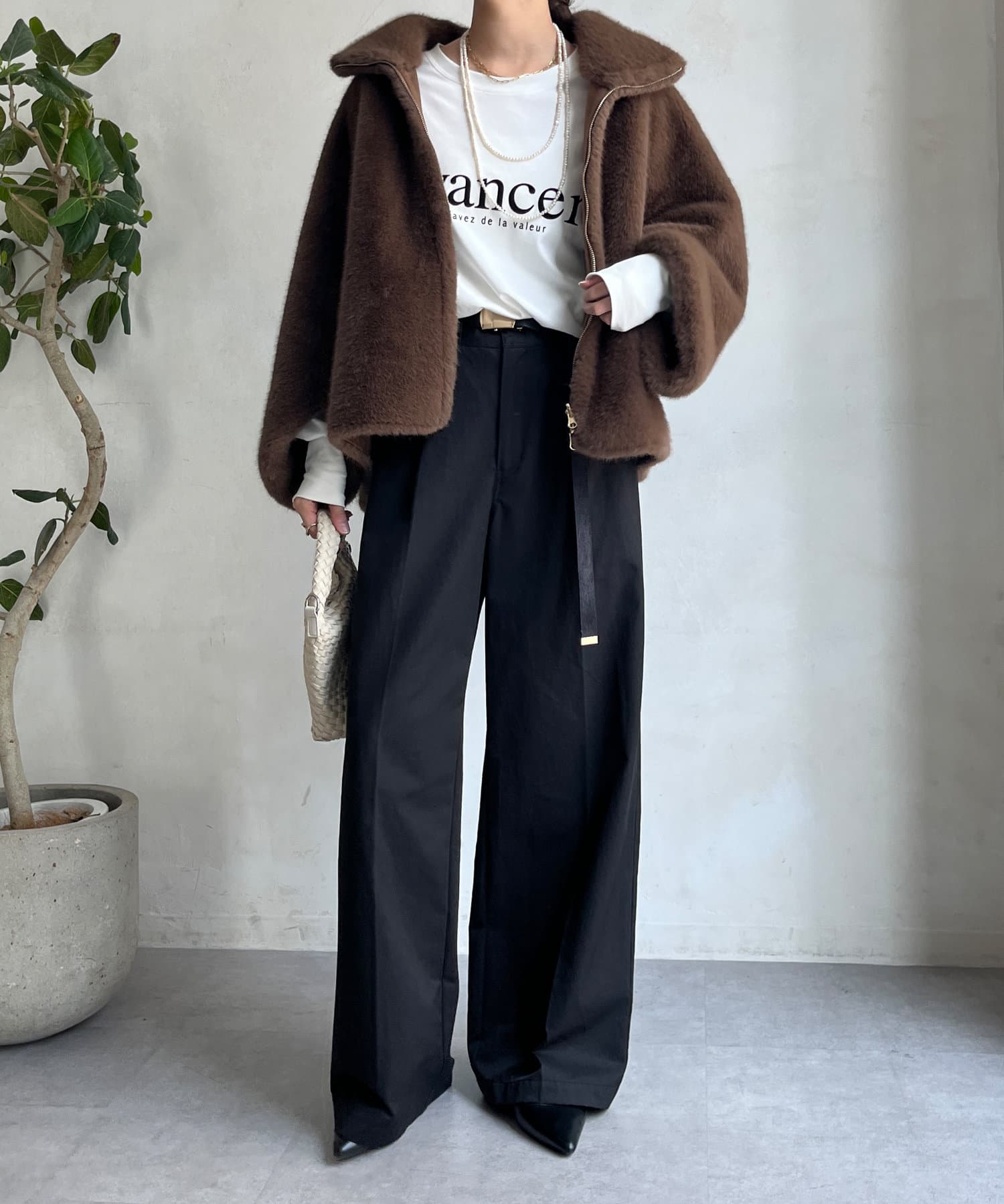 身幅がゆったりとしたシルエットなので、厚手のニットにも合わせやすく真冬にも大活躍間違いなしです!