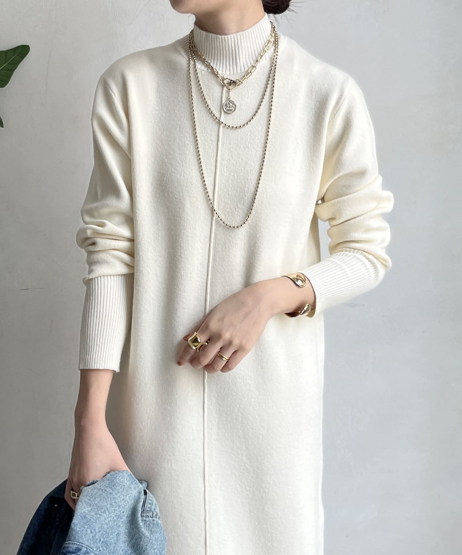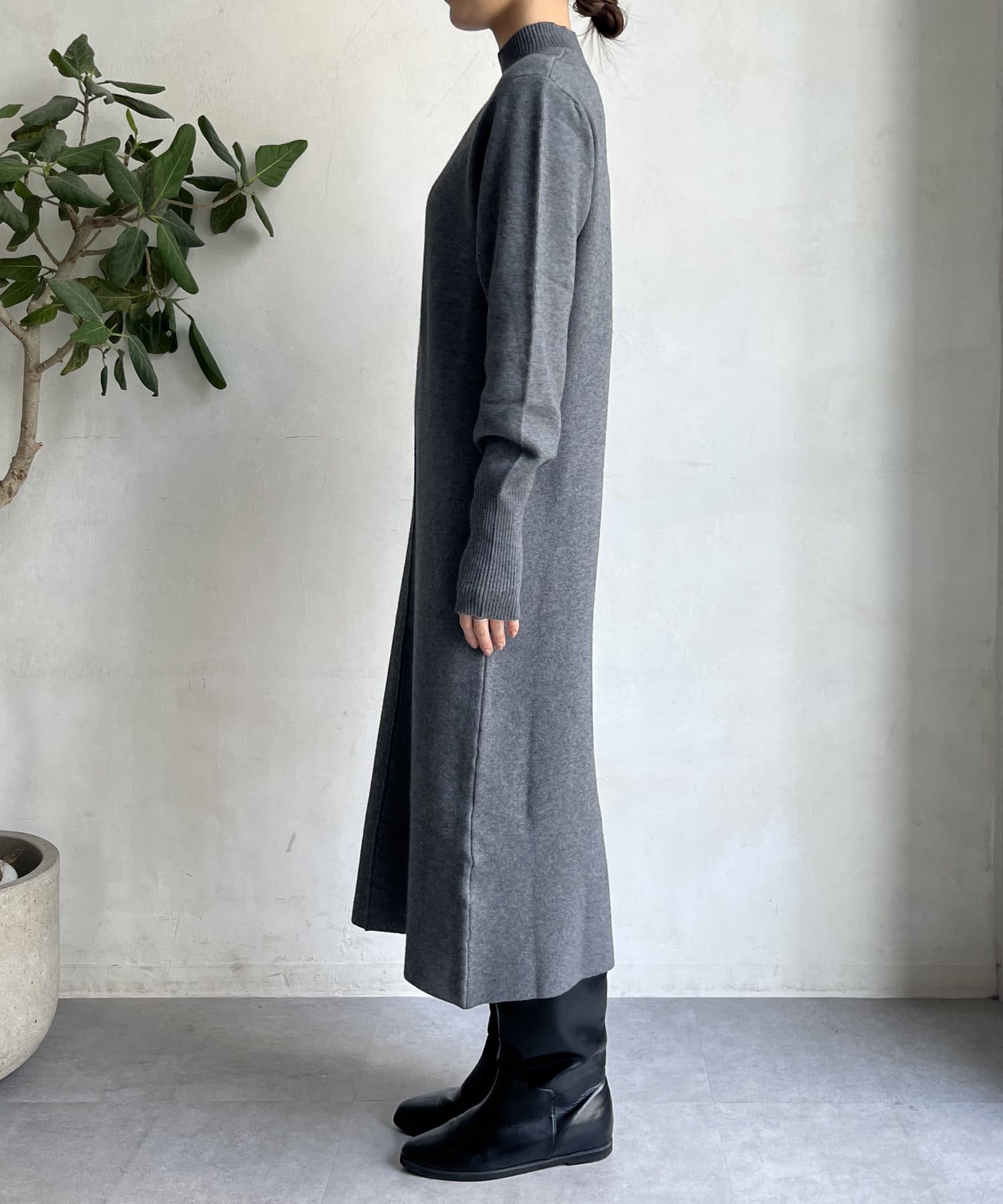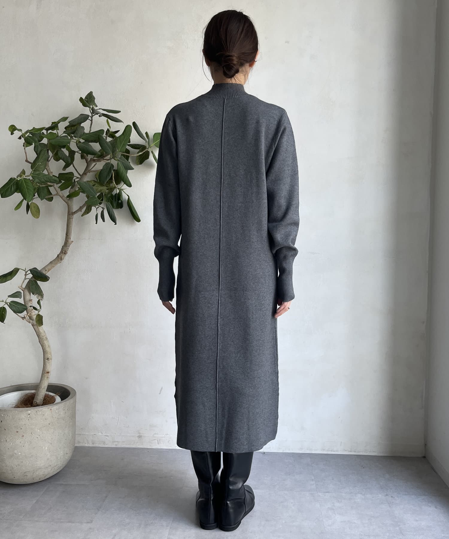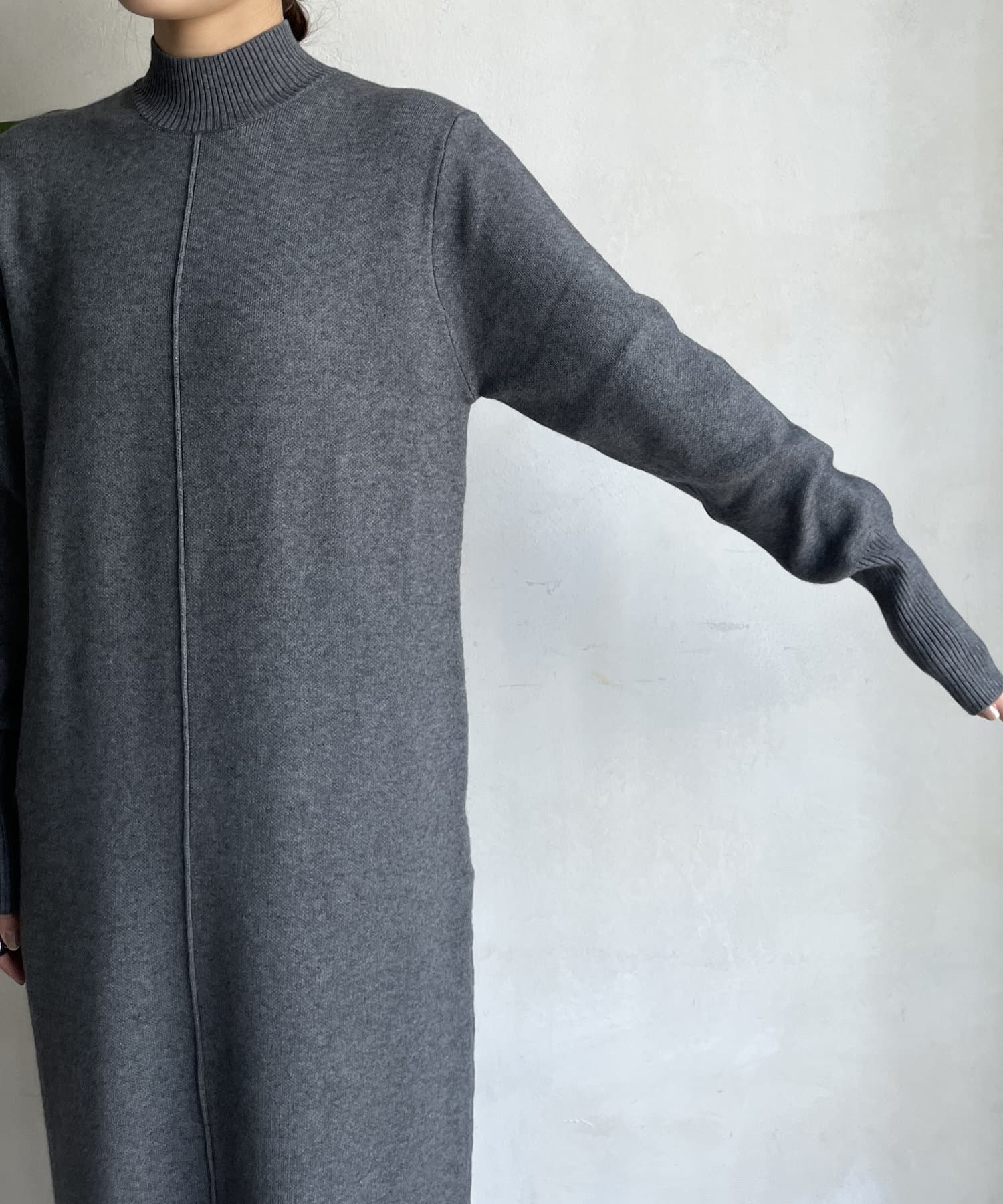 中のワンピースのすっきりしたシルエットと、センターのピンタックがスタイルを綺麗に見せてくれます。