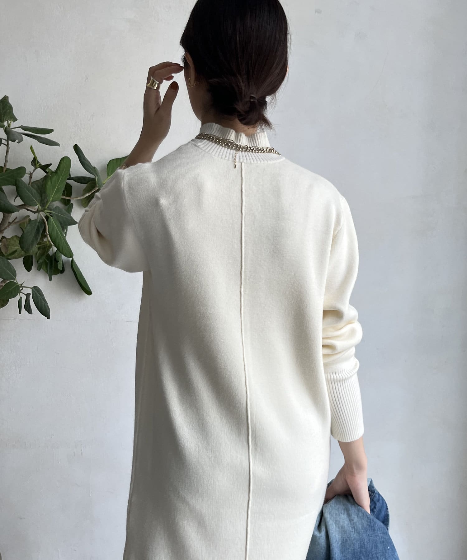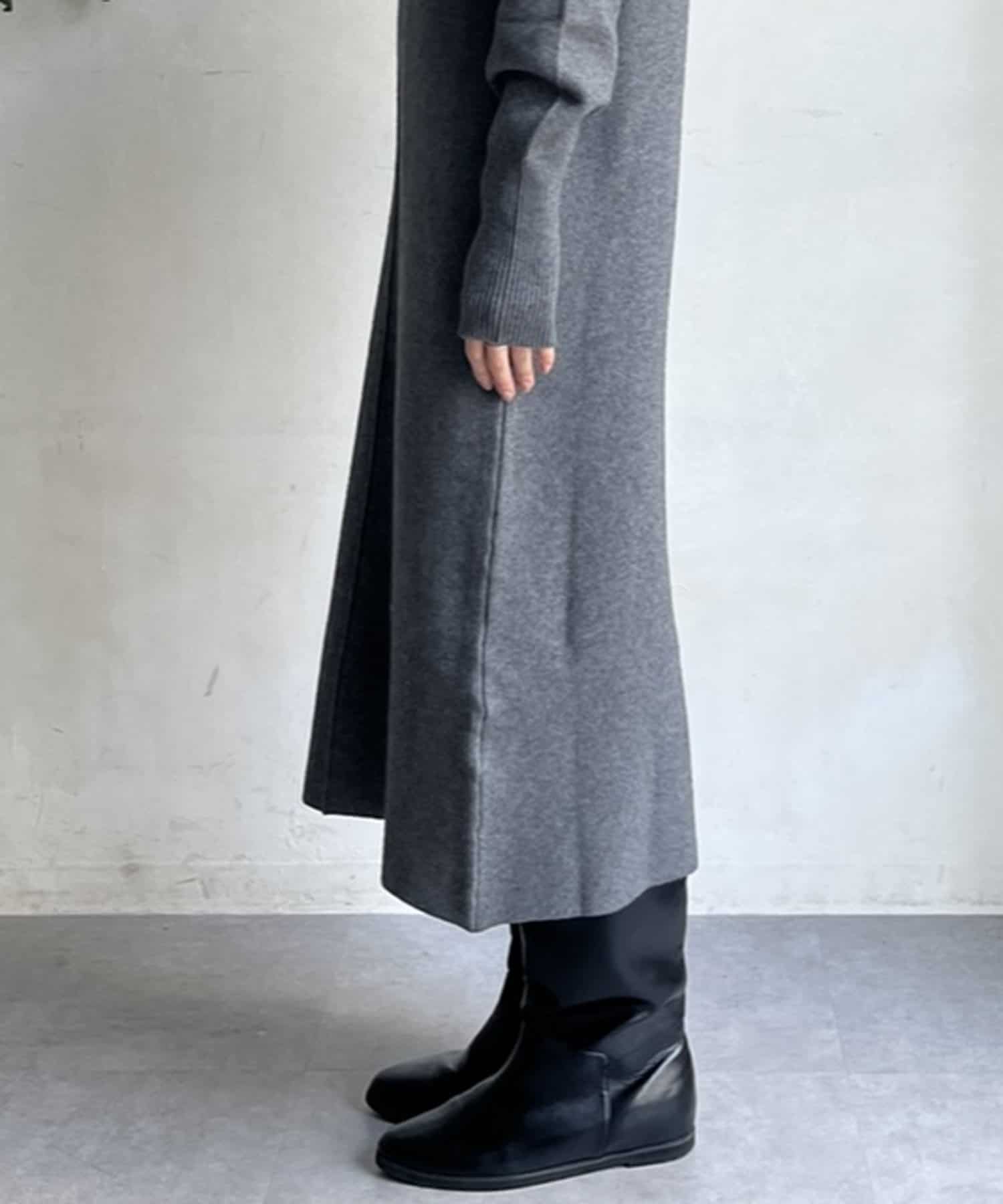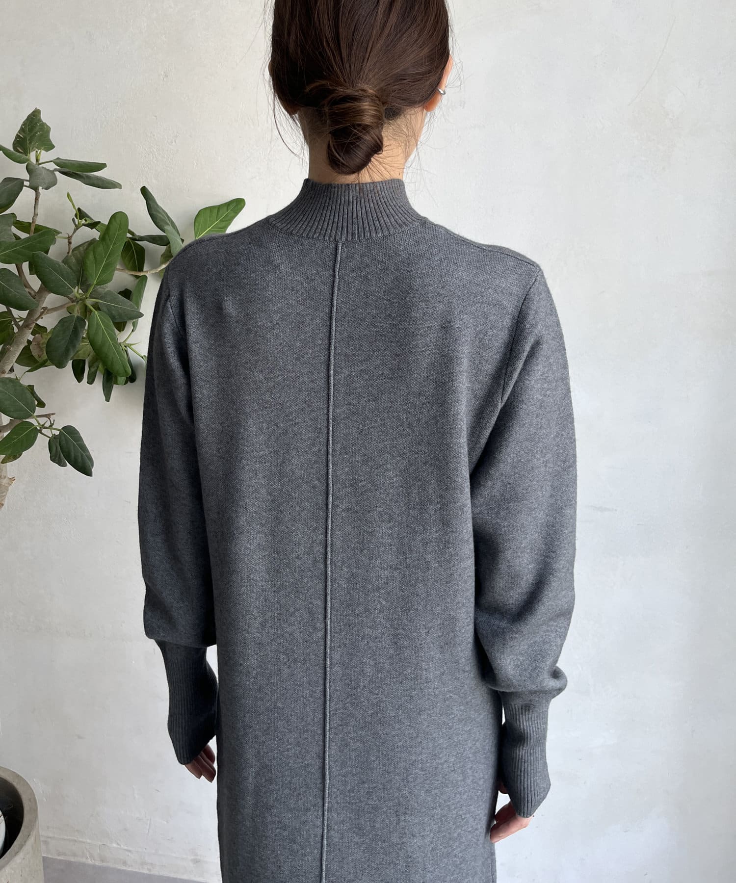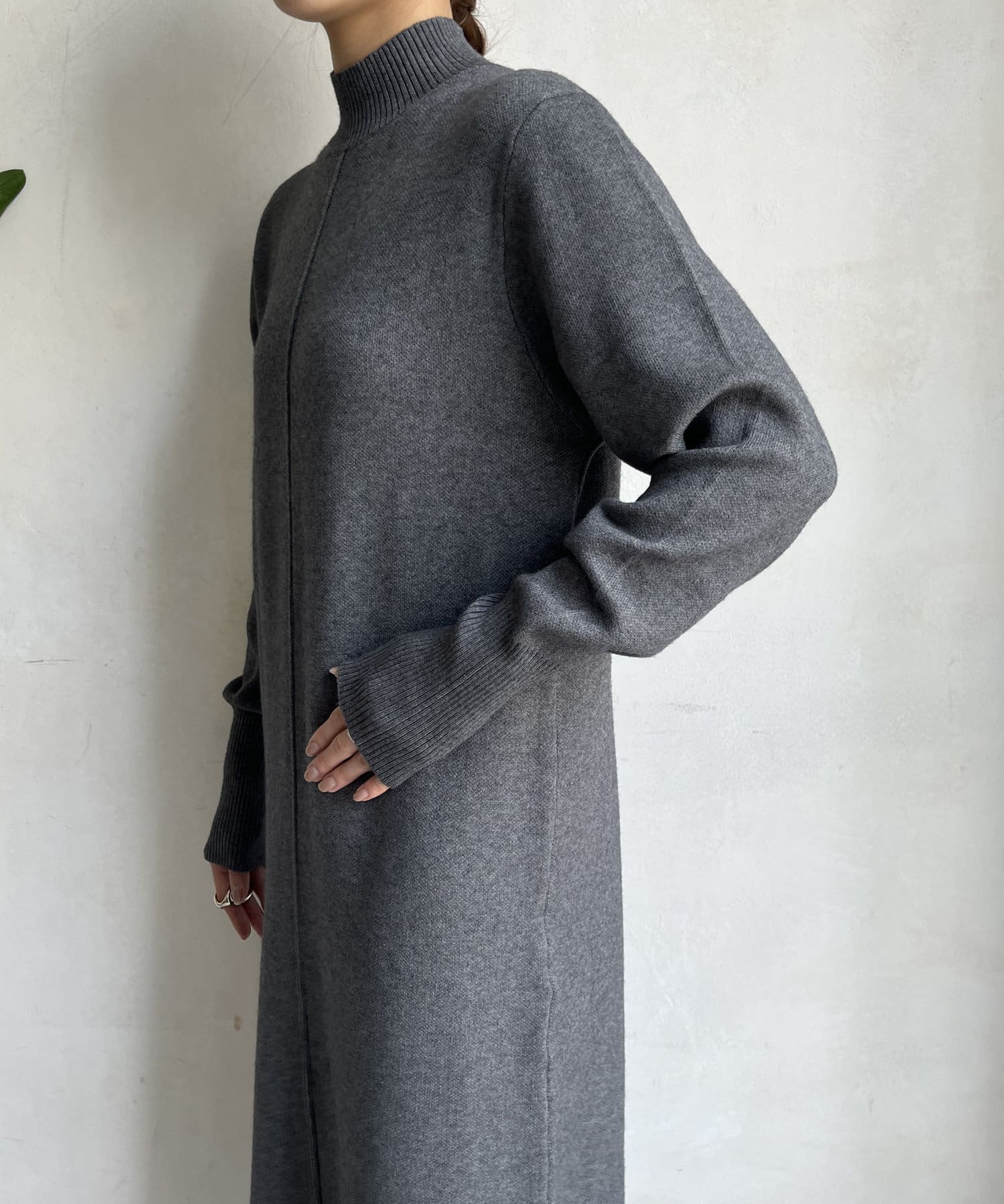 中のワンピースのすっきりしたシルエットと、センターのピンタックがスタイルを綺麗に見せてくれます。