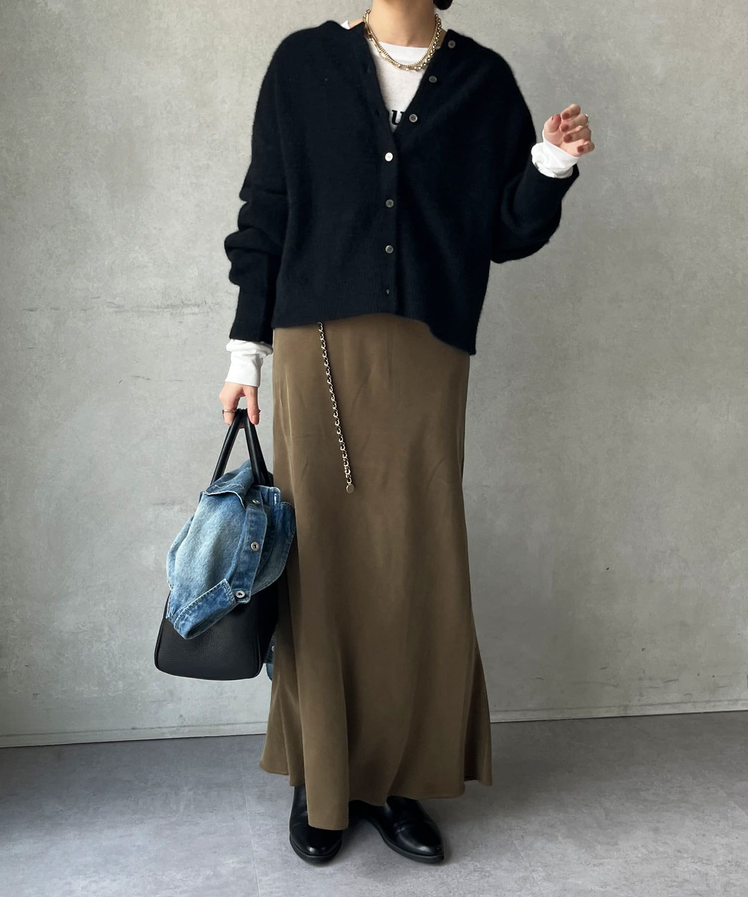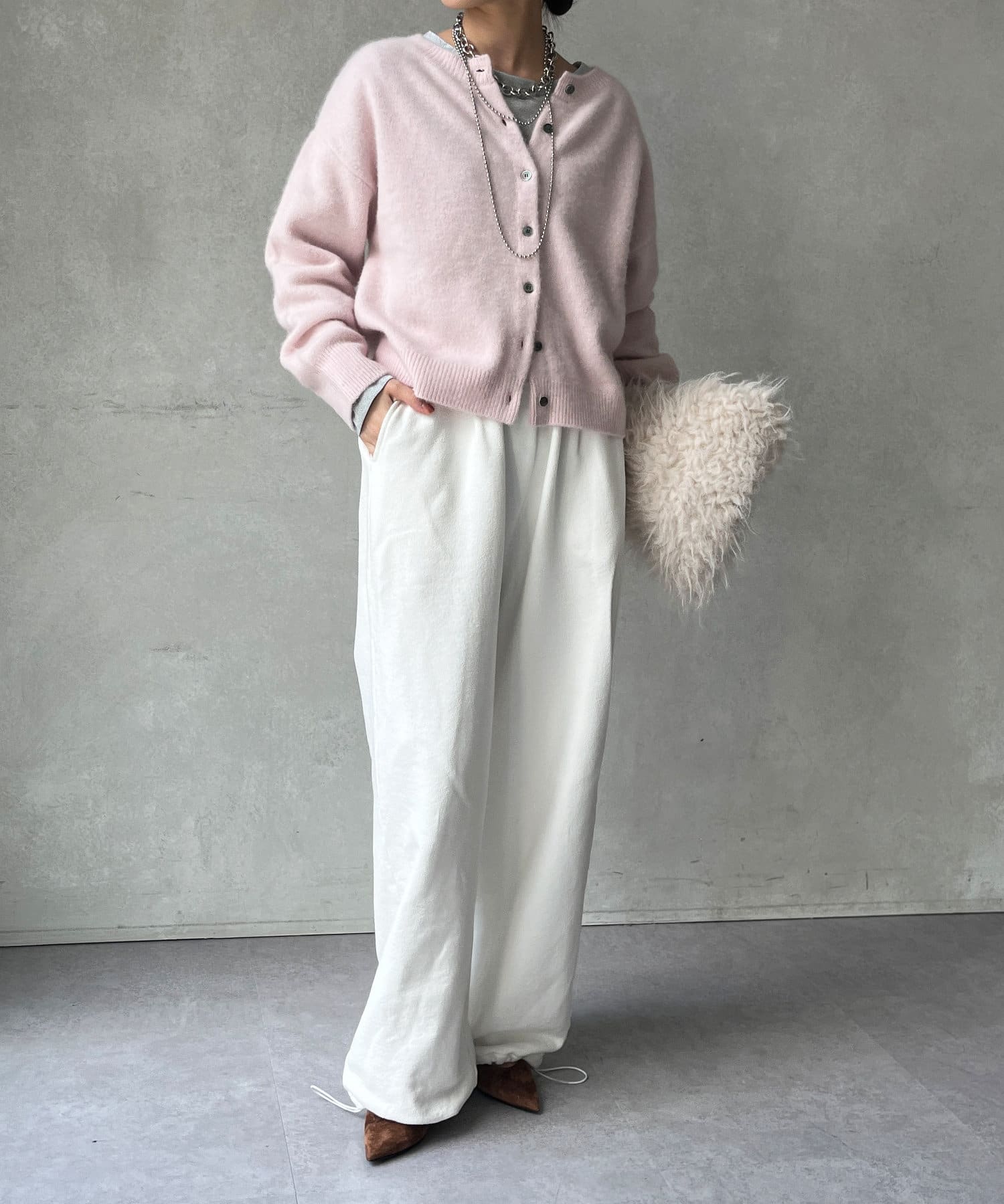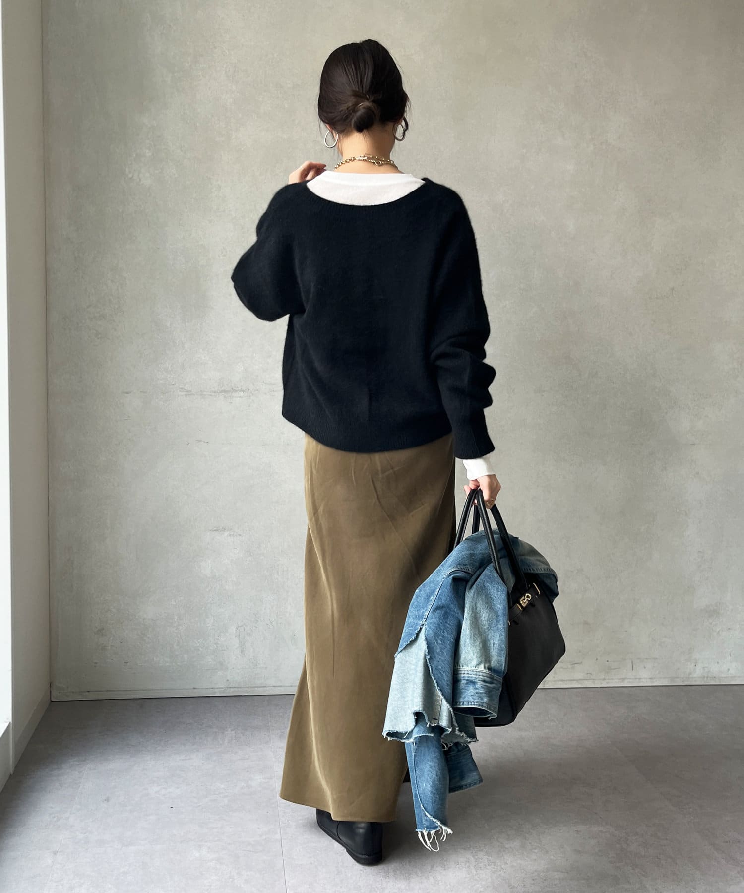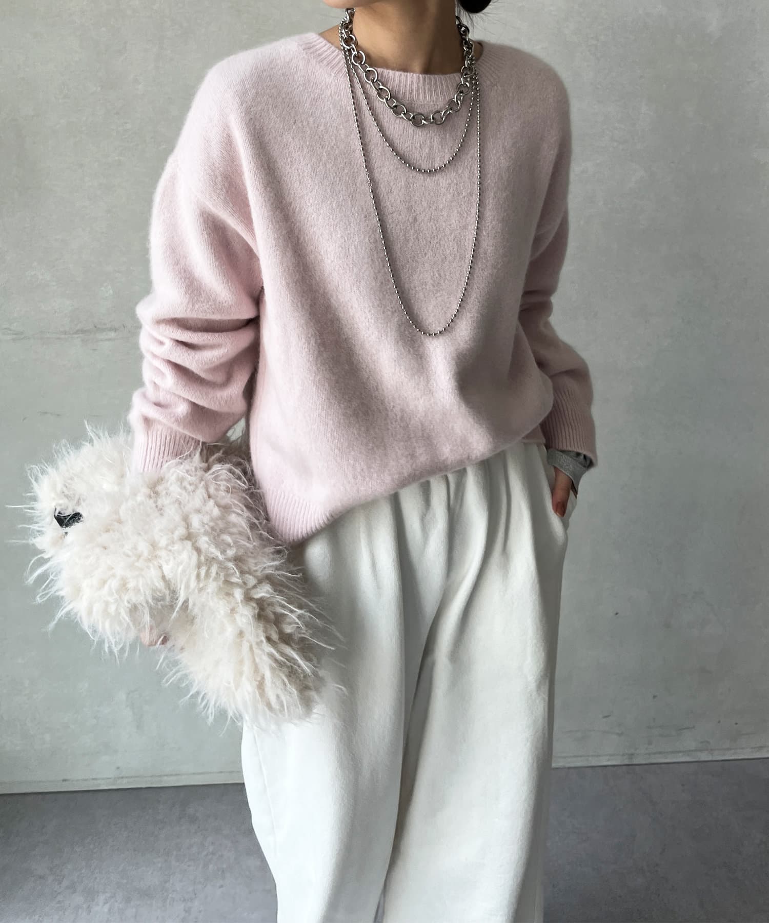 フォックス混のニットは保温性の高さが特徴なので、真冬でも軽く・暖かく着られるのがうれしいポイントです。