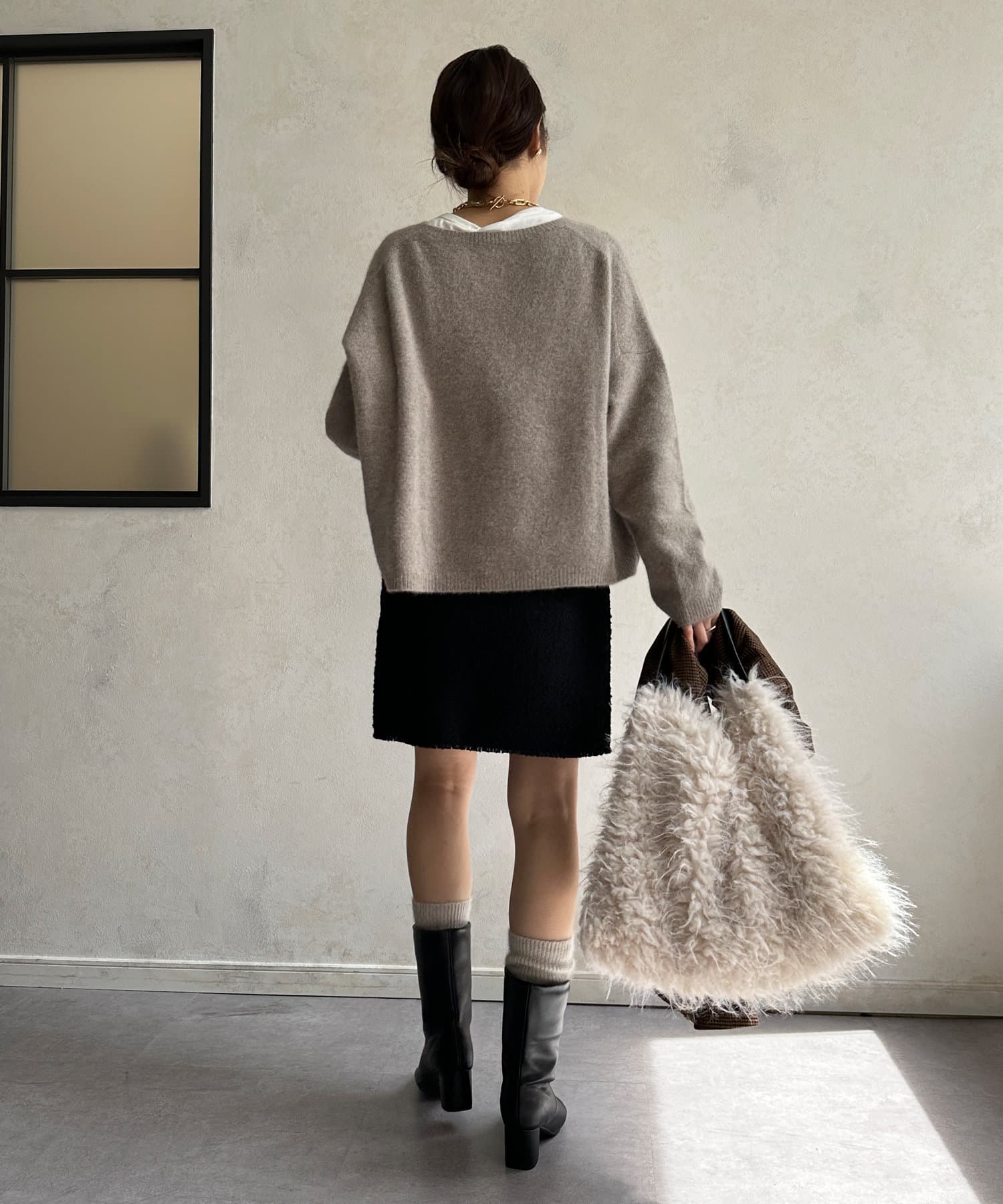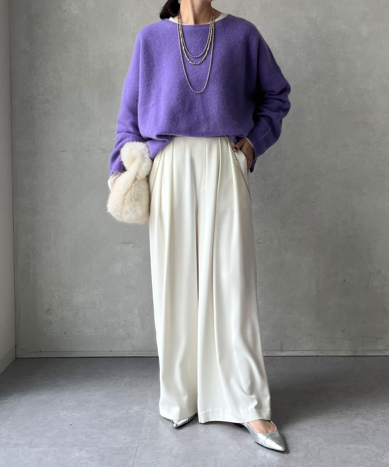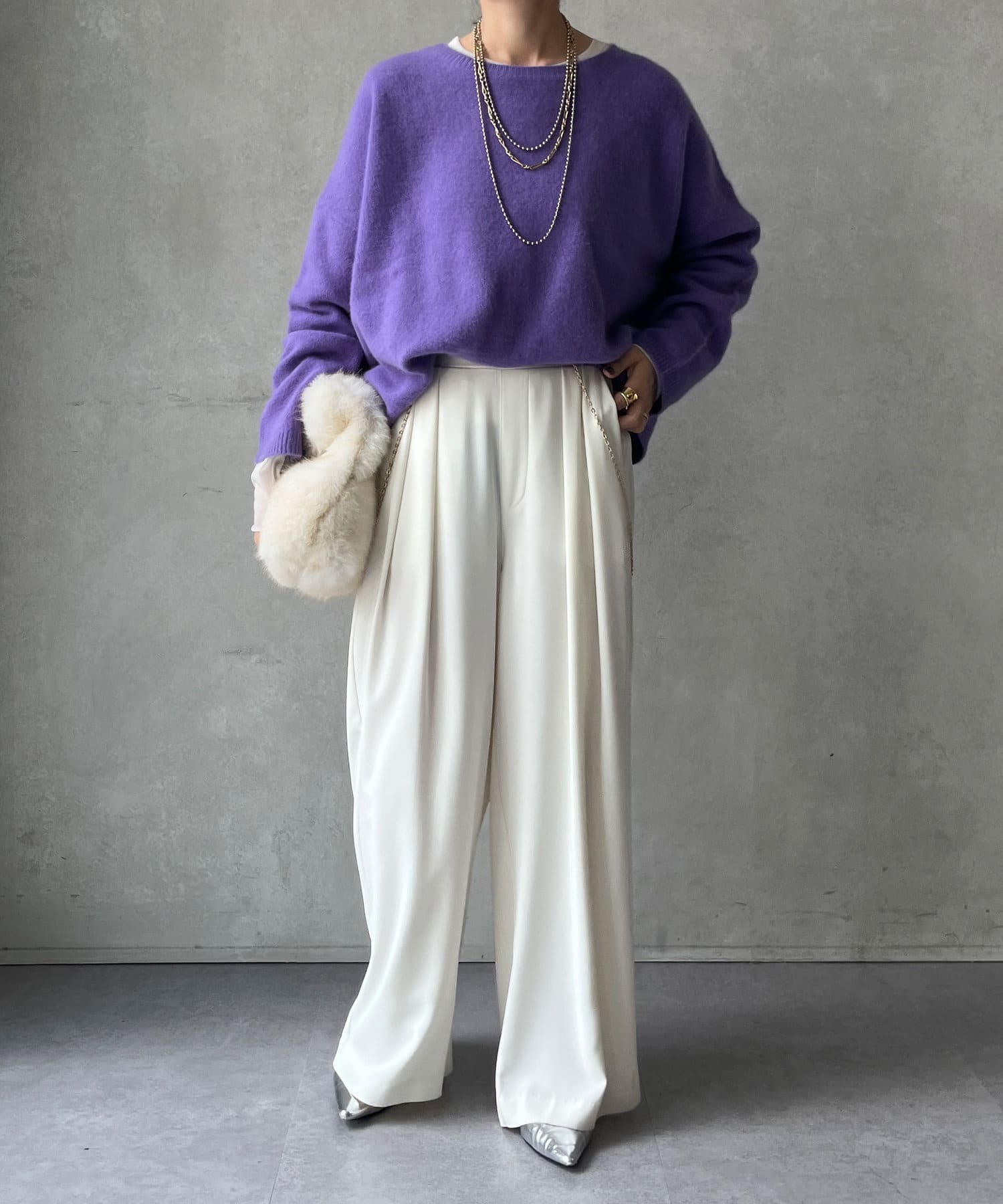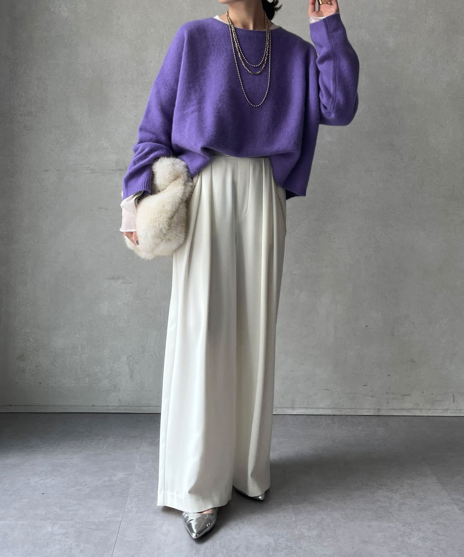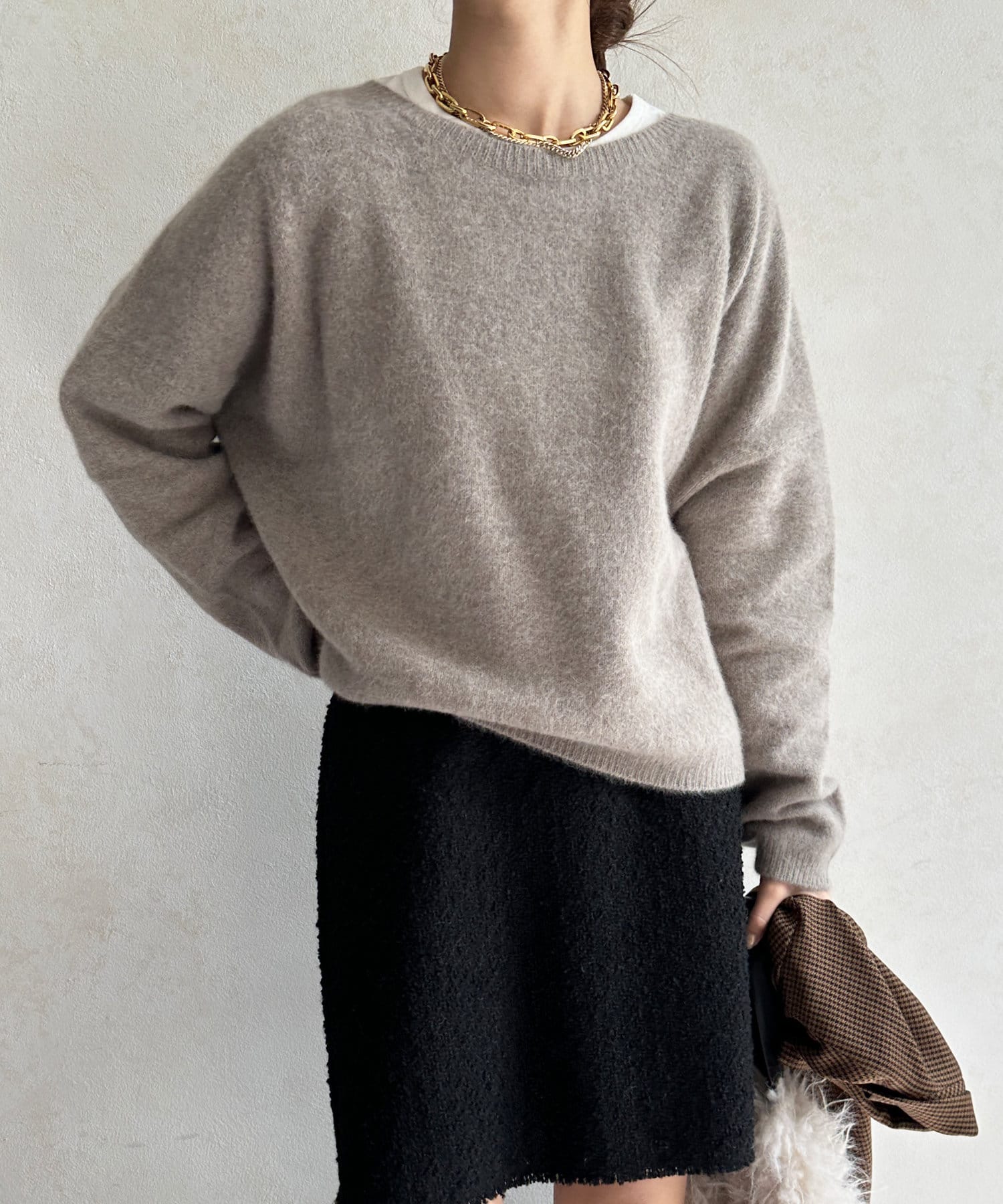 フォックス混のニットは保温性の高さが特徴なので、真冬でも軽く・暖かく着られるのがうれしいポイントです。