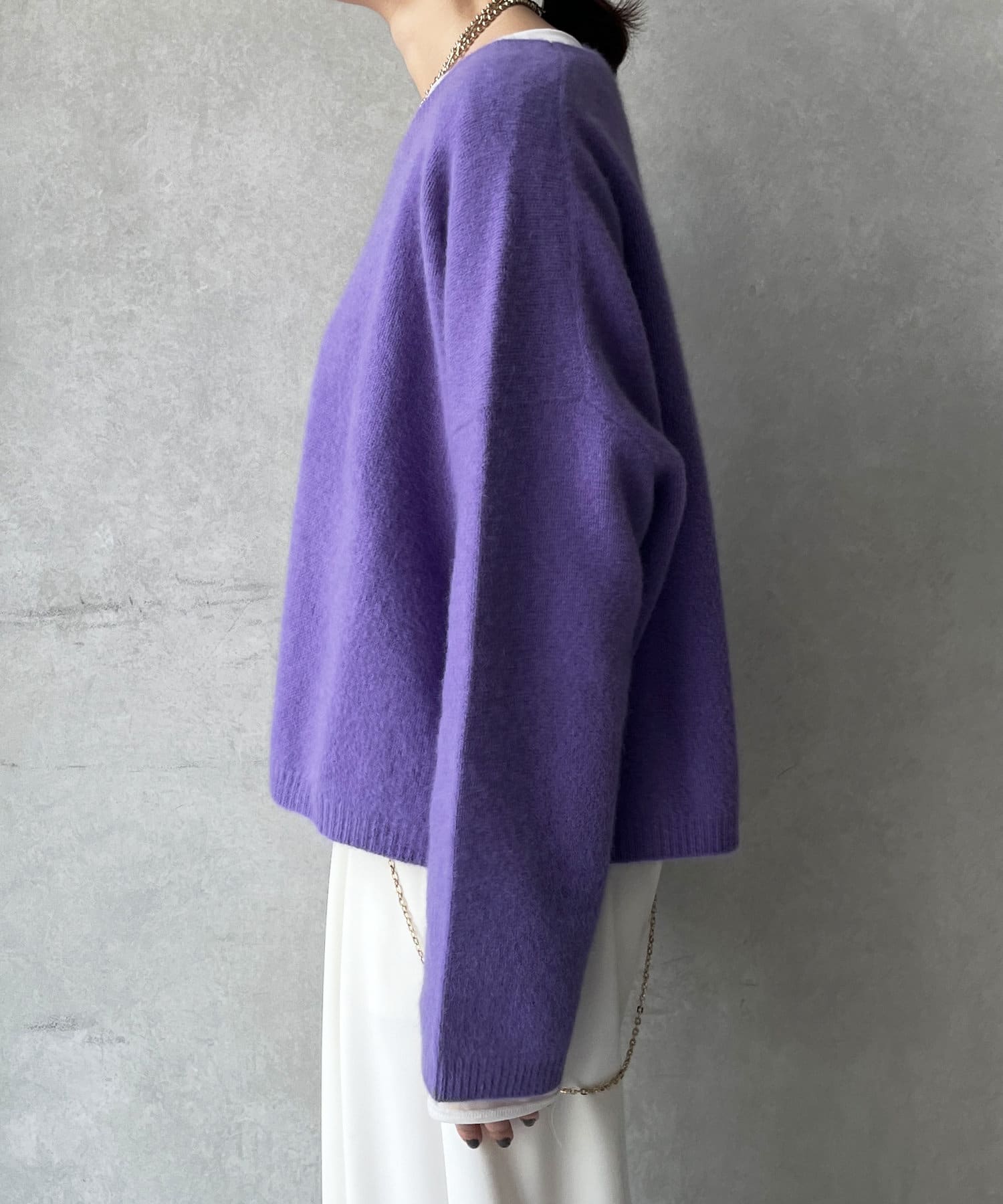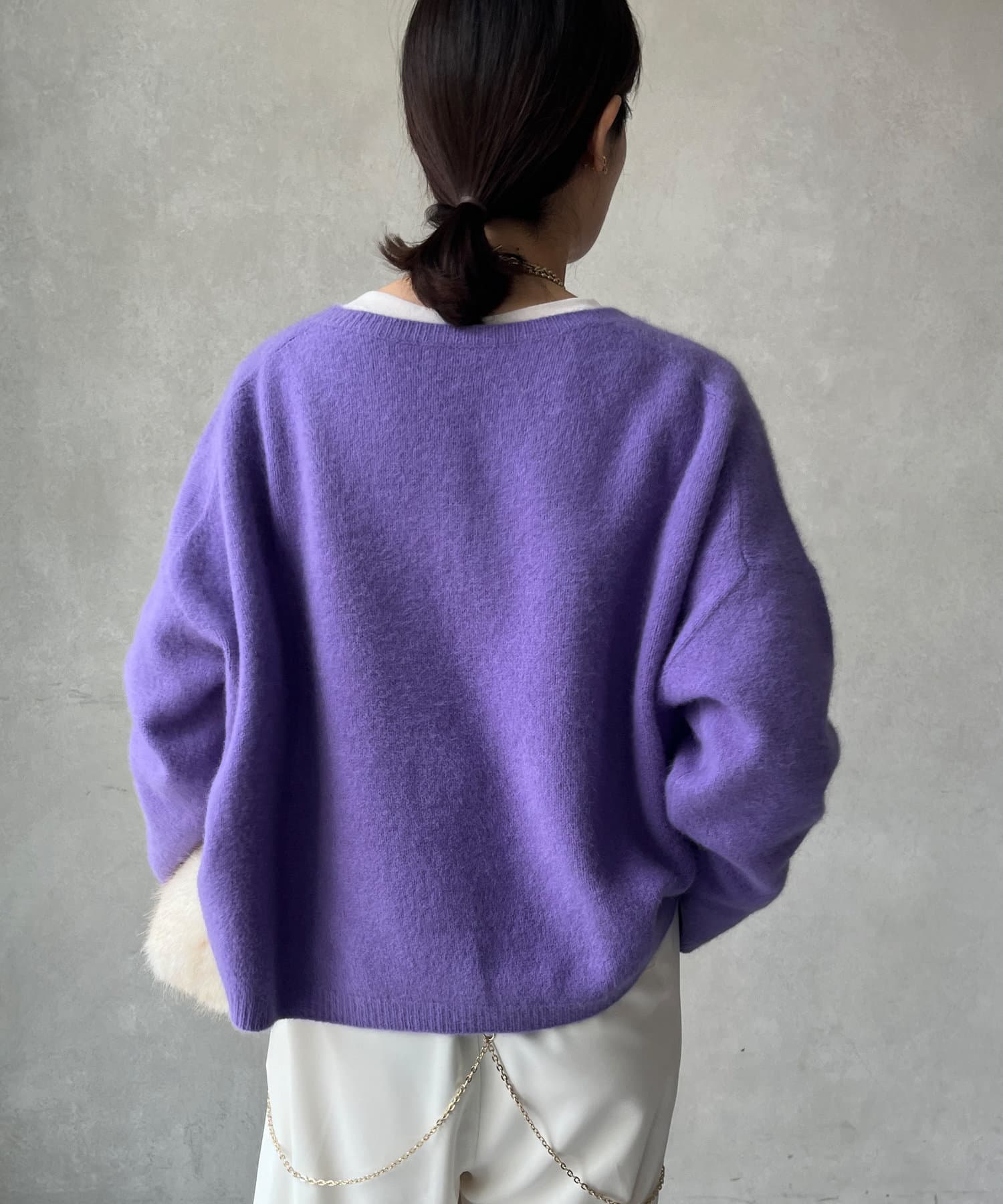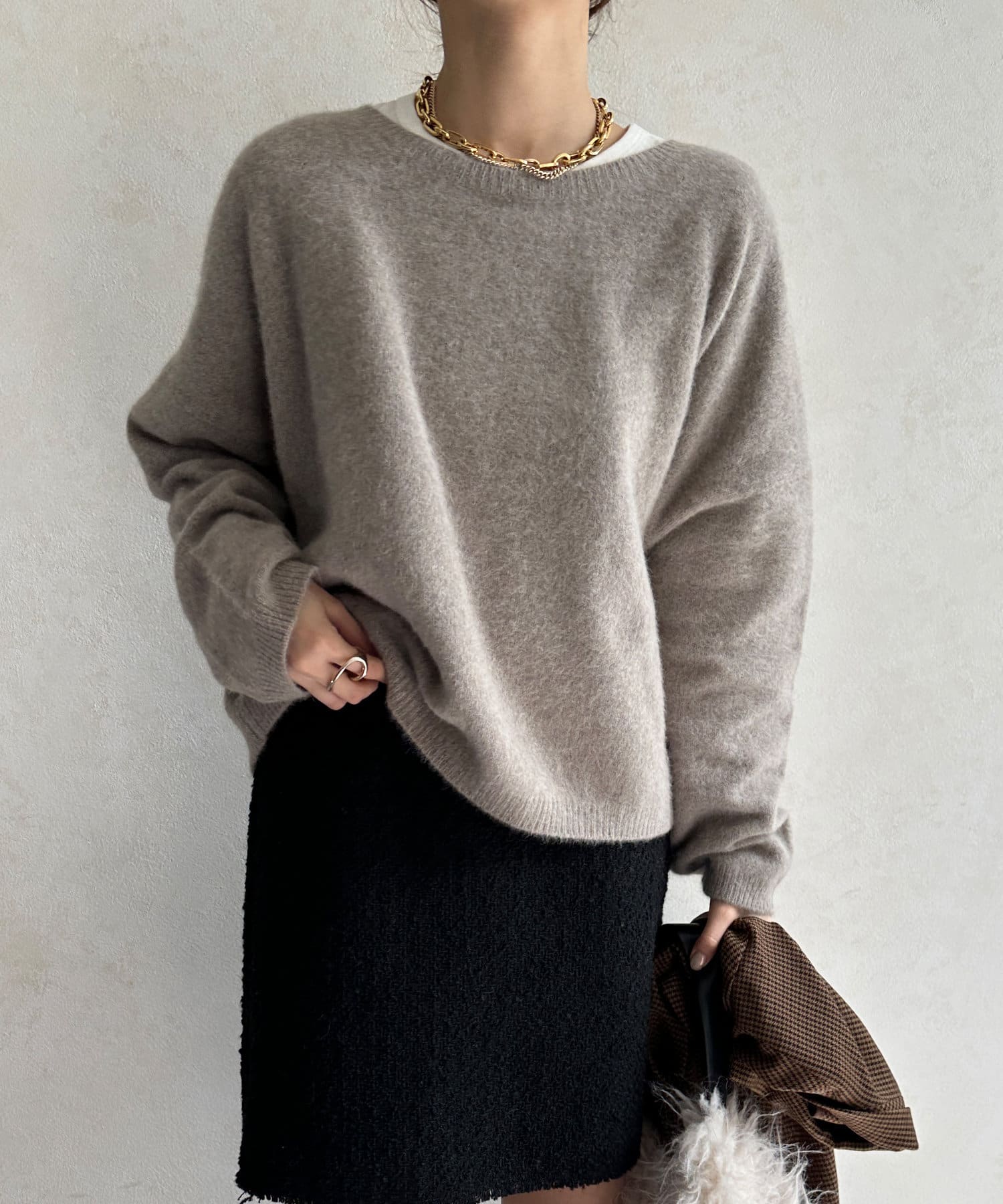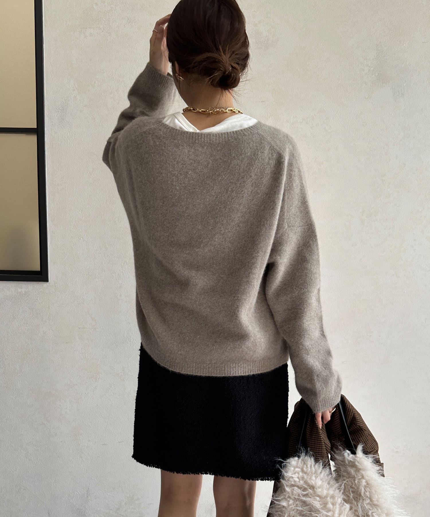 フォックス混のニットは保温性の高さが特徴なので、真冬でも軽く・暖かく着られるのがうれしいポイントです。