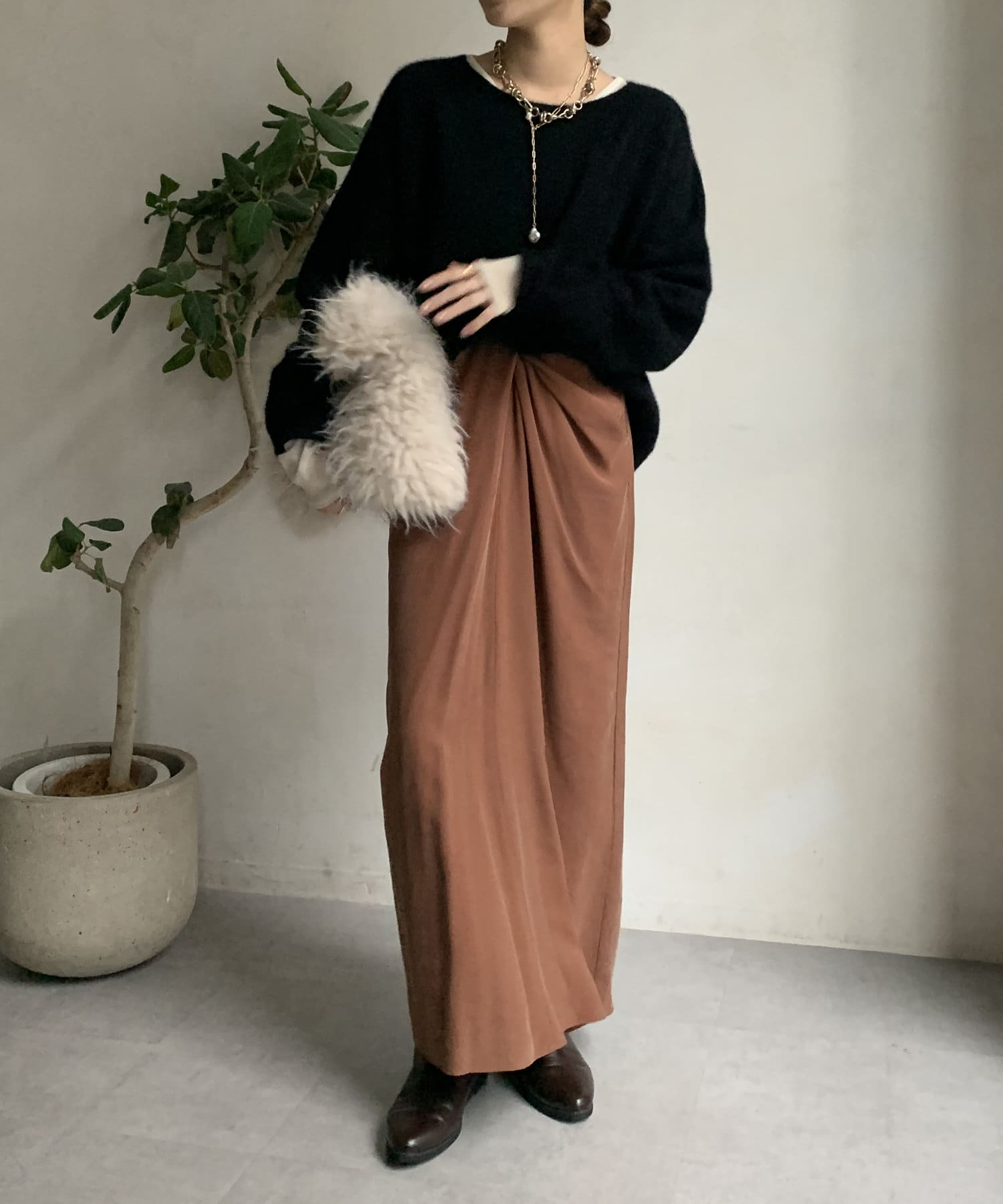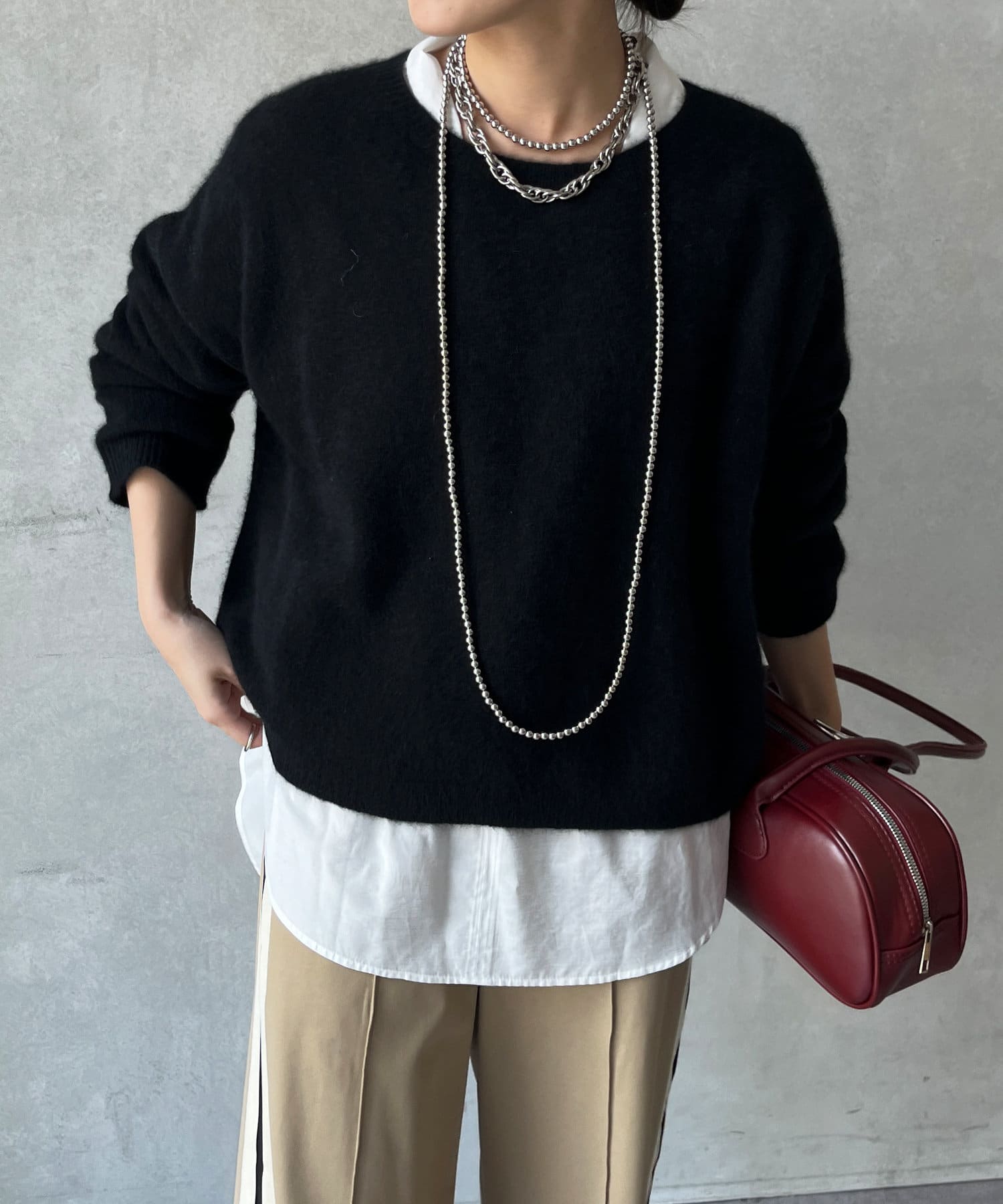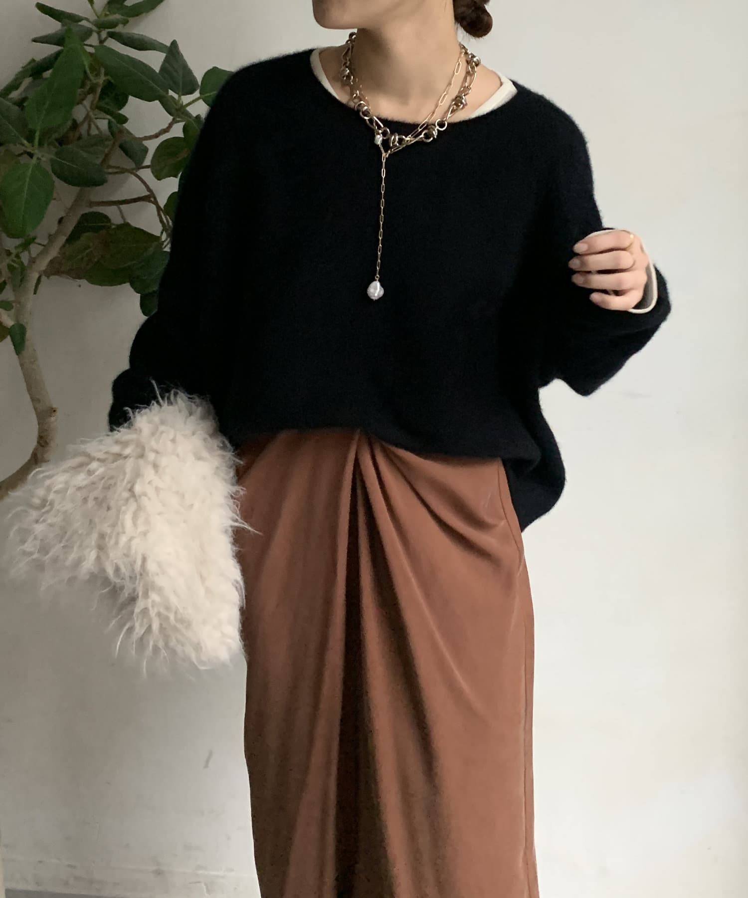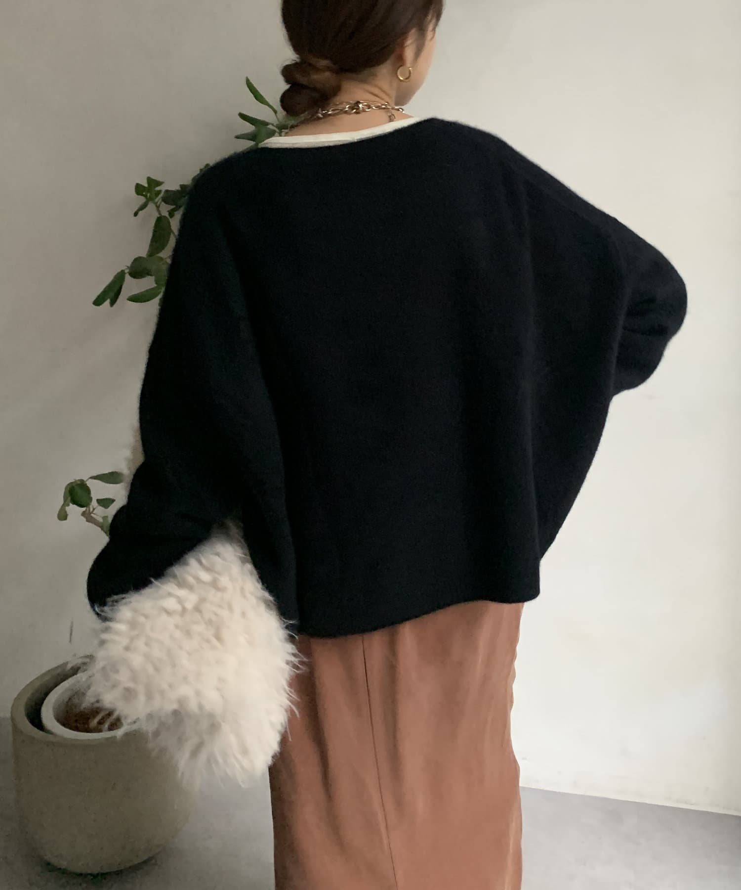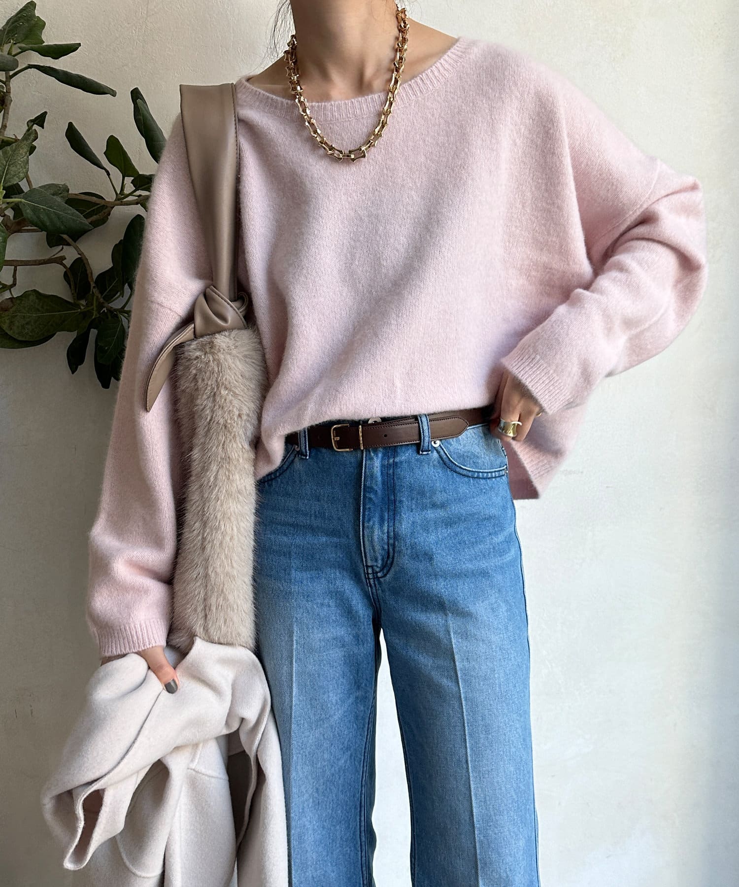 フォックス混のニットは保温性の高さが特徴なので、真冬でも軽く・暖かく着られるのがうれしいポイントです。