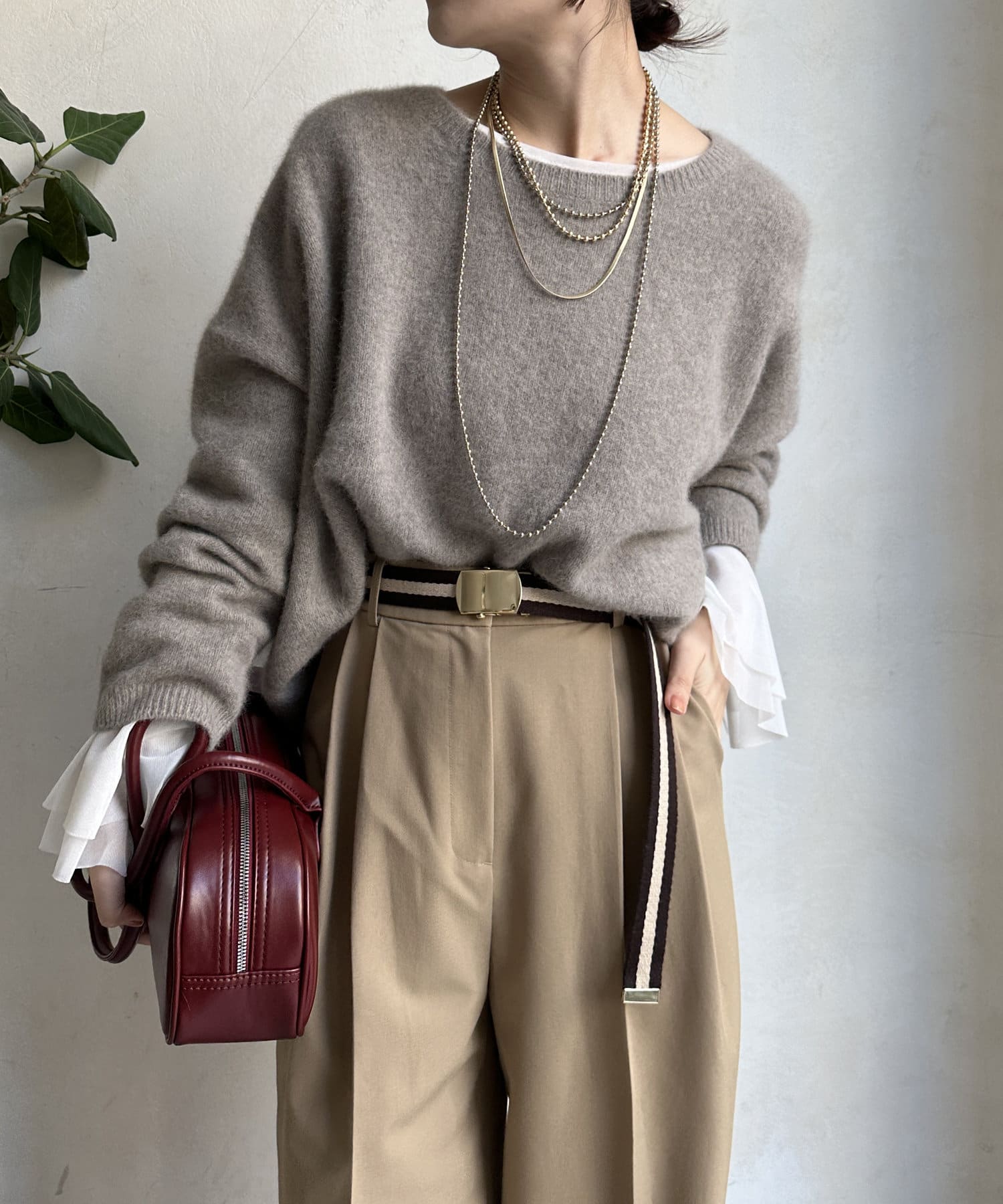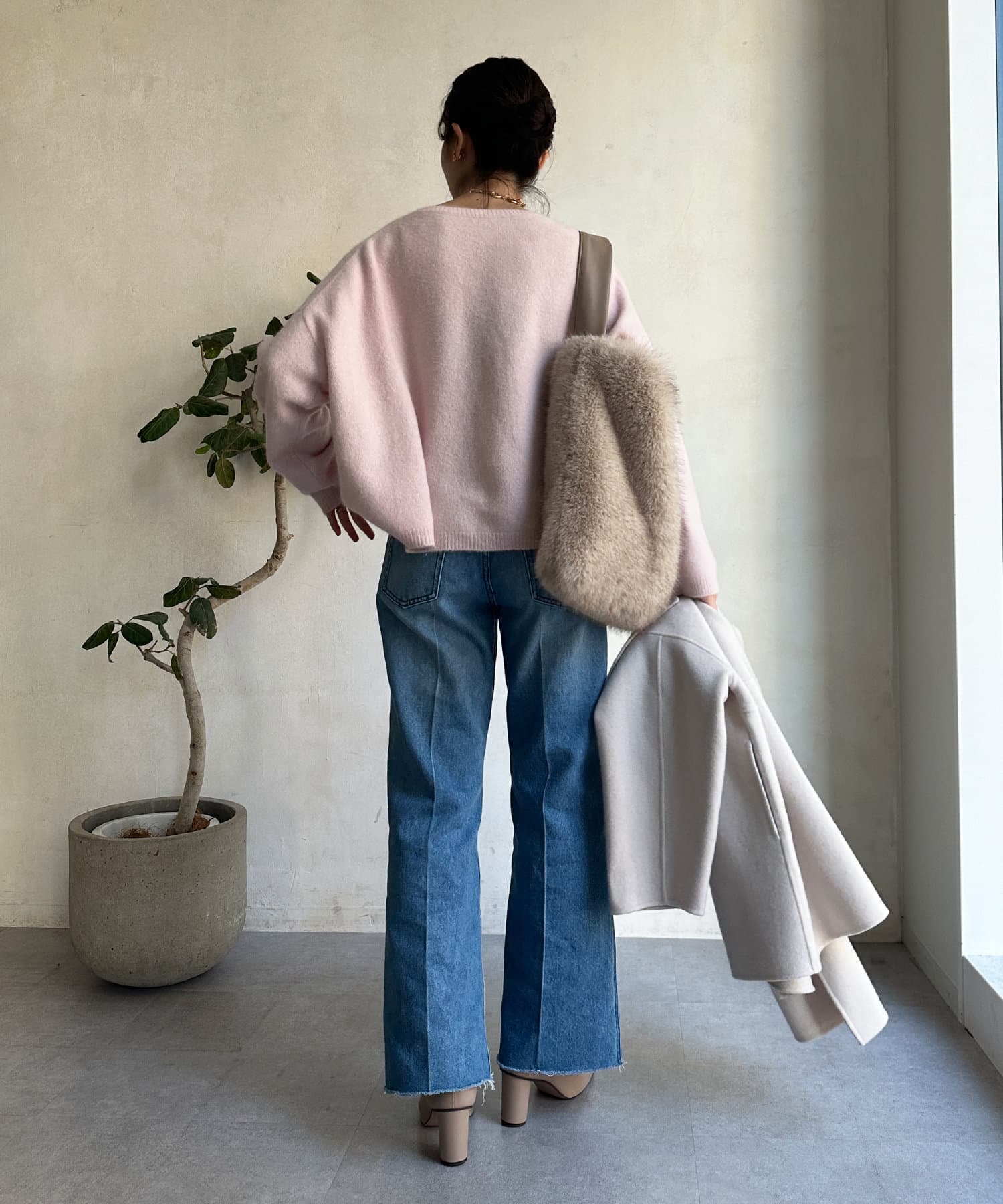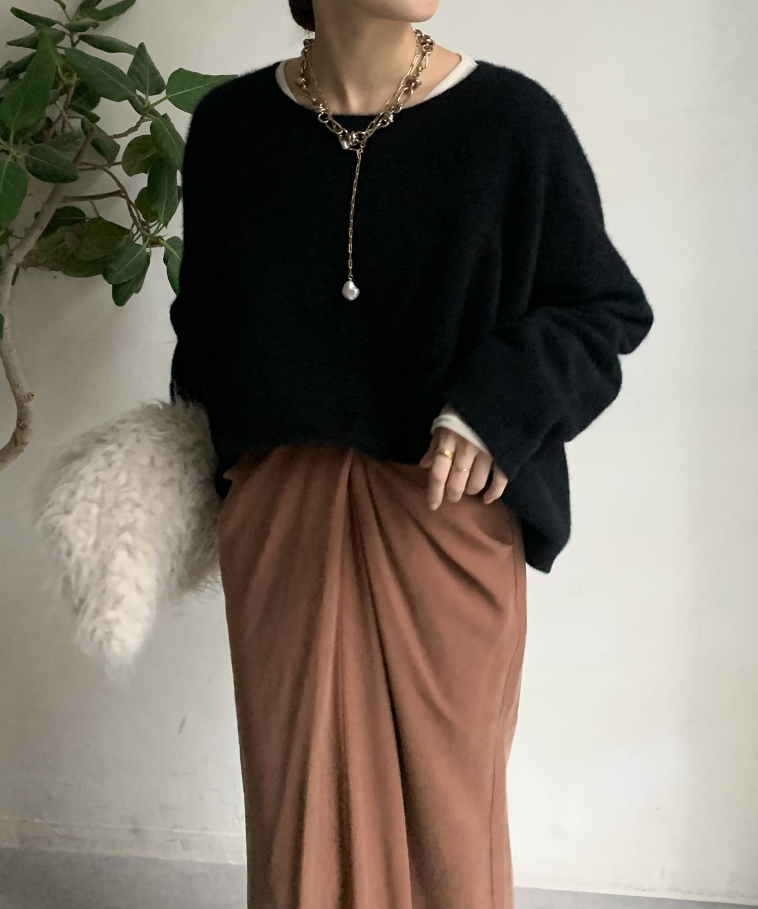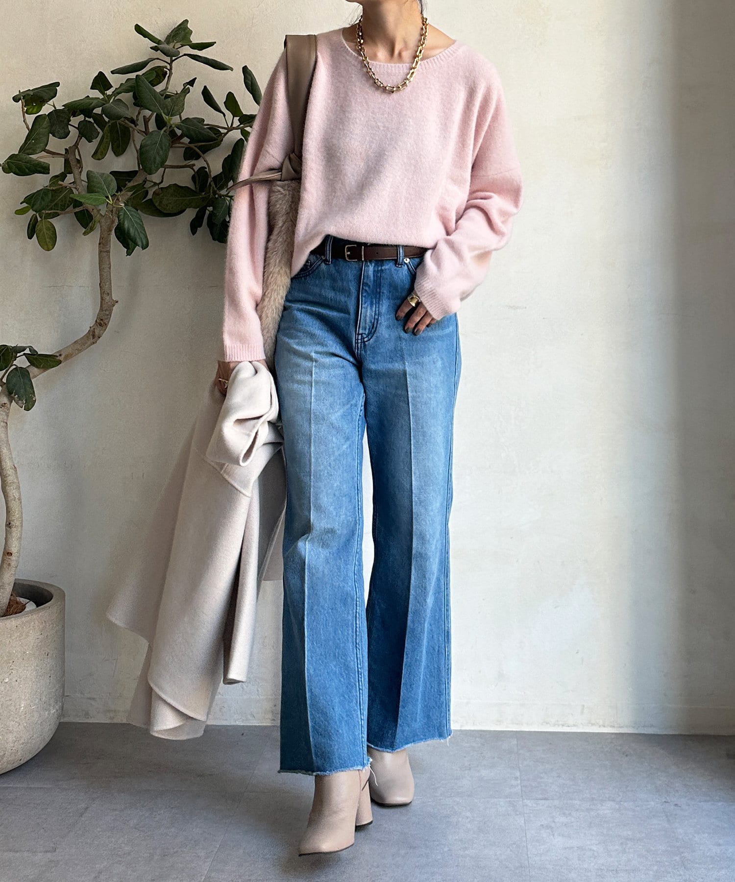フォックス混のニットは保温性の高さが特徴なので、真冬でも軽く・暖かく着られるのがうれしいポイントです。