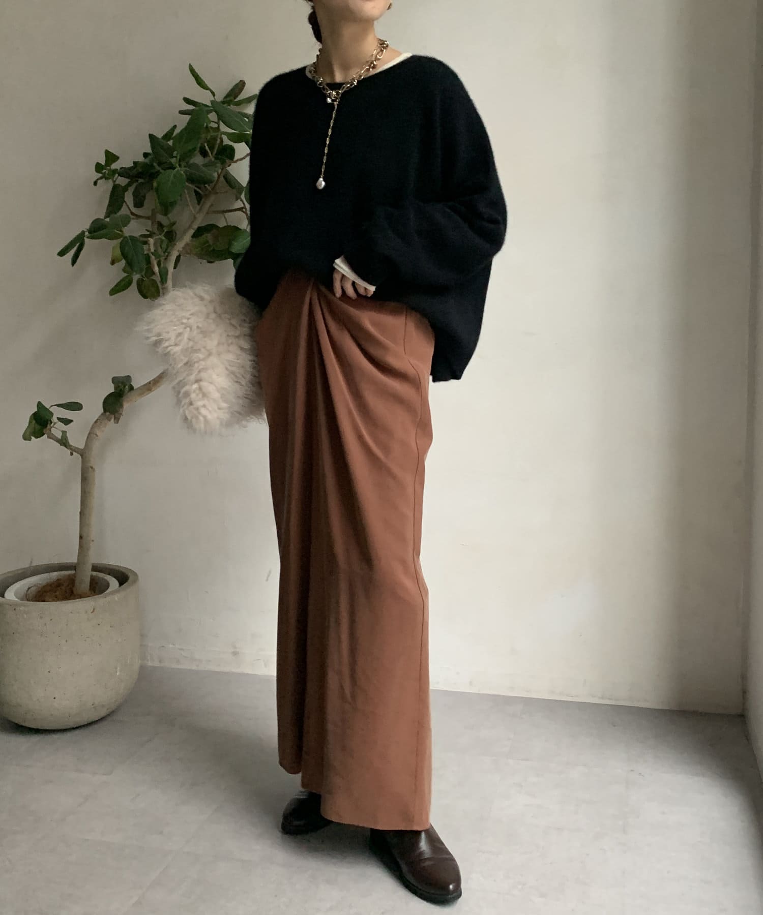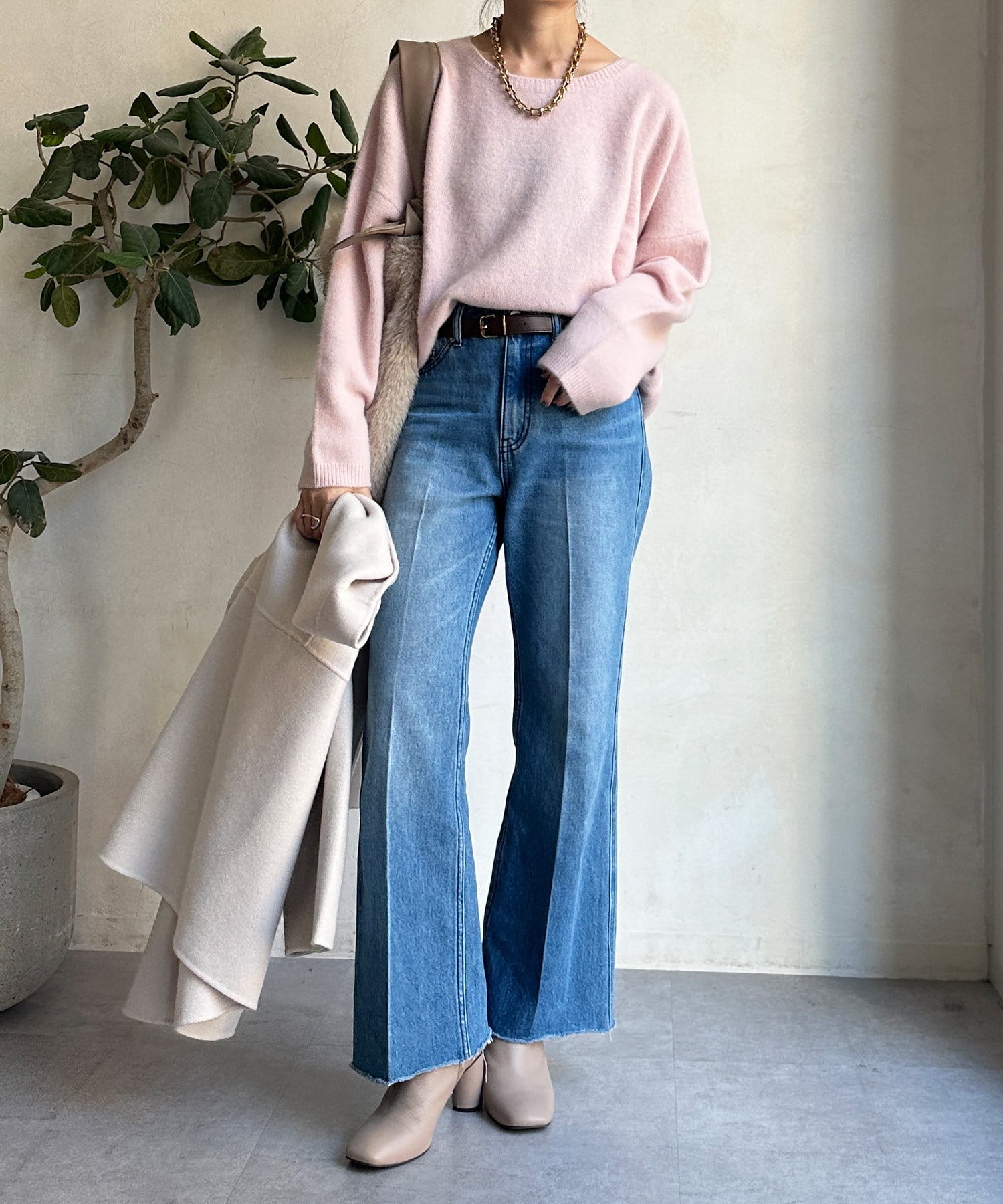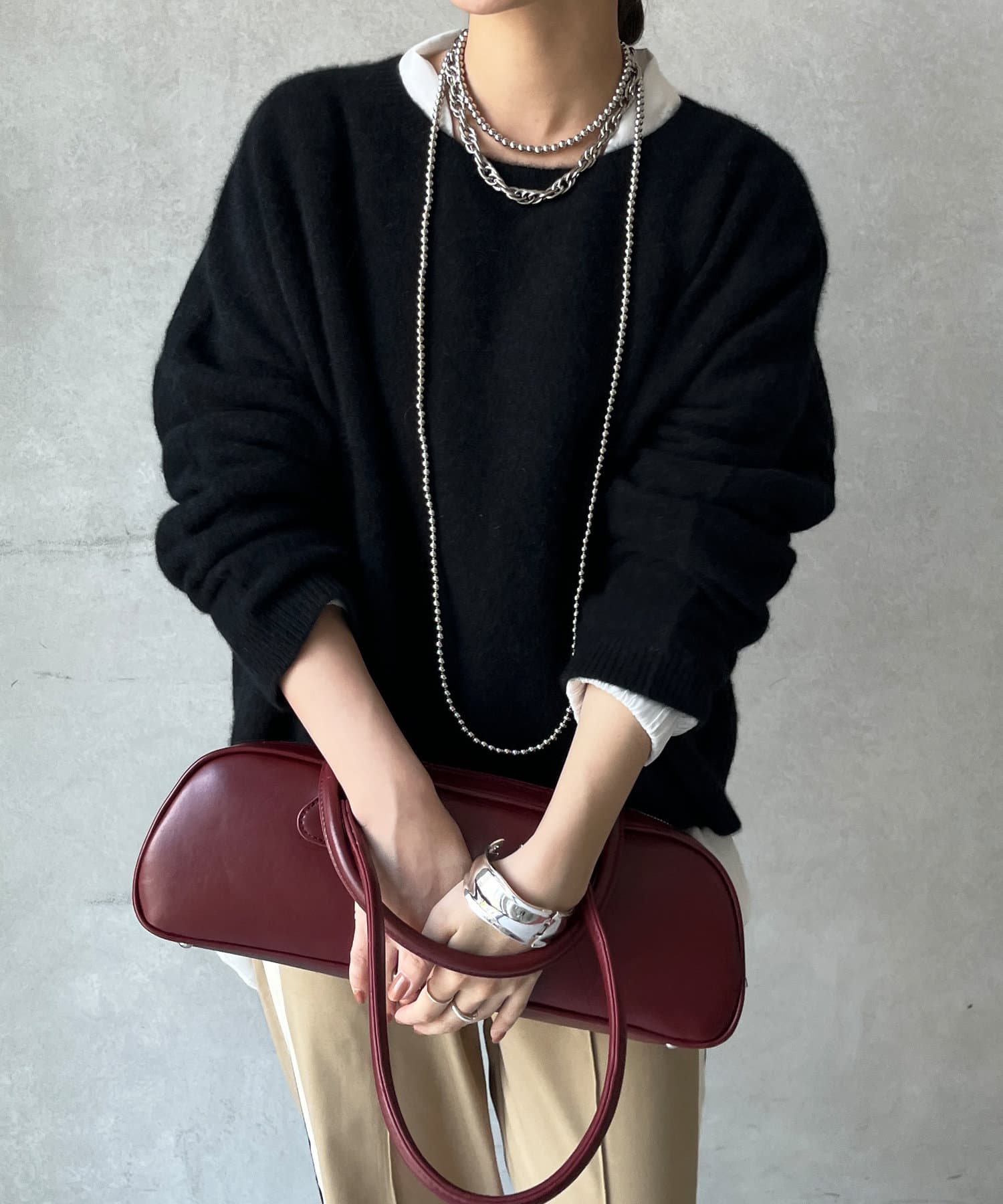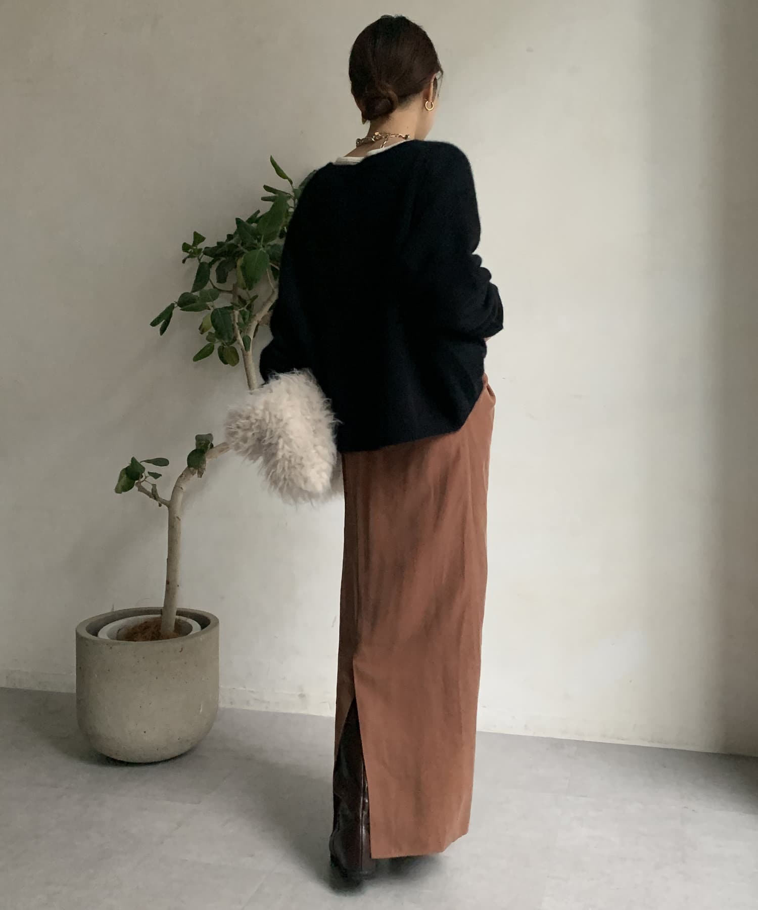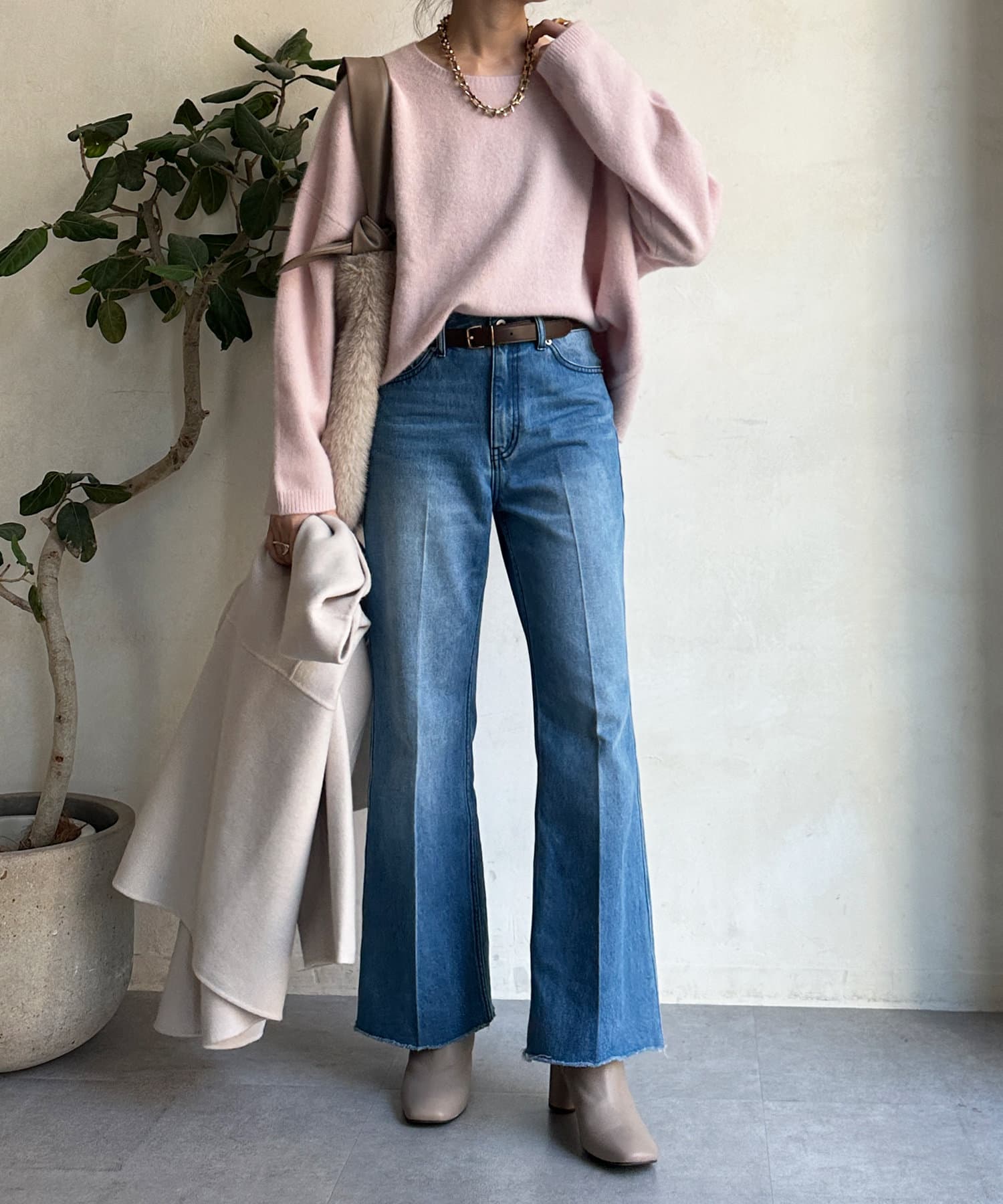 フォックス混のニットは保温性の高さが特徴なので、真冬でも軽く・暖かく着られるのがうれしいポイントです。