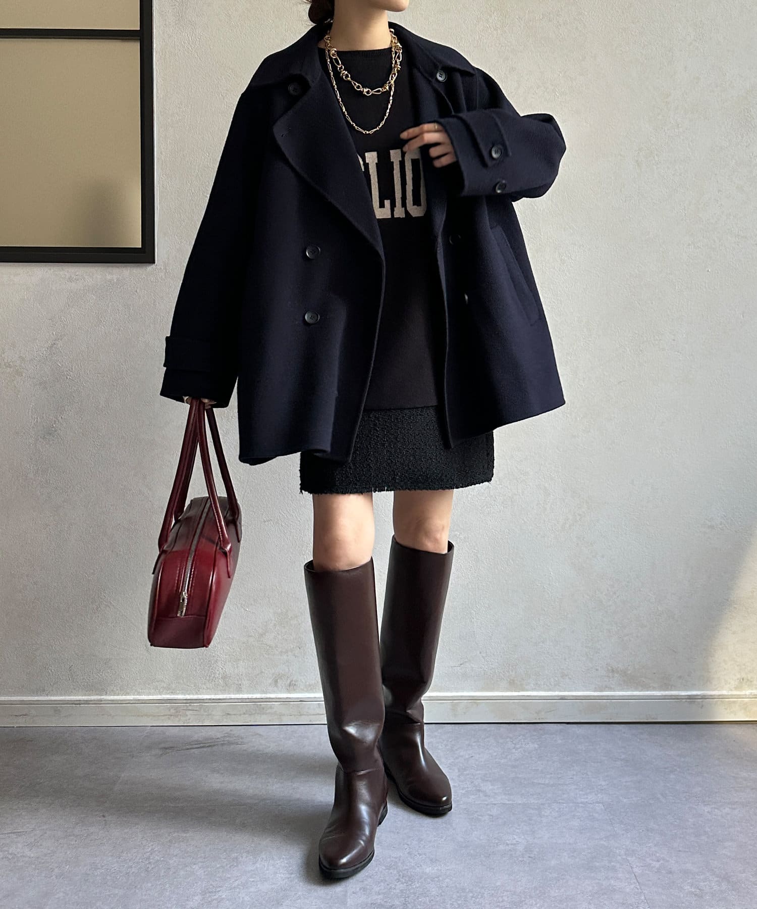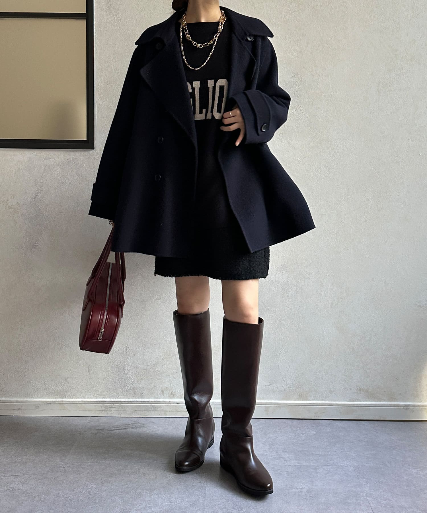 ボリューム感のあるニットなどを着た際も着ぶくれ感が出にくく、ミニ丈からボリュームシルエットまで様々なボトムとマッチしてくれるので、1着持っておけば冬に大活躍間違いなしです!