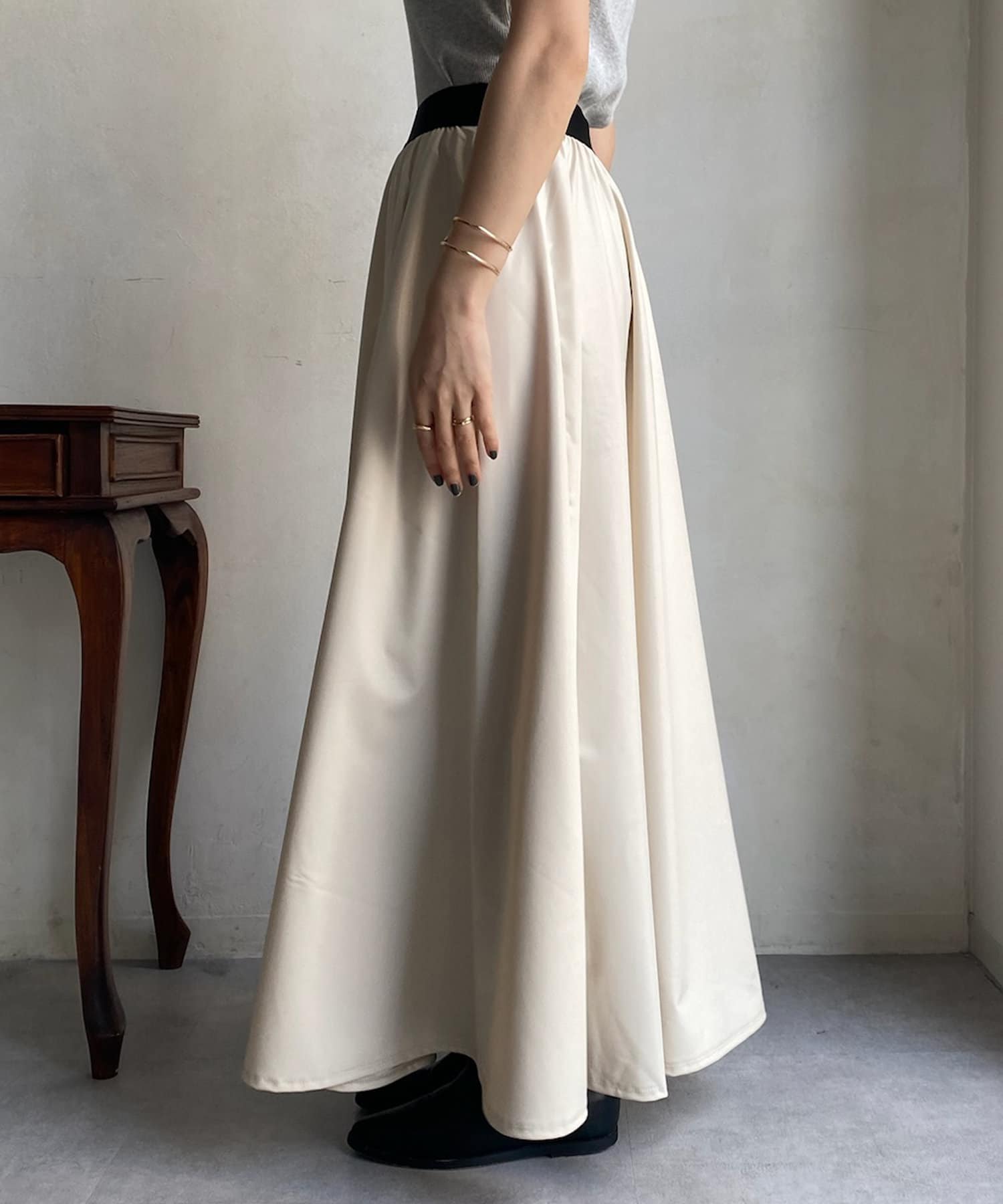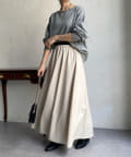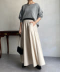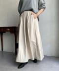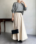 程良いフレアスカートのデザインのため、腰回りをスッキリ見せてくれ、ウエストはゴム仕様のため楽チンにストレスフリーにご着用頂けます。