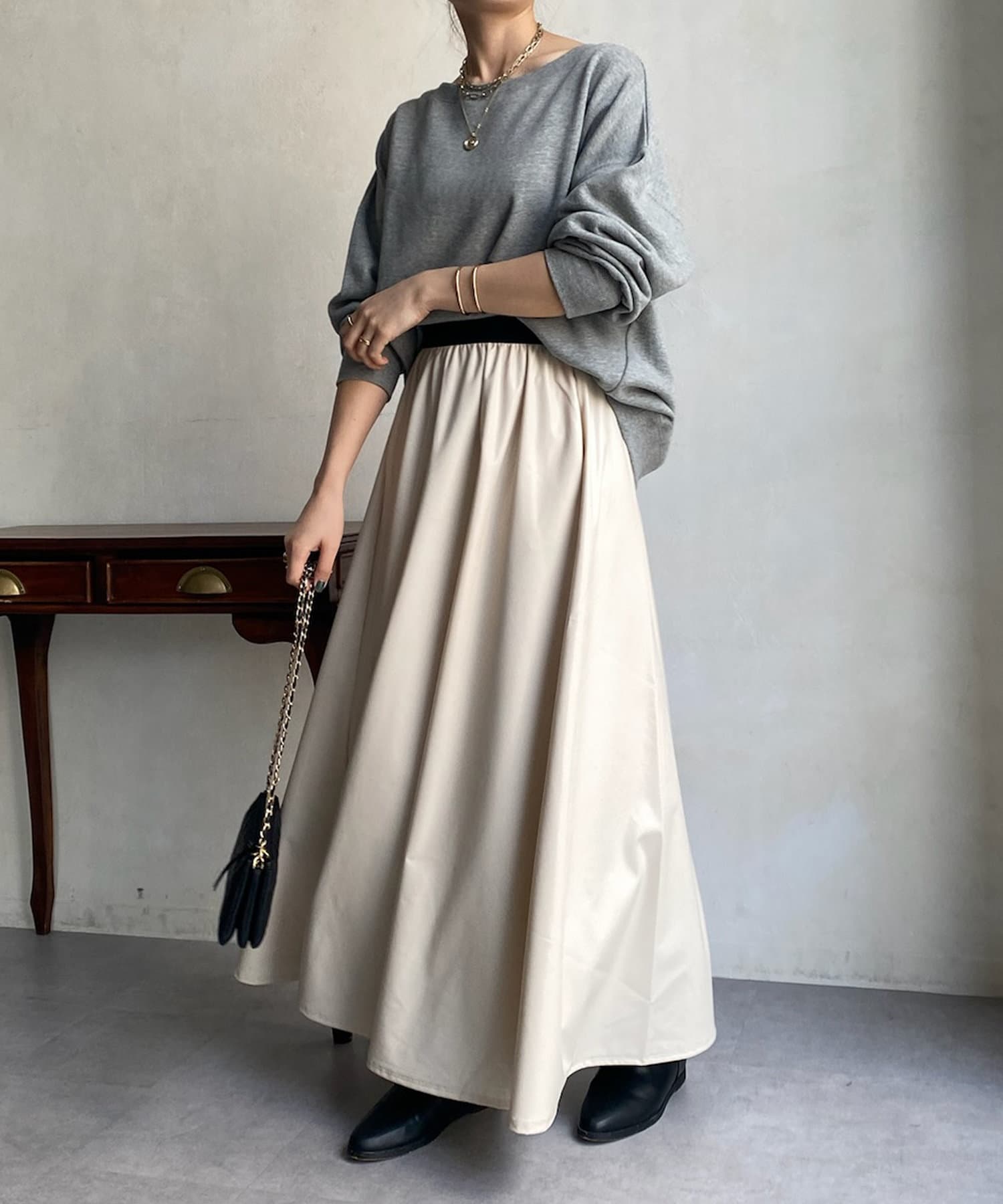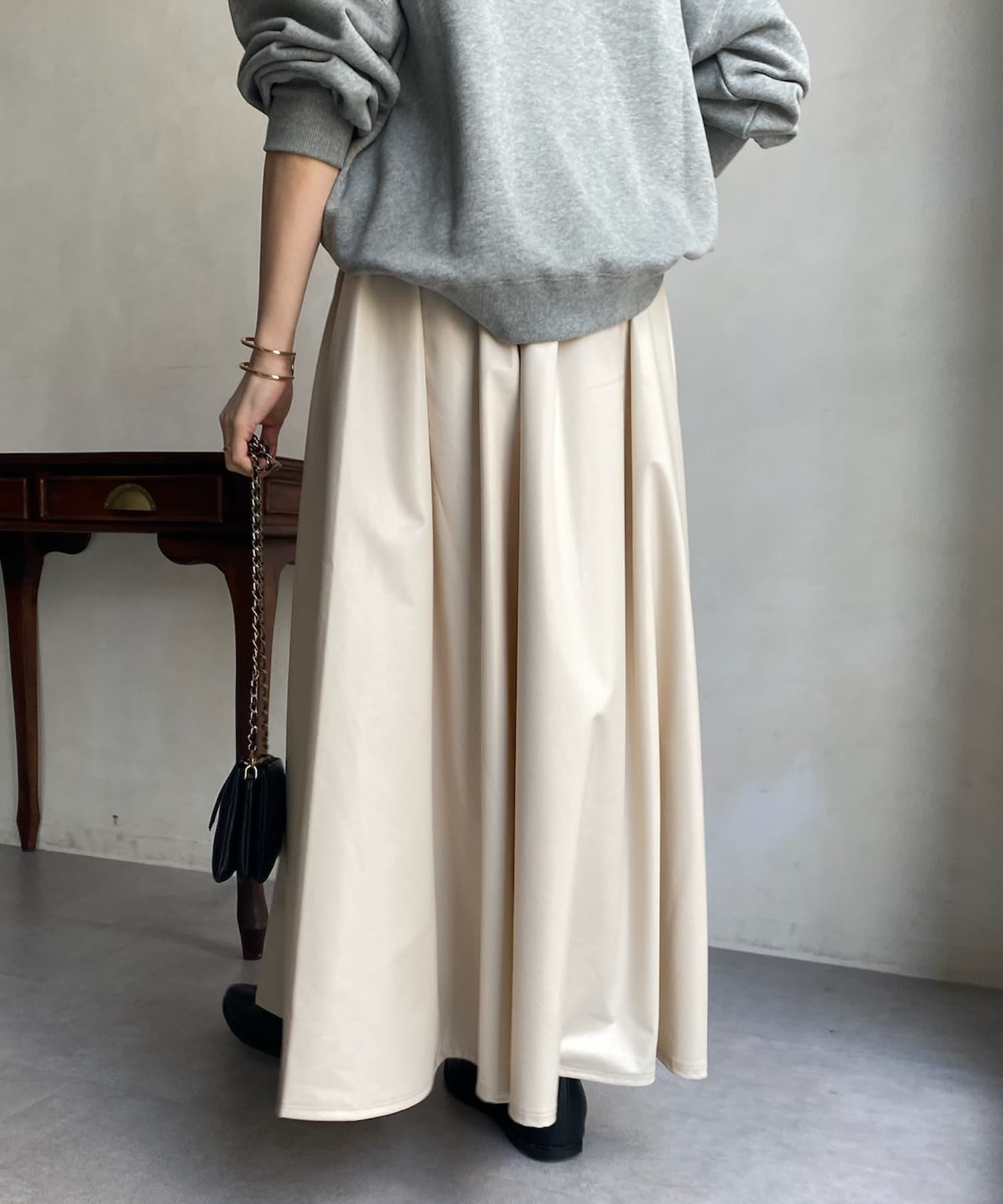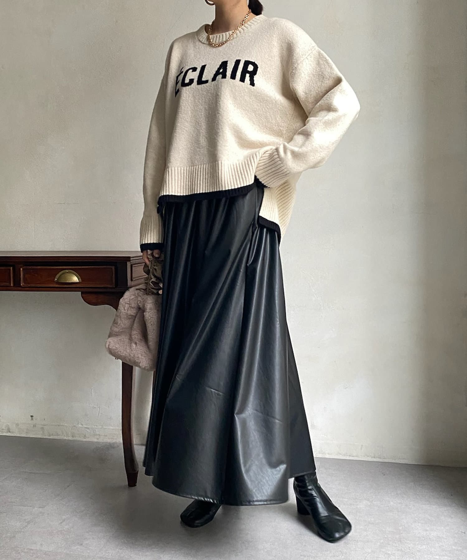 レザー系のアイテムは秋冬のニットの毛がつきづらく、季節感も高めてくれる秋冬マストで持っておきたい1着です。
