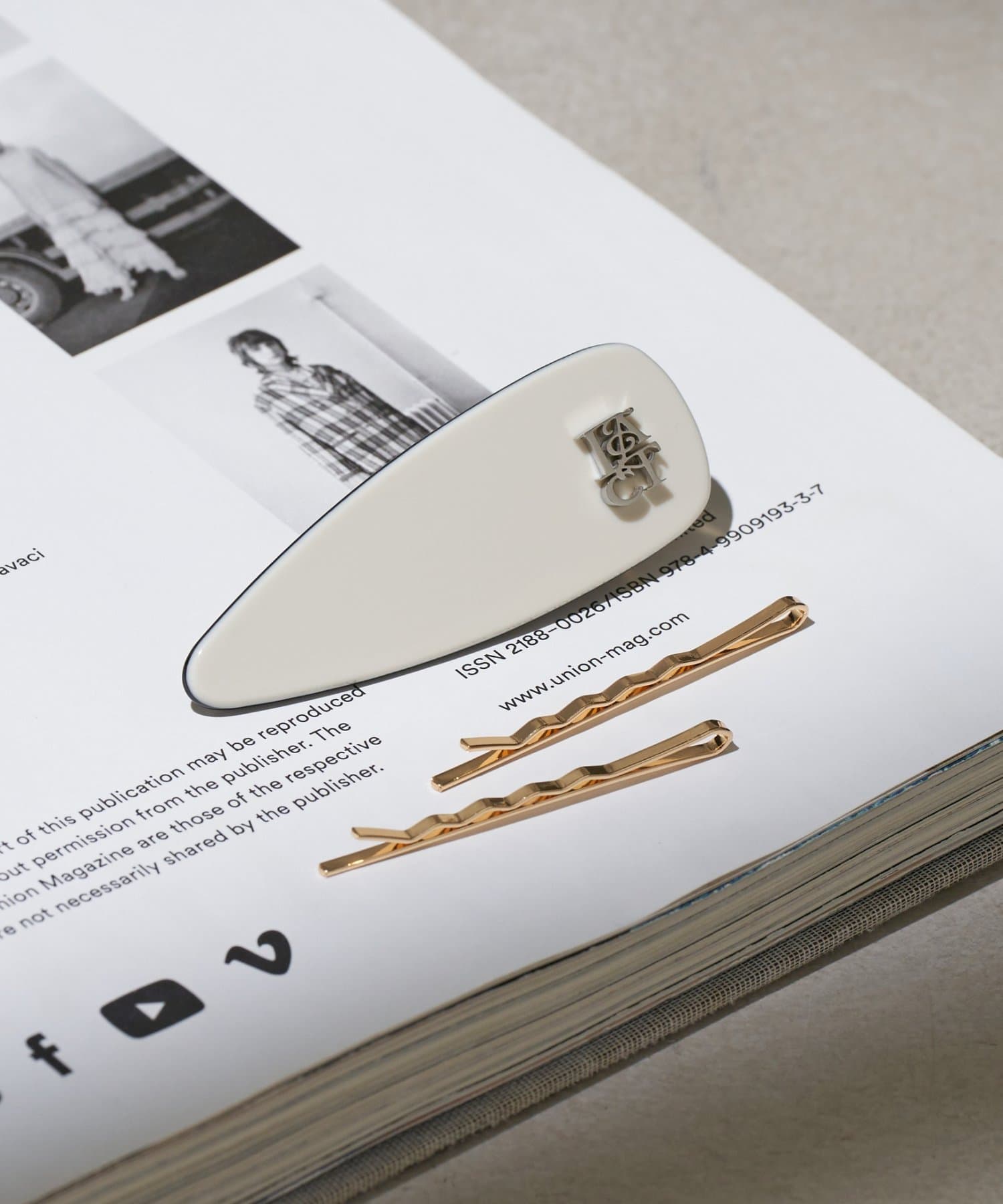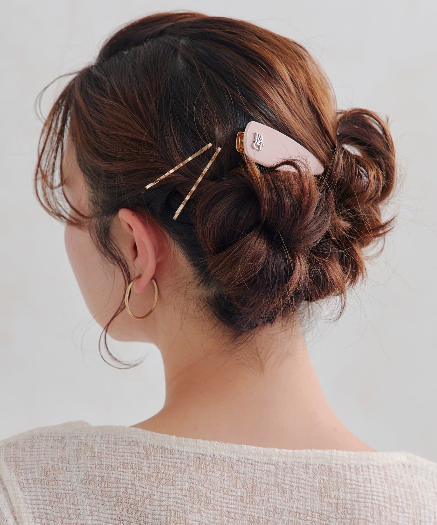 上品なロゴモチーフがアクセントのクリップは、さっと留めるだけでこなれ感のあるヘアスタイルを演出します。
