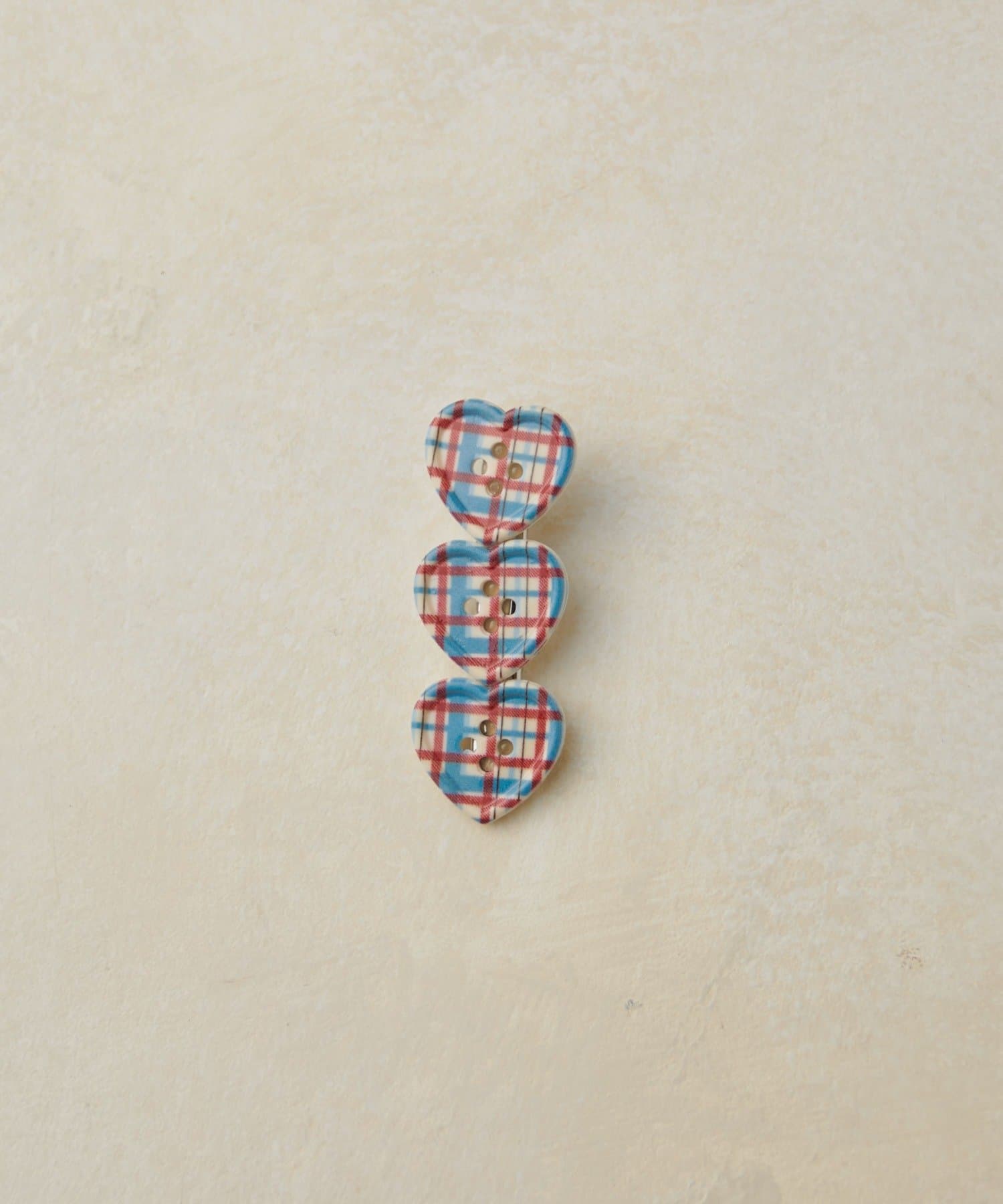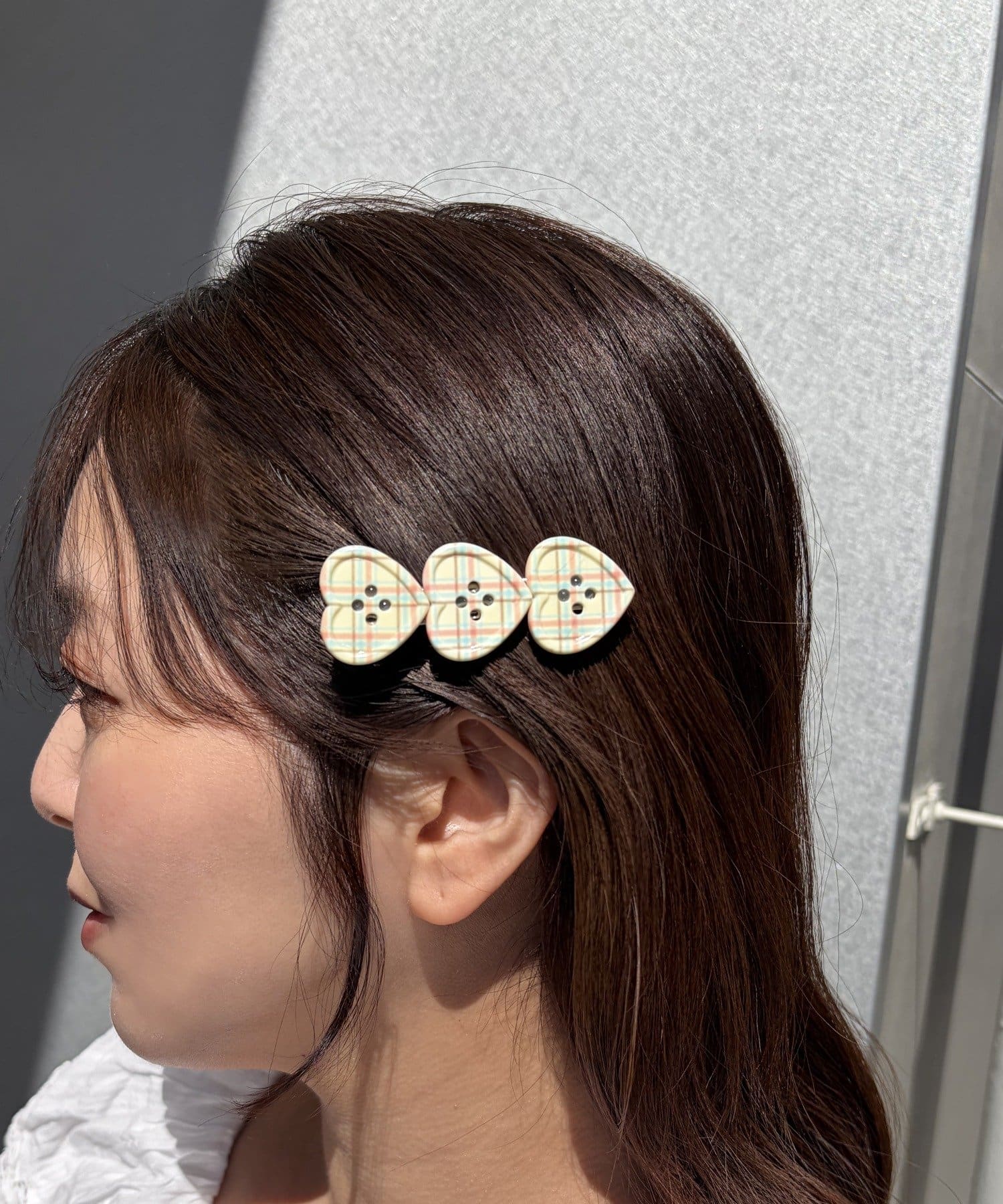 キャッチーなデザインに一目惚れ!ボタンモチーフが可愛い3連ハートのヘアクリップ