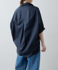 ■程よいワイドシルエットの半袖スキッパーシャツ。