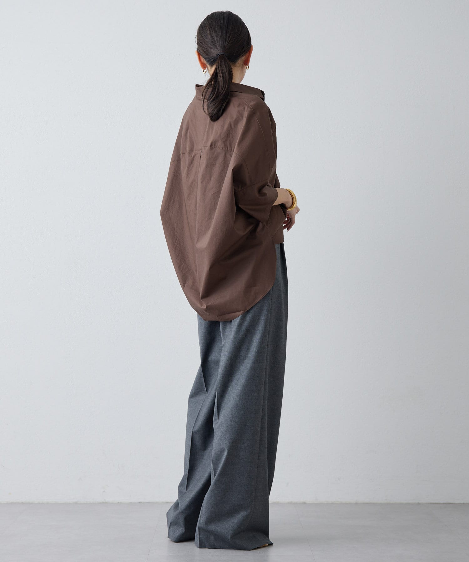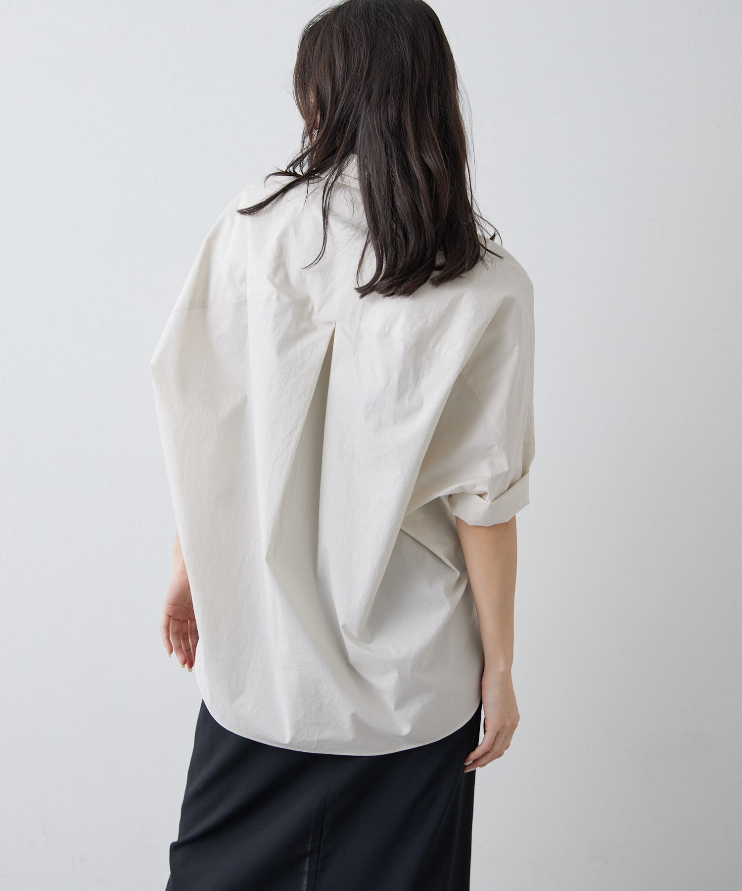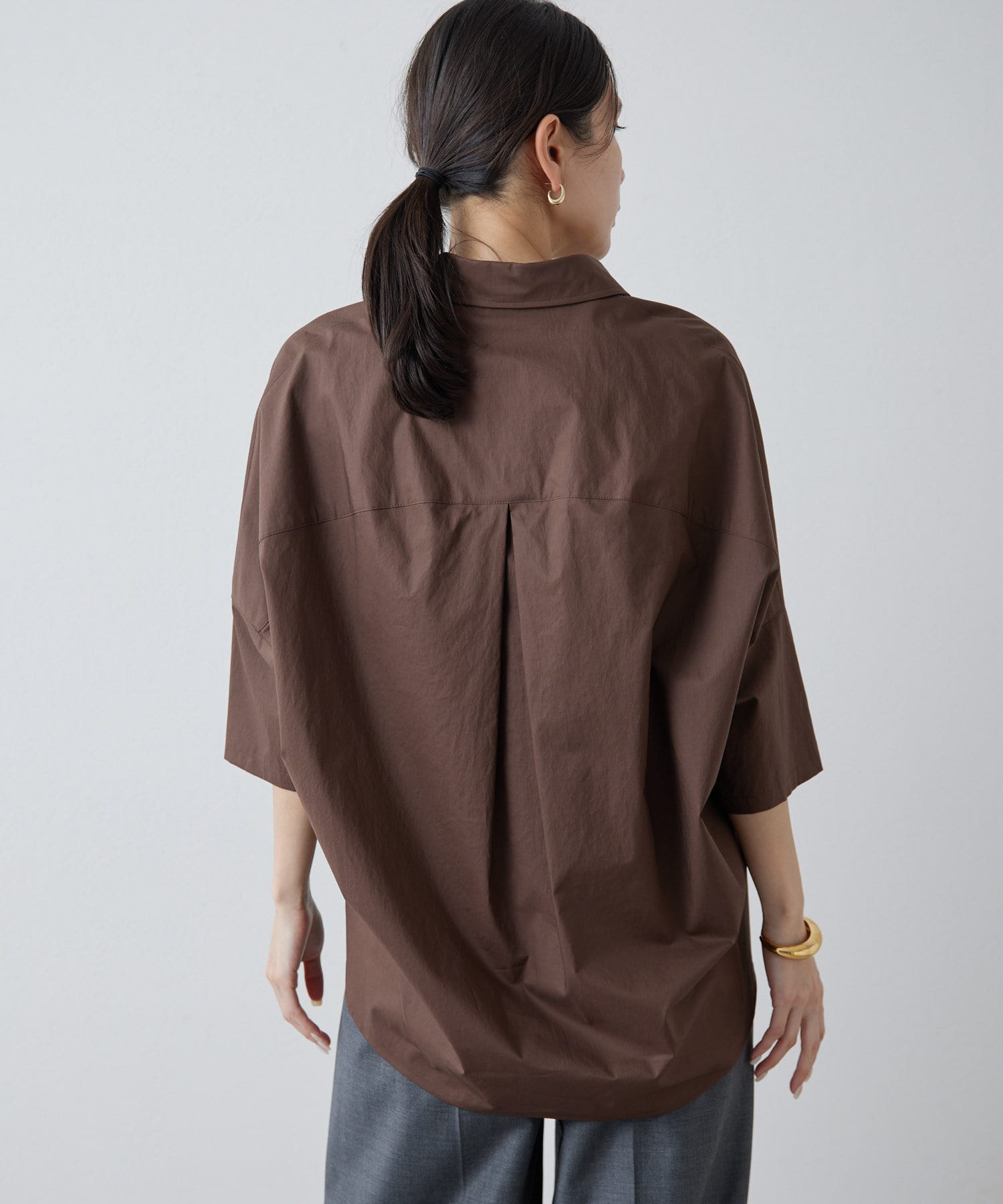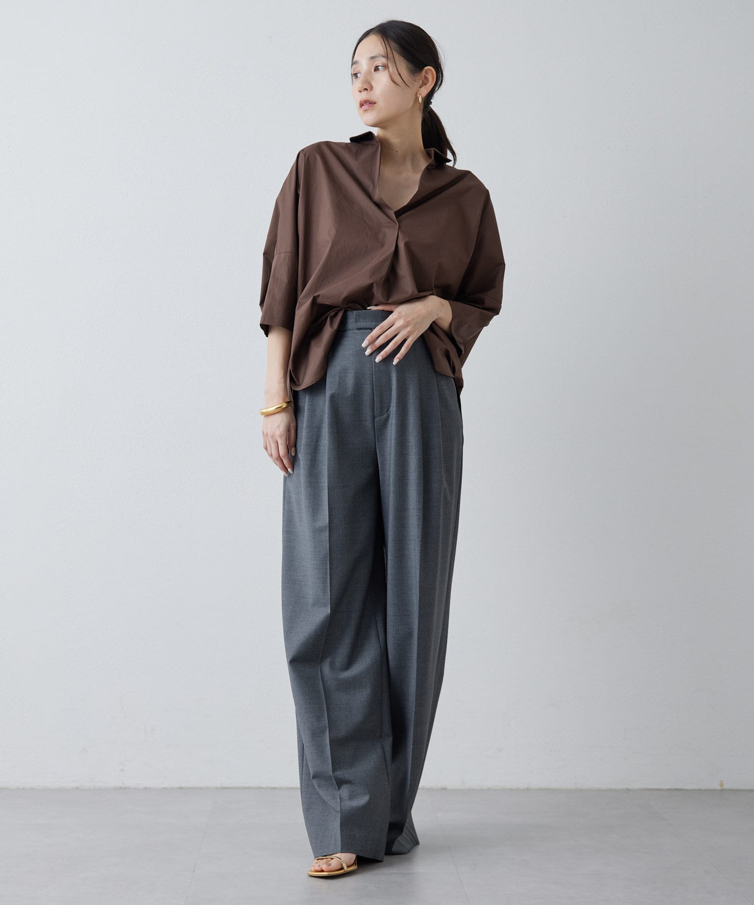 スキッパー仕様でデコルテを美しく魅せてくれます。自然と後ろに抜けるようなデザインで着るだけでこなれ見えします。