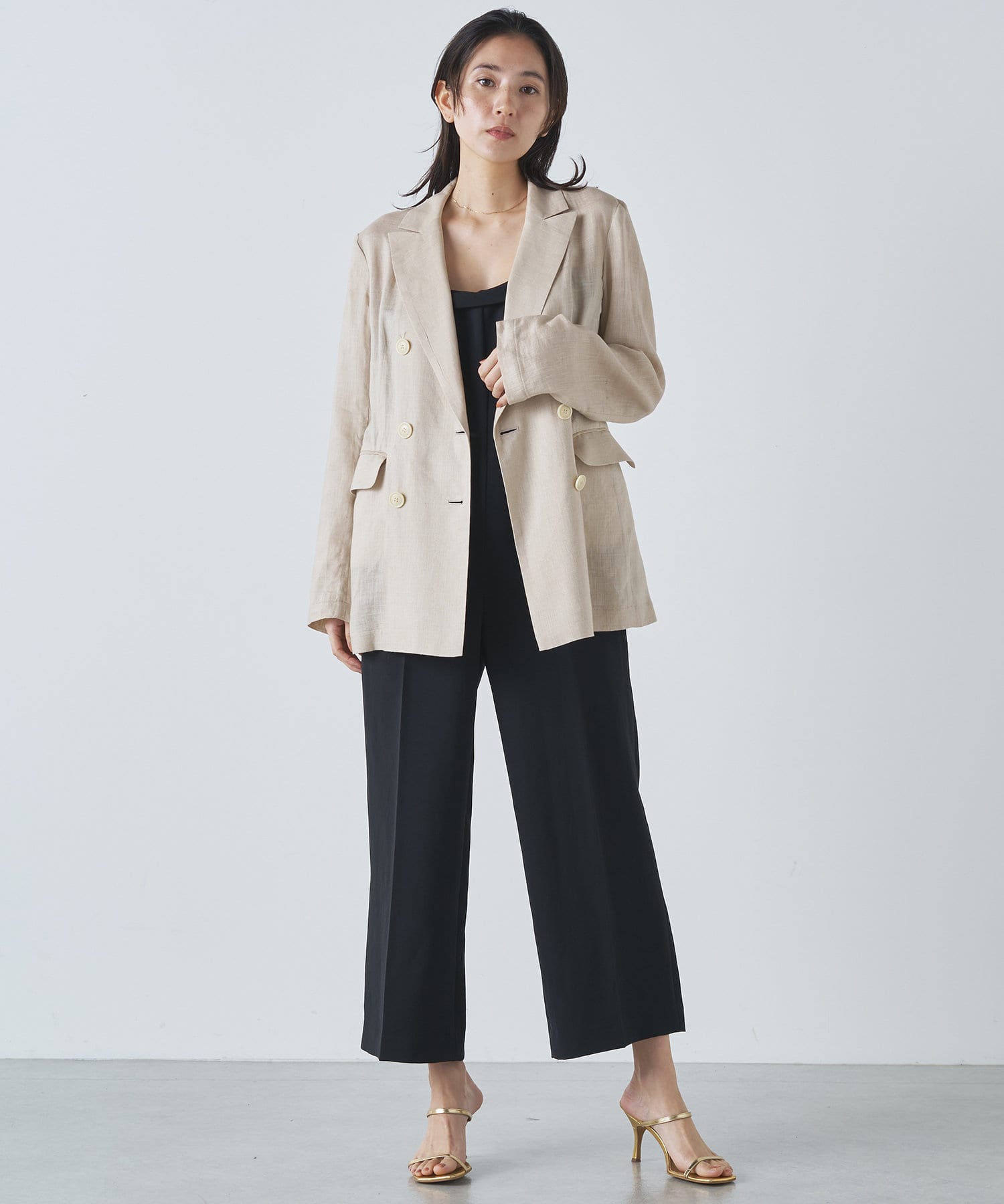 素肌に直接着てもノンストレスな着心地。パンツのラインも太すぎず細すぎず、小柄な方が少し長めの羽織を合わせても、バランスをとりやすいです。