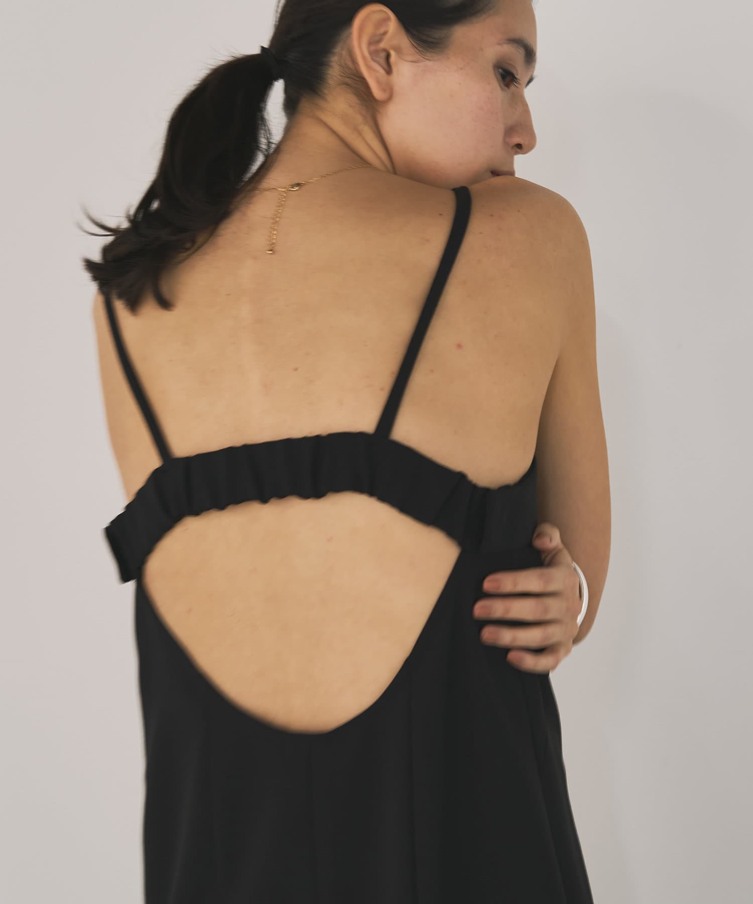 バックスタイルも美しい、センシュアルなキャミワンピ