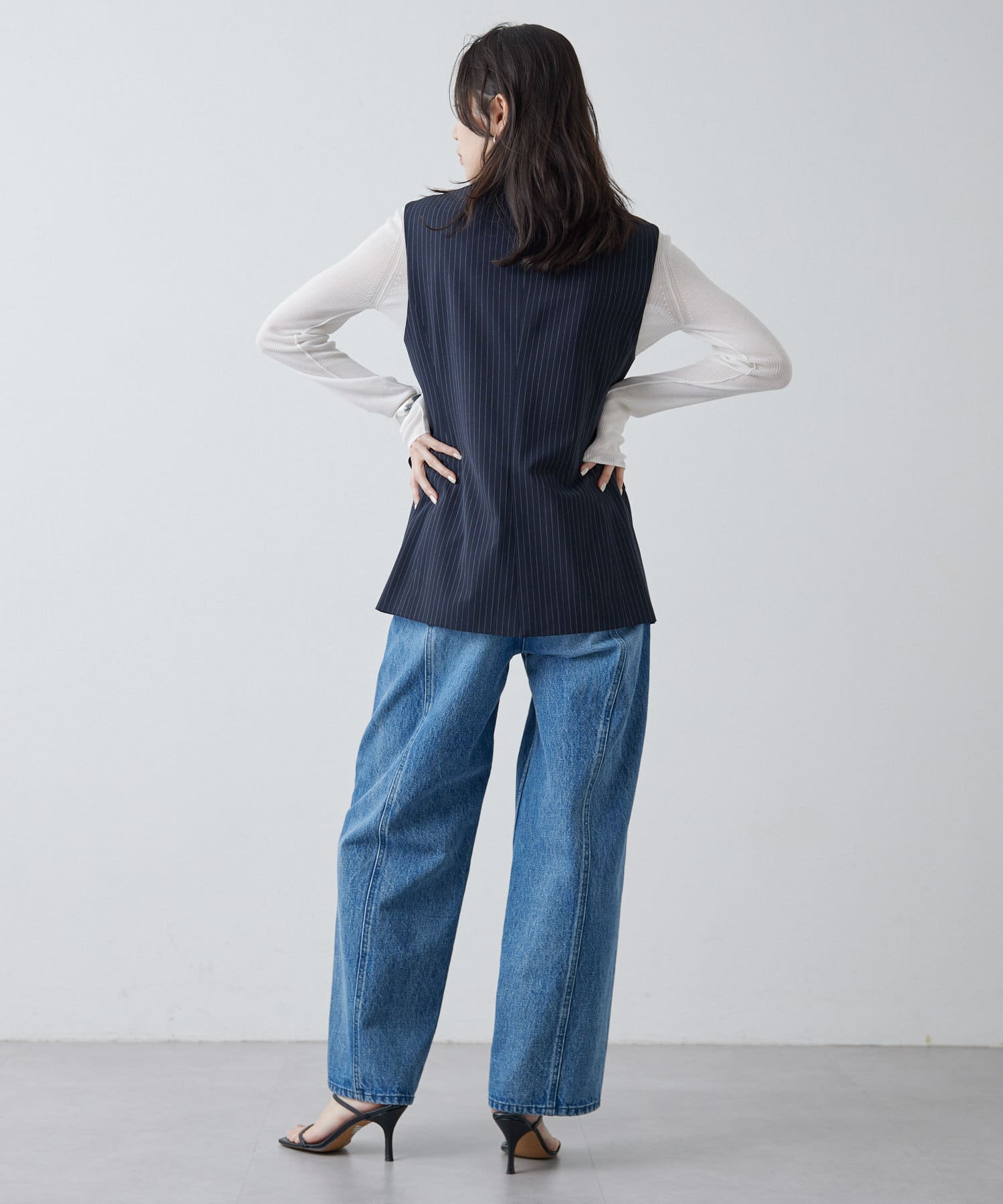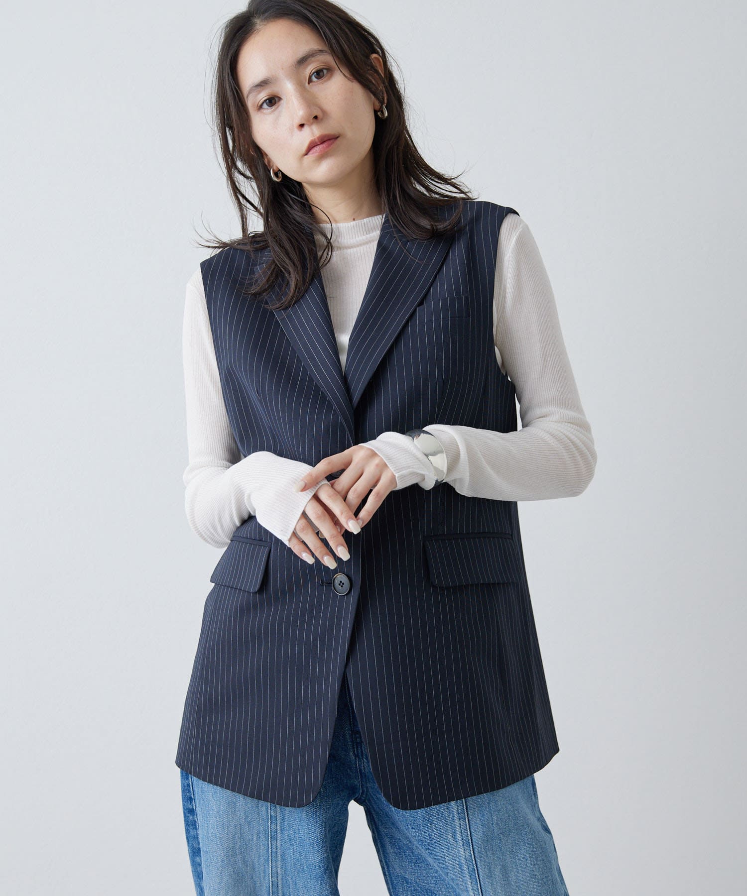 シックにきまるベストは1枚でもジャケットの中にきても◎さりげないストライプ柄がおしゃれ見えします