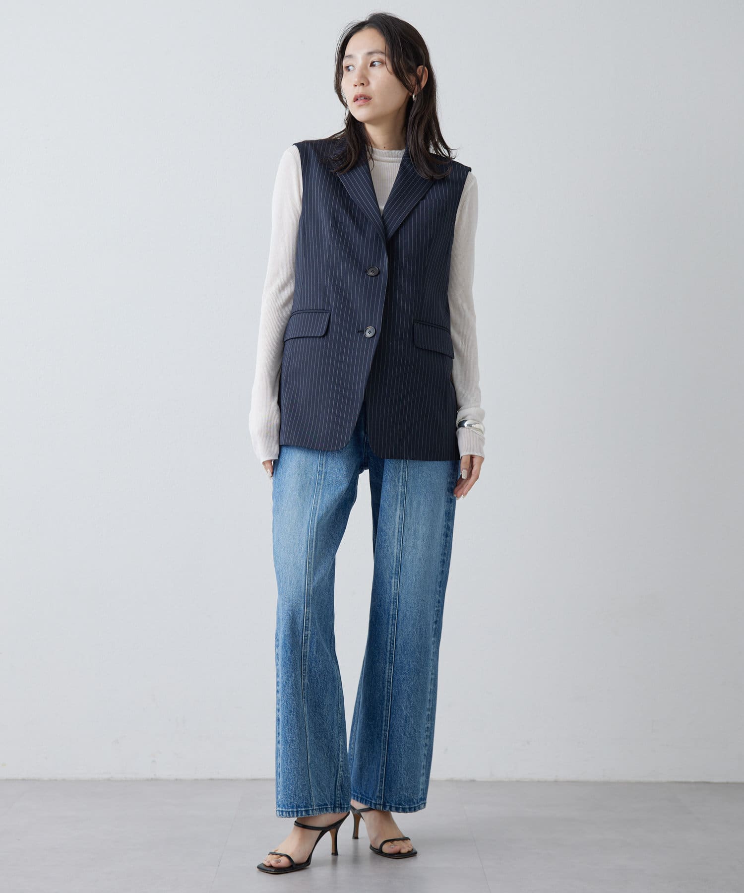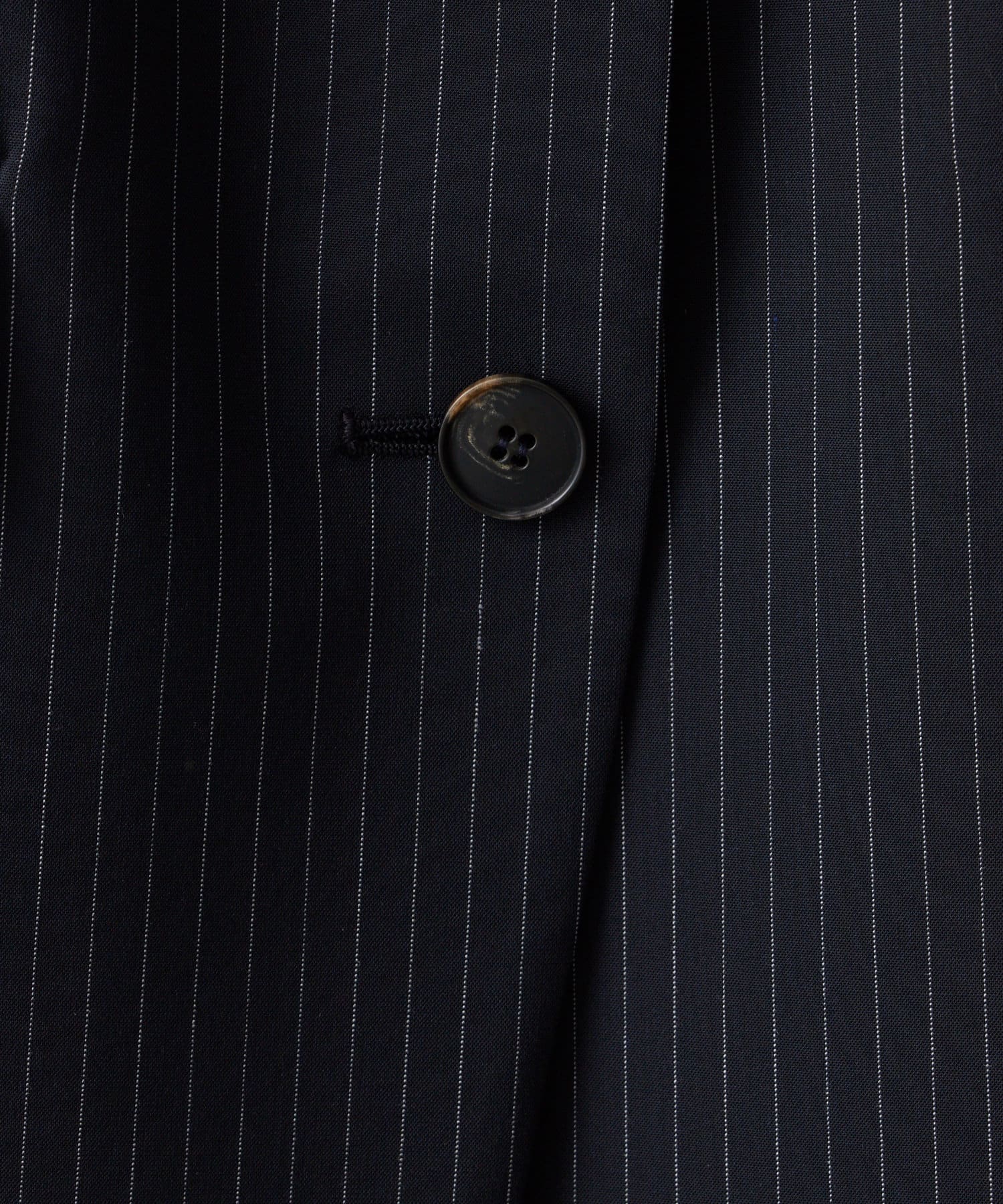 ベージュのストライプが新鮮で、柄を着たことがない方にもおすすめな品のある印象です◎大きめなラペルでマニッシュ。Tシャツで合わせたり、デニムでカジュアルにスタイリングするのも素敵です。