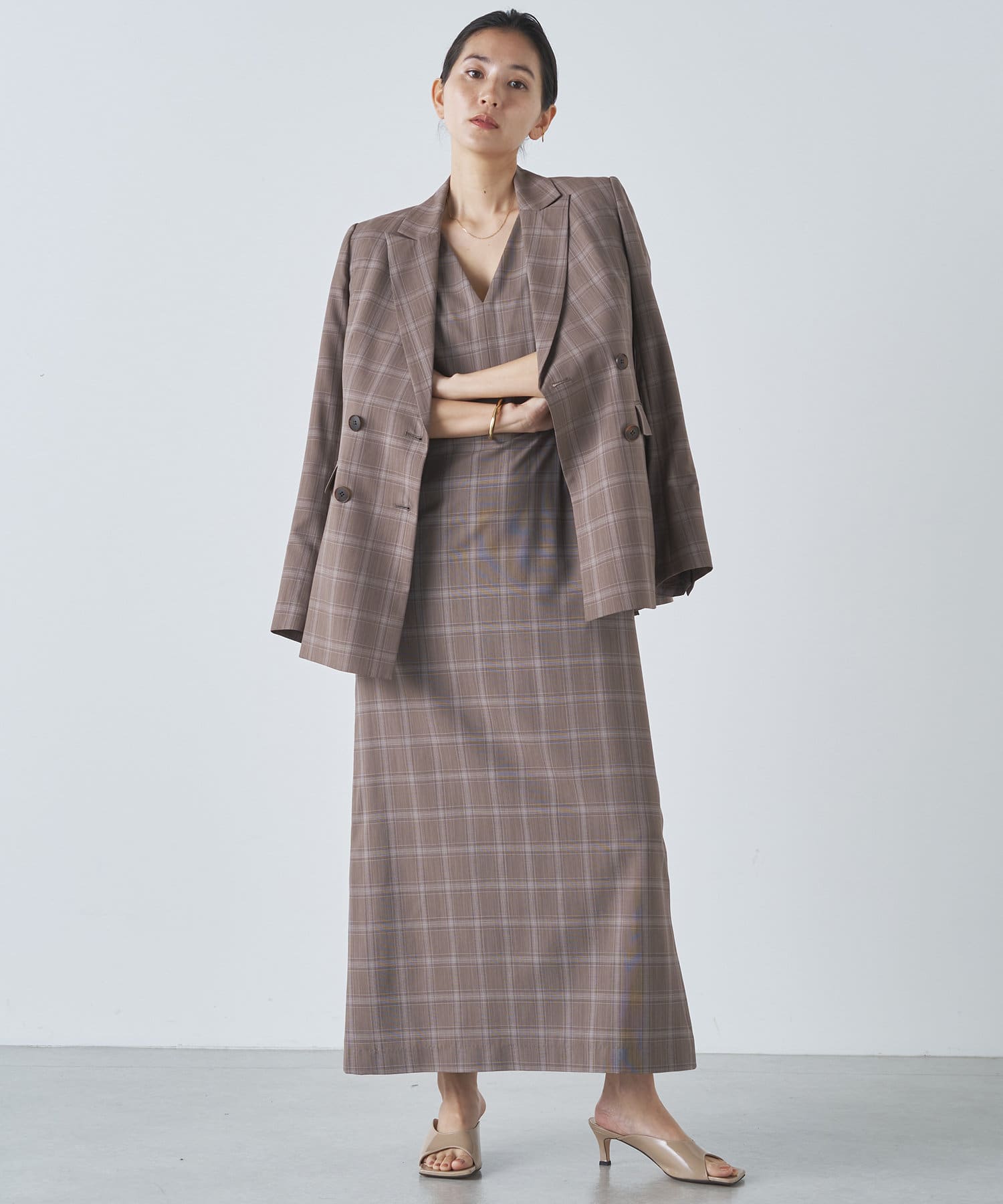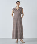 1枚で着映えするワンピース。細いラインのチェックがカジュアルすぎず大人も着れる柄ワンピースです。潔いVネックですが、肩が隠れるフレンチスリーブデザインが程よい肌見せで着ていただけます。36サイズ着用でかかと丁度の丈感です。