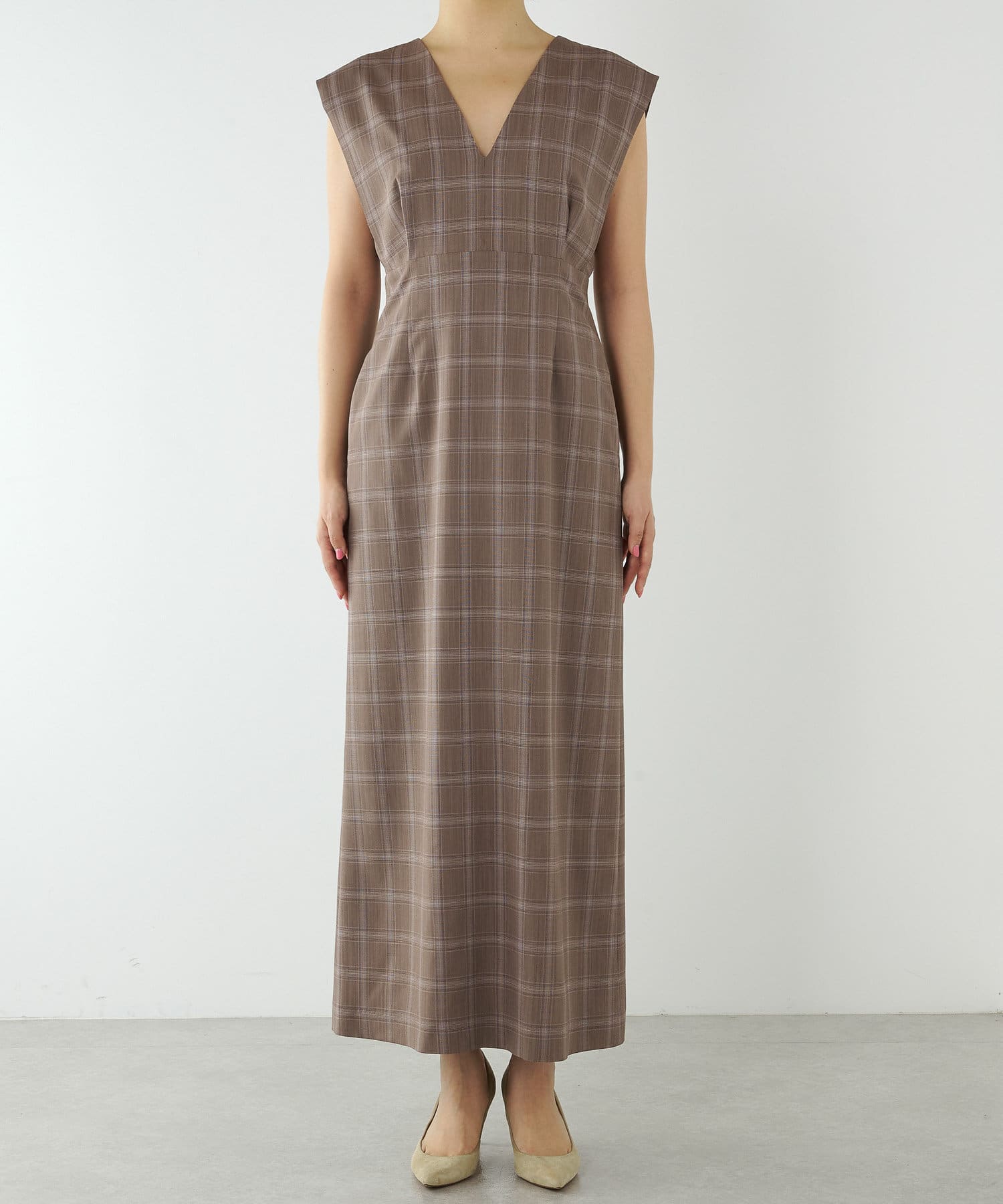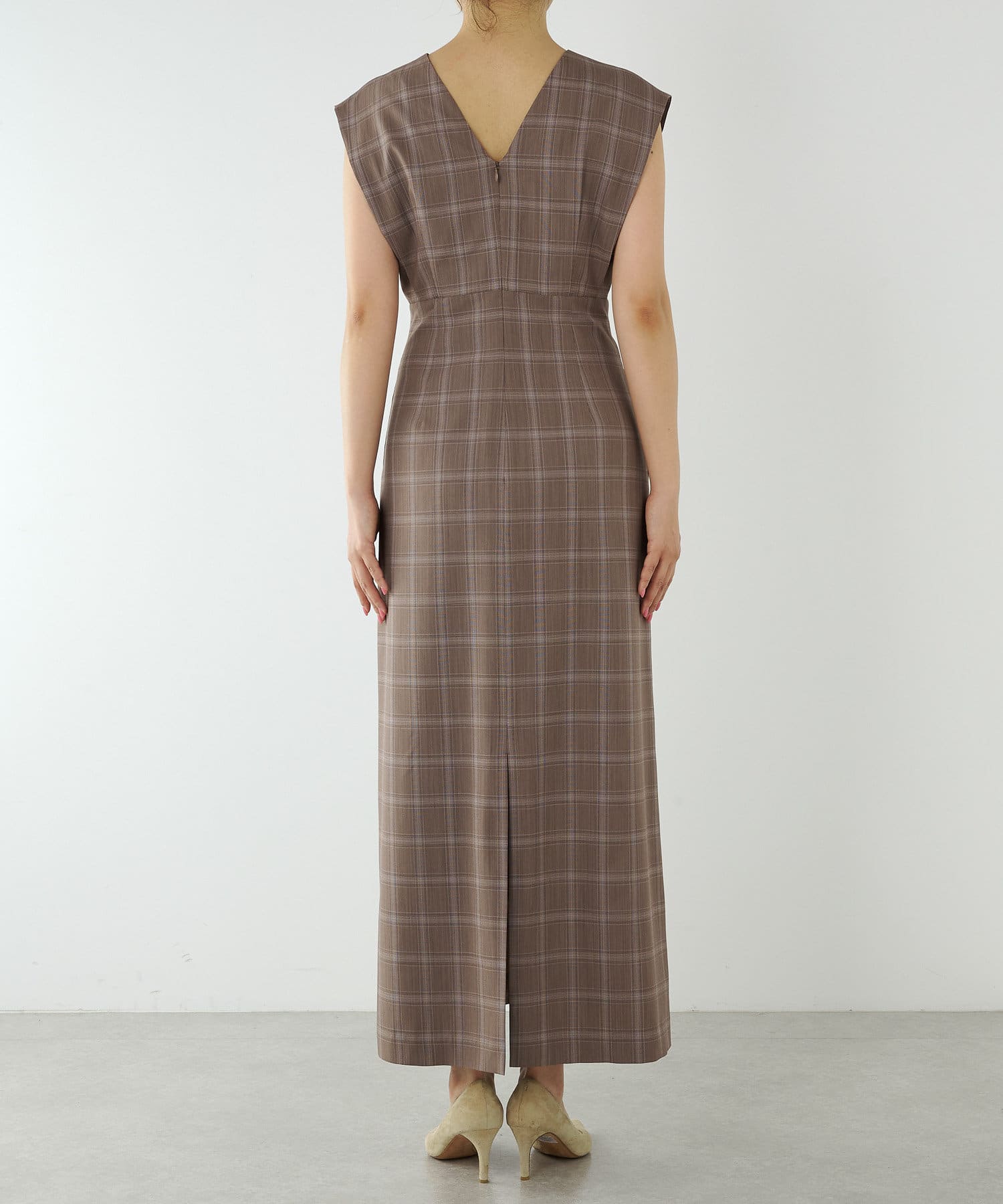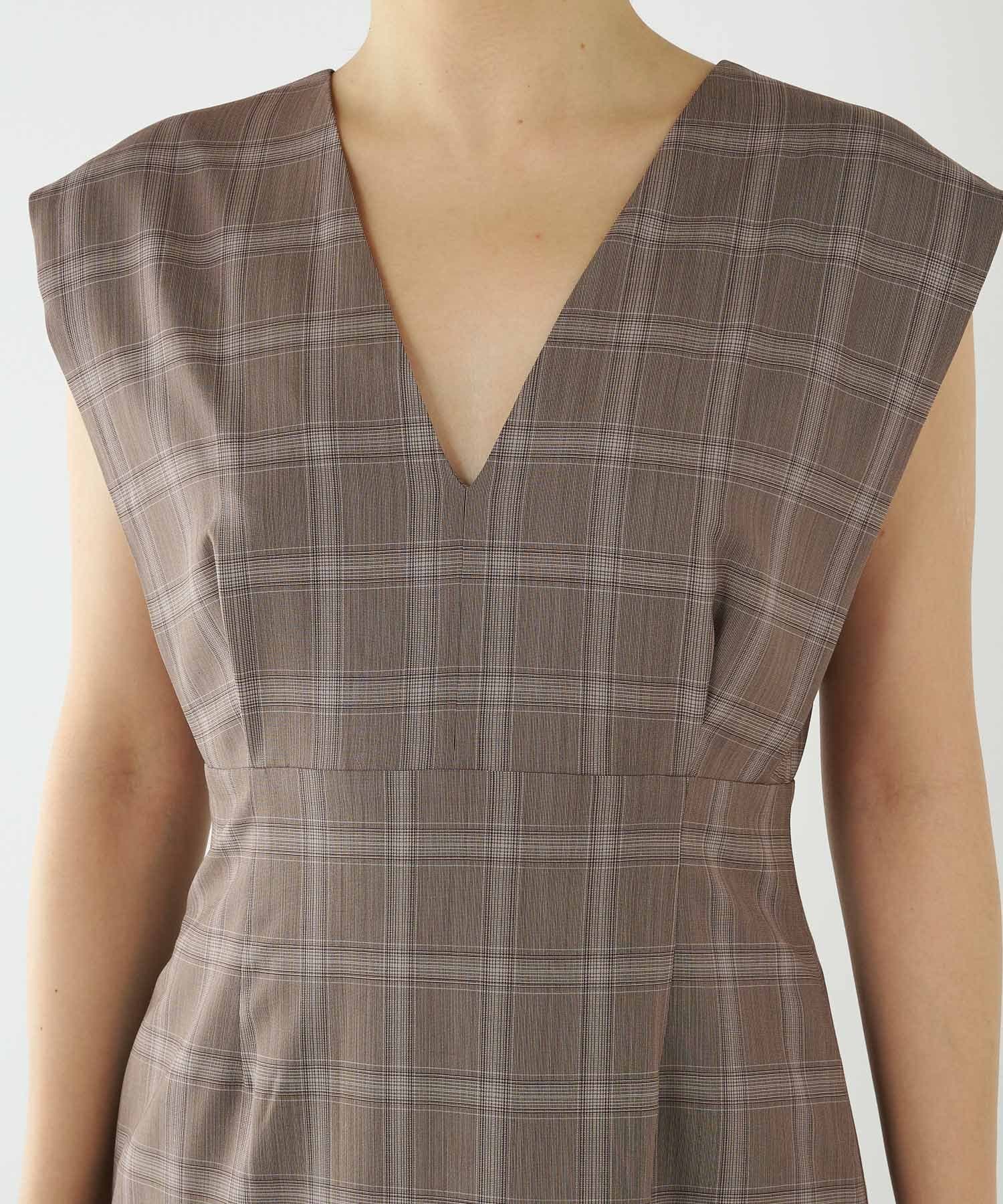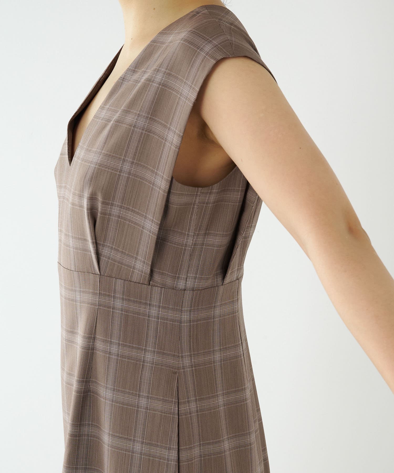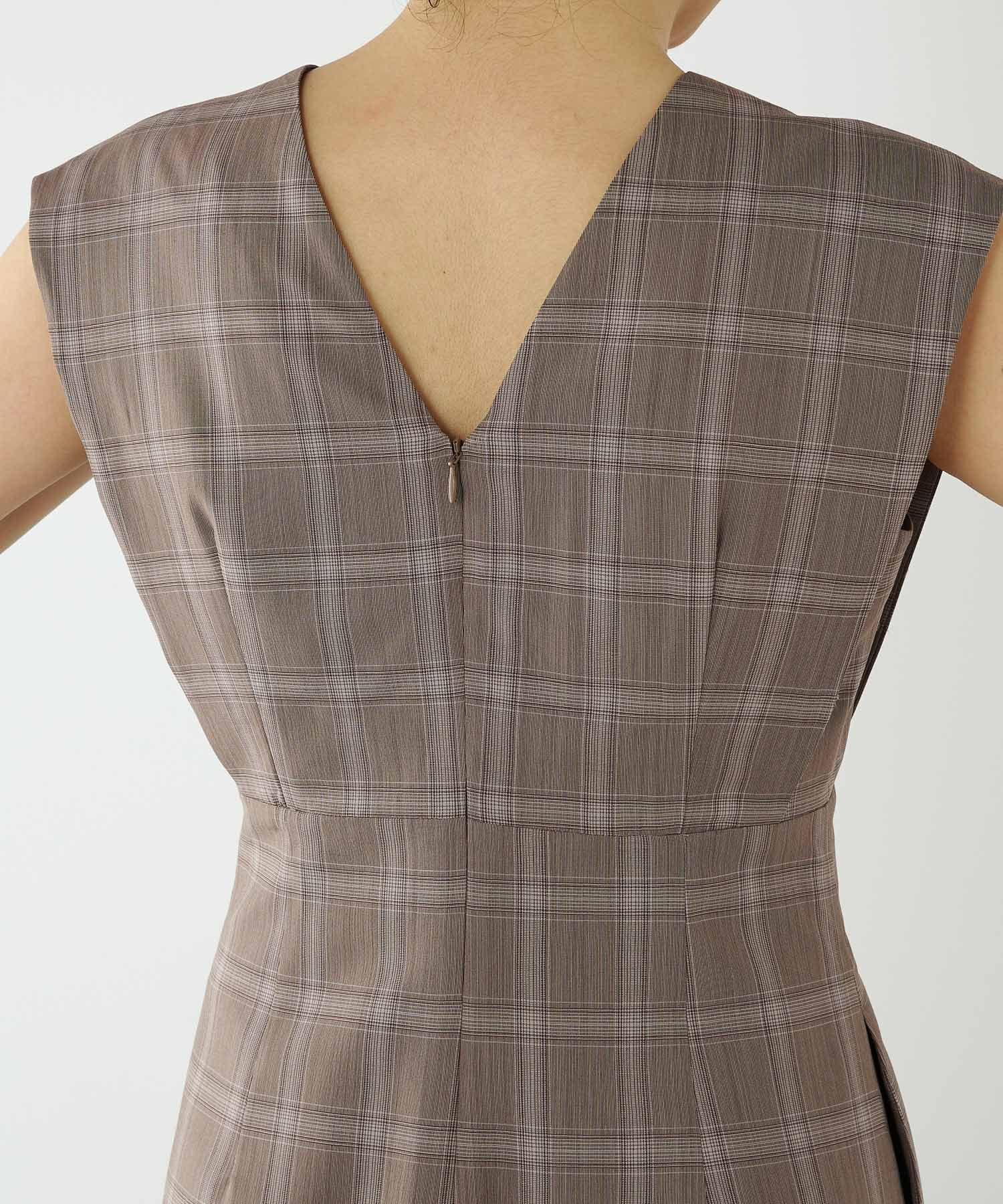 ■上品なチェック柄が大人見えするノースリーブワンピース。