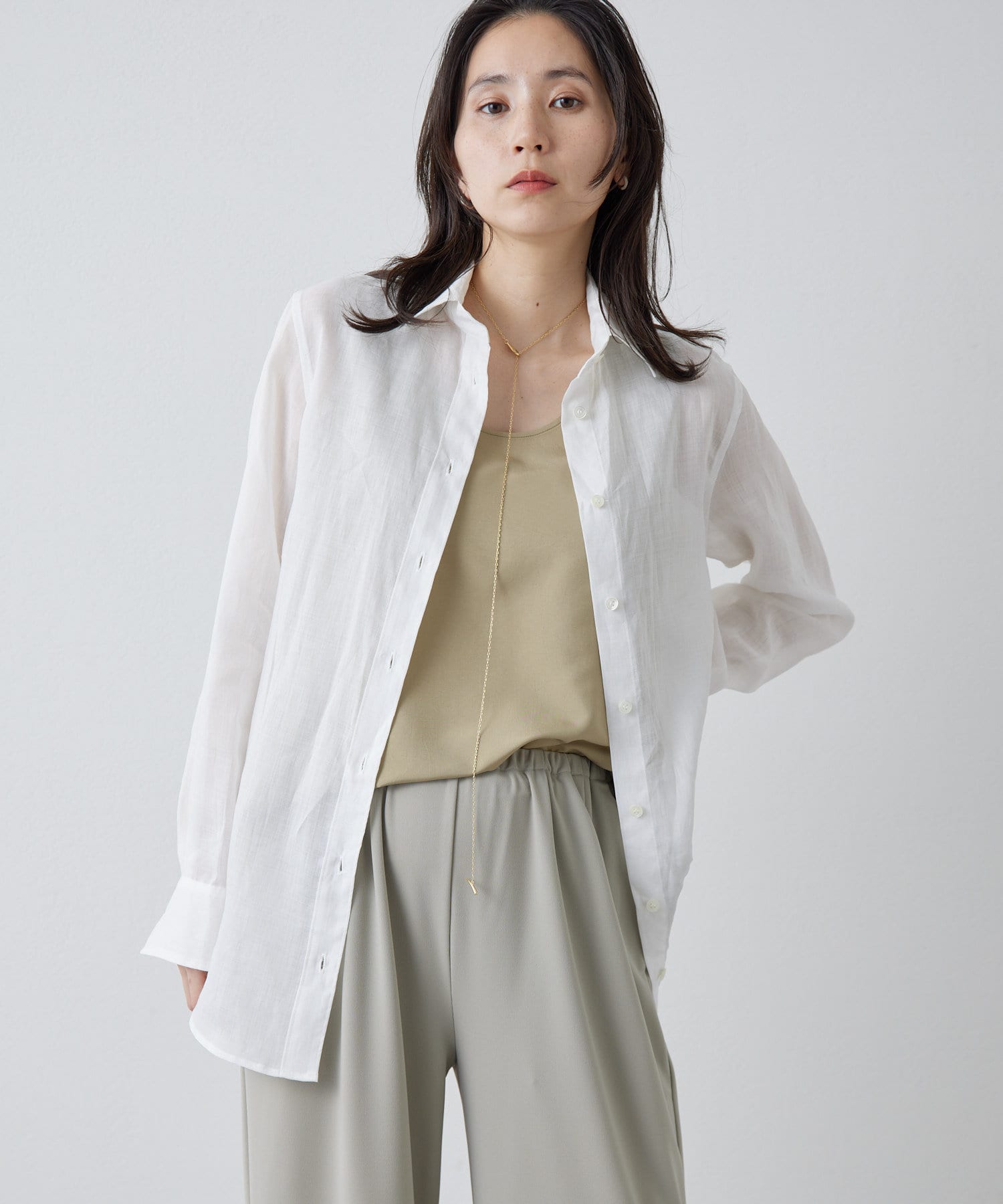 とろみのあるキュプラ素材のブラウス。着丈が短めでバランスが取りやすいです。こなれ感のあるカラーも魅力的で、ワンランク上の着こなしが仕上がります。羽織としてもお召頂けるので、キャミワンピースなどに合わせても素敵です。