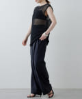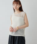 メッシュが夏らしいノースリーブプルオーバー。程よく開いたネックラインが女性らしいです。タンクトップやキャミソールを合わせて涼し気にお召頂けます。