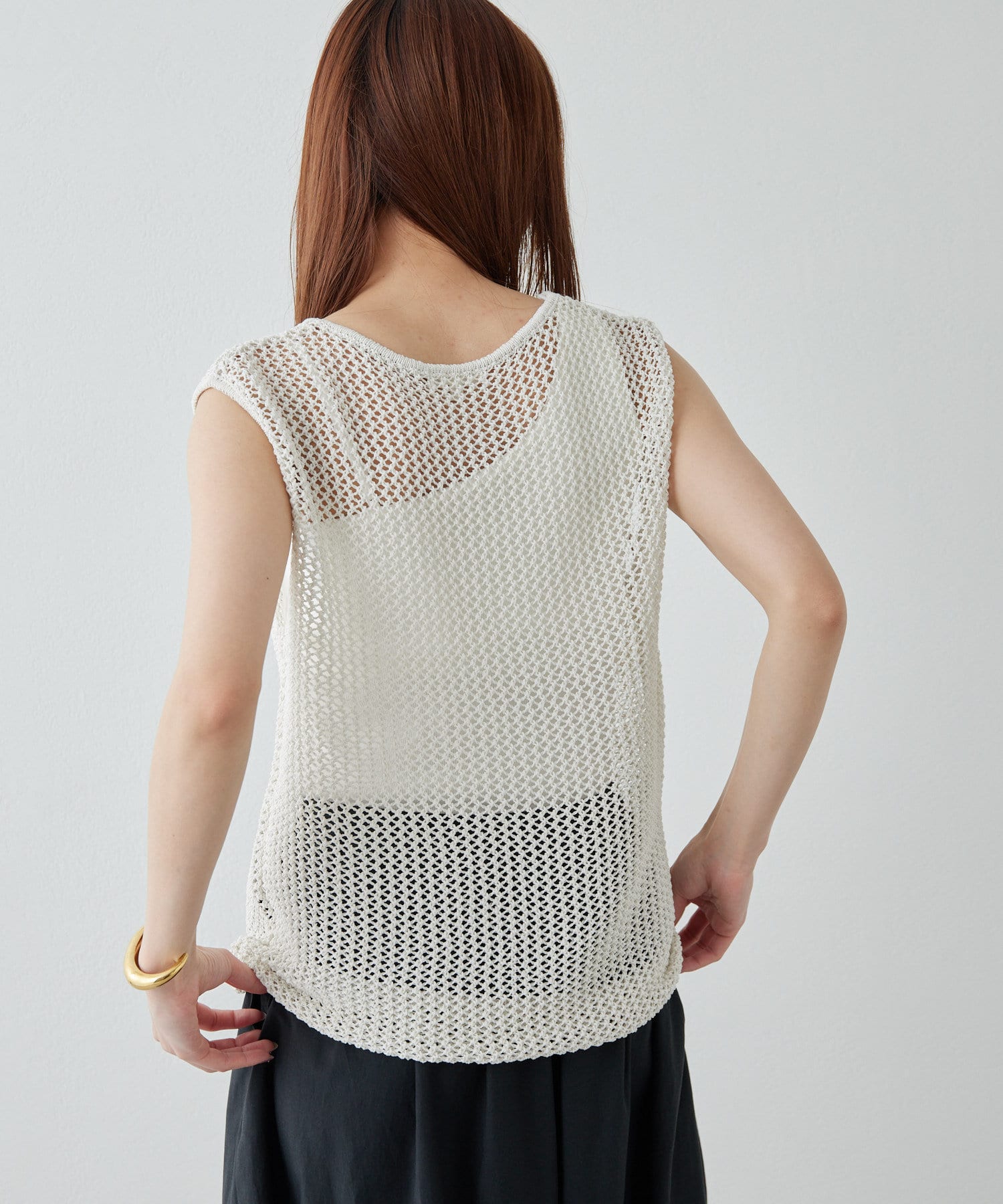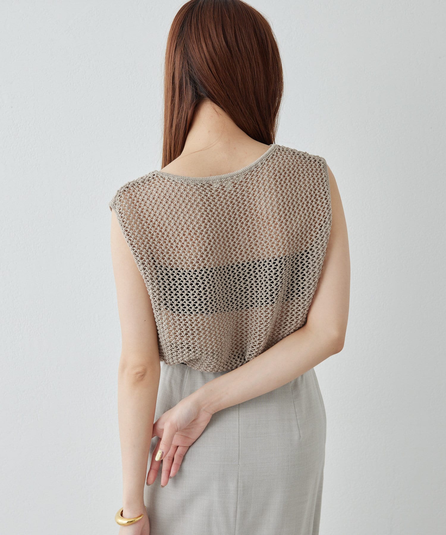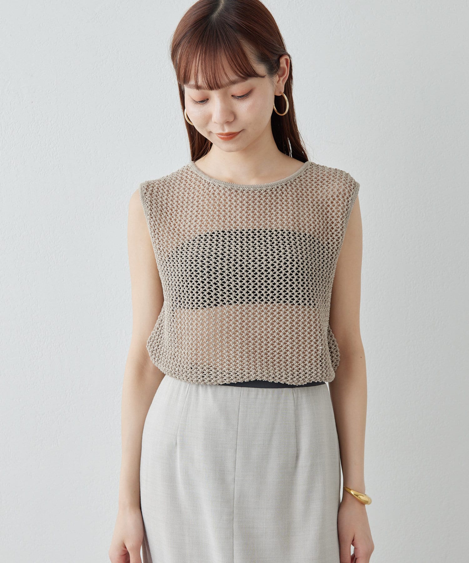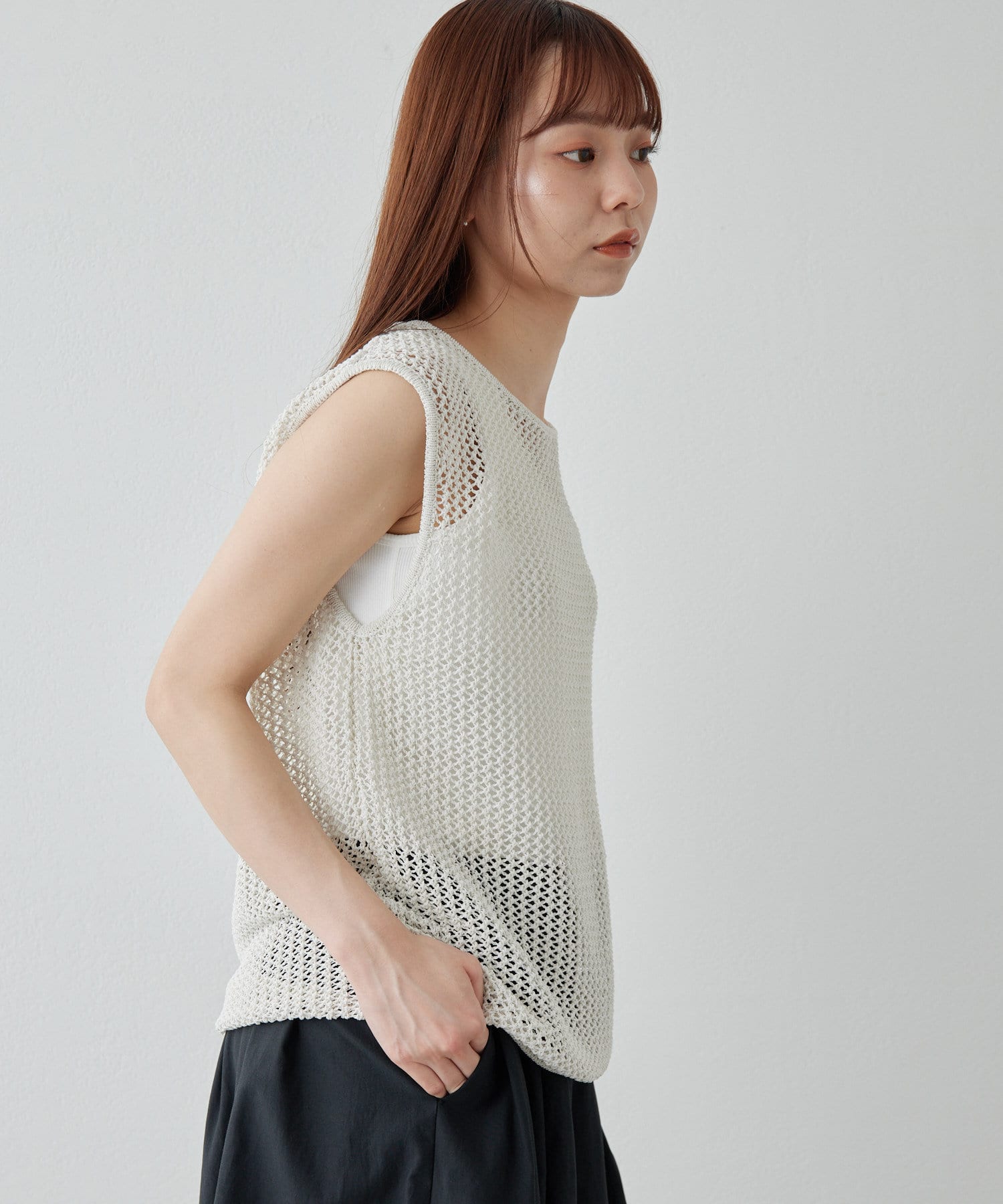 ■清涼感溢れるメッシュ編みのノースリーブニットプルオーバー。