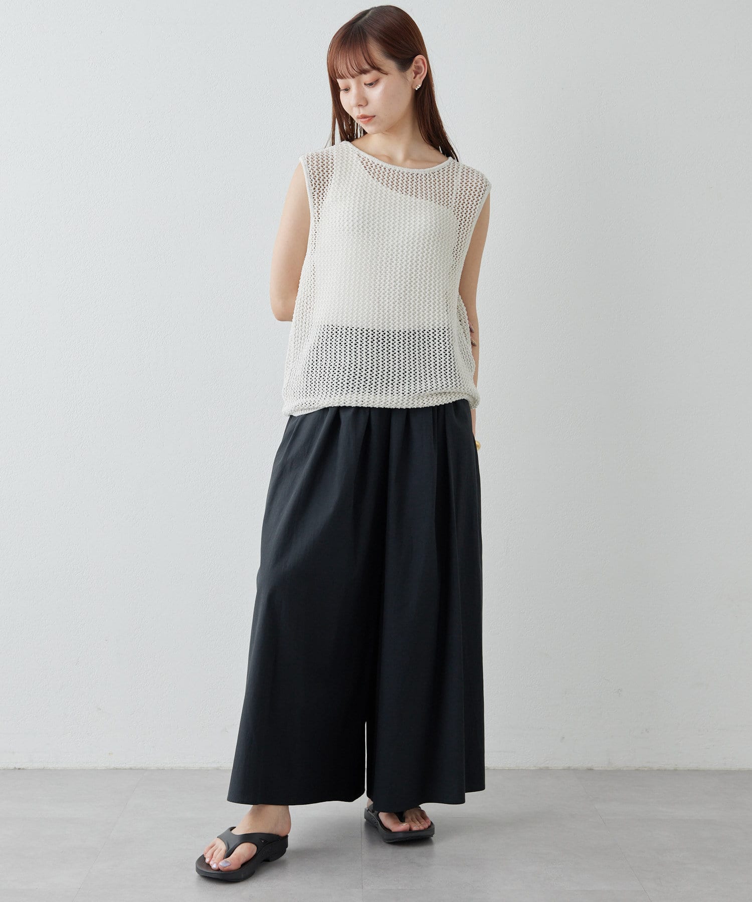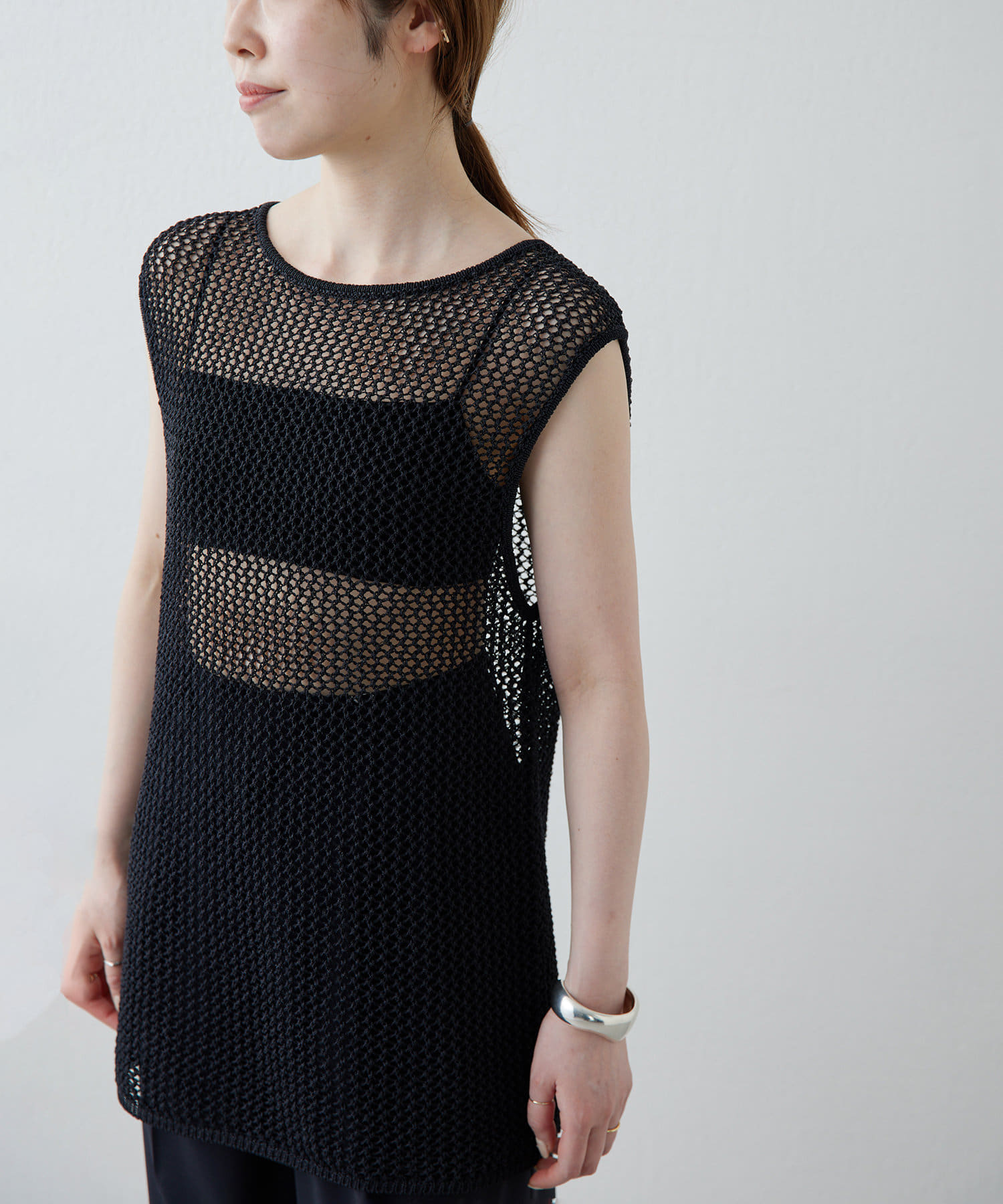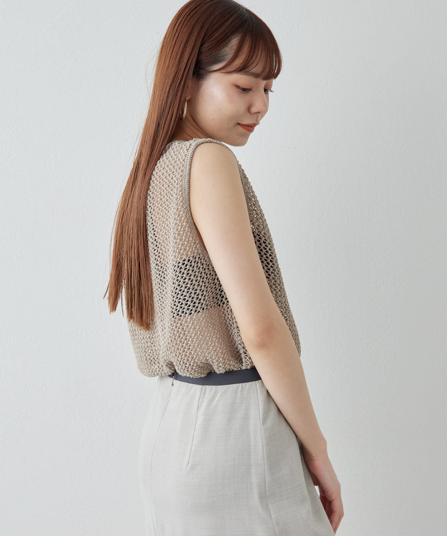 ■清涼感溢れるメッシュ編みのノースリーブニットプルオーバー。