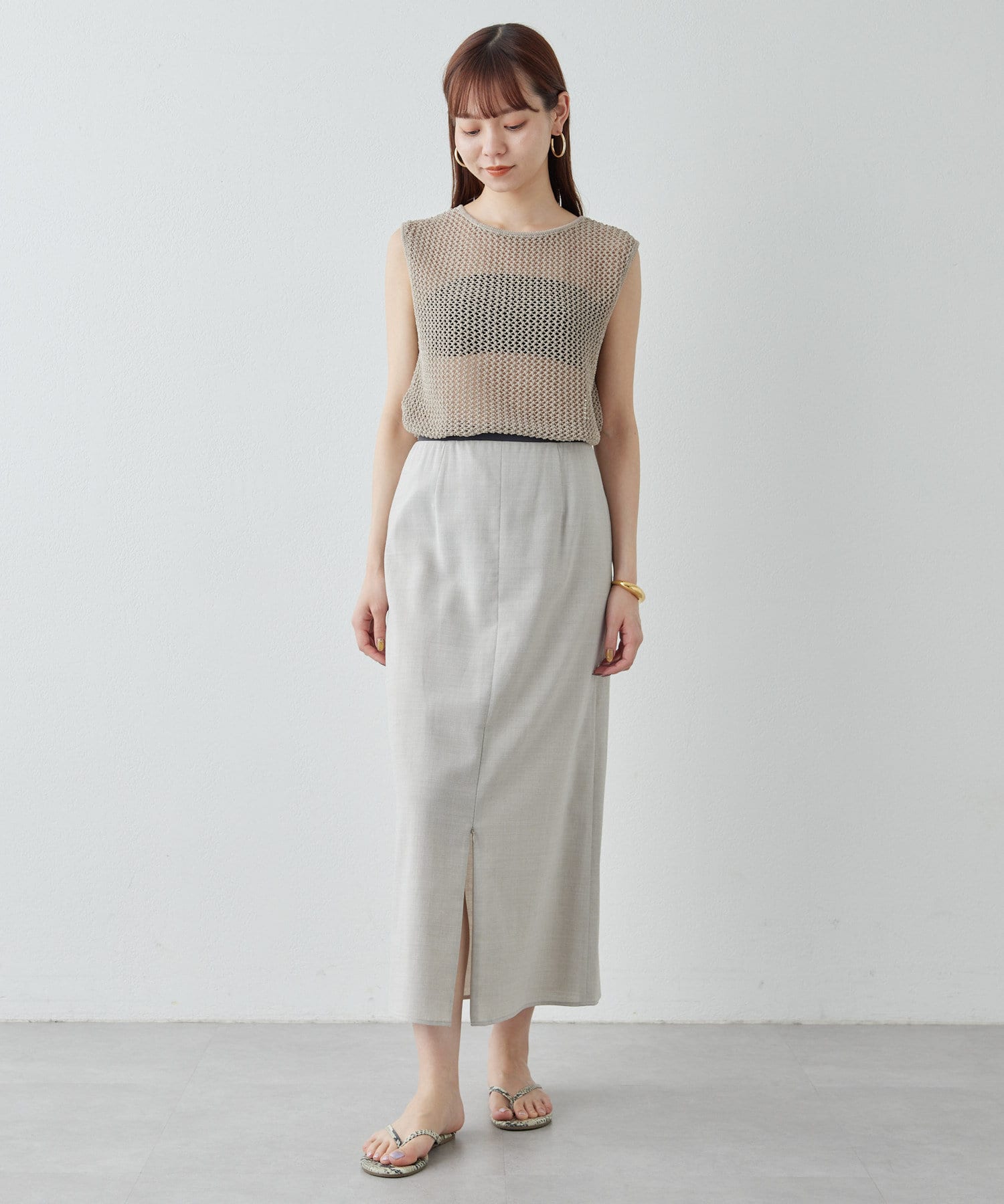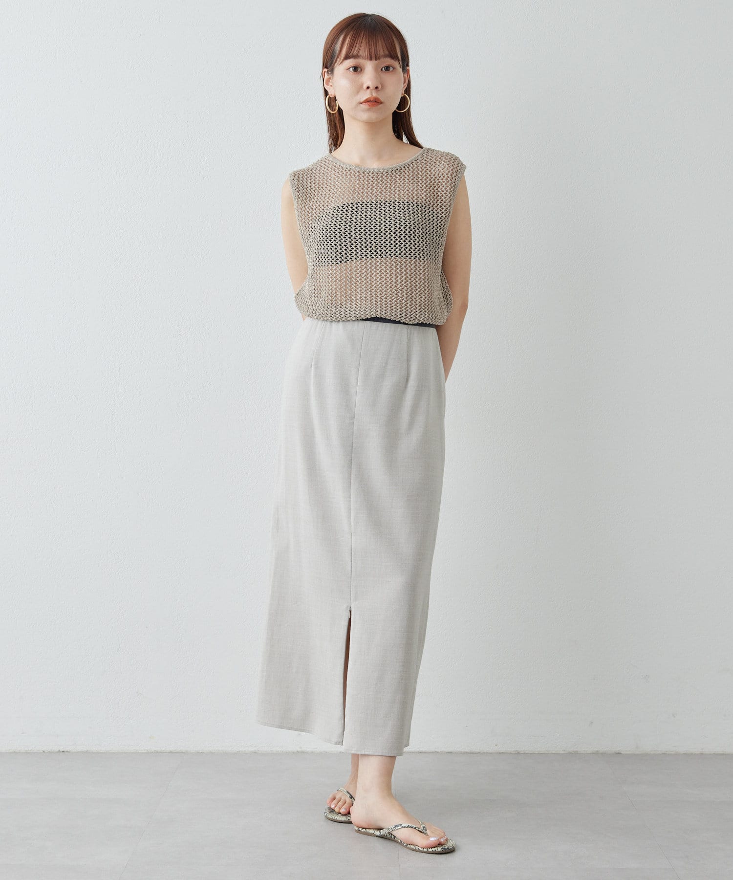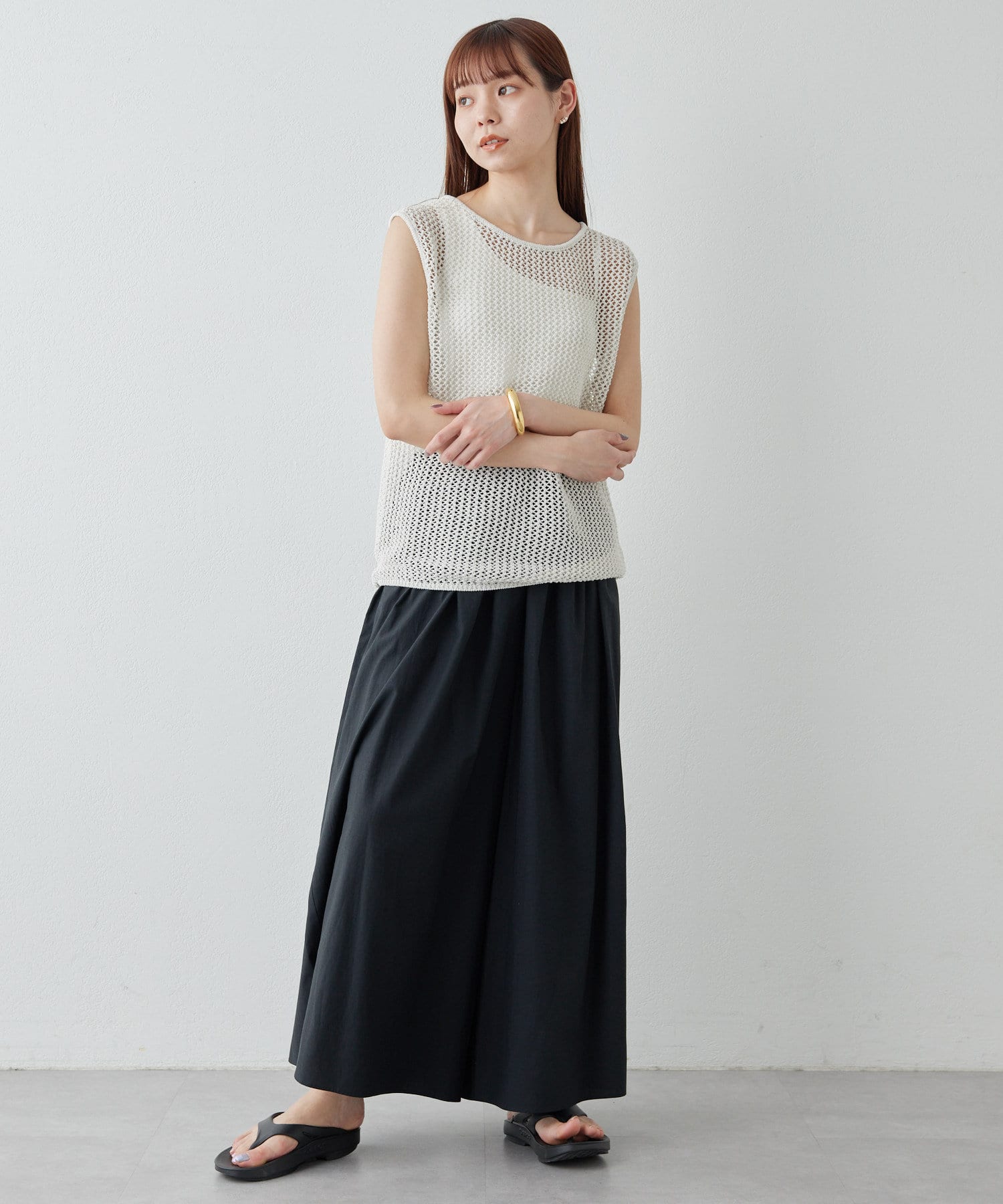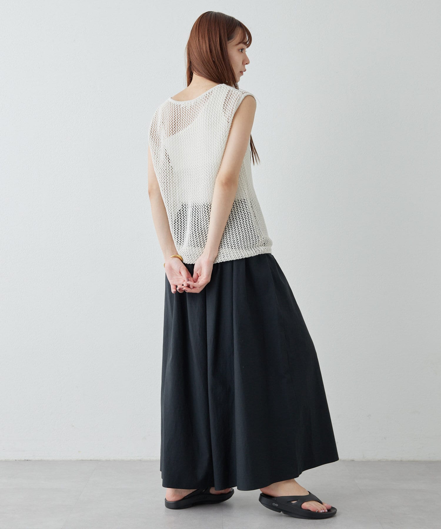 ■清涼感溢れるメッシュ編みのノースリーブニットプルオーバー。