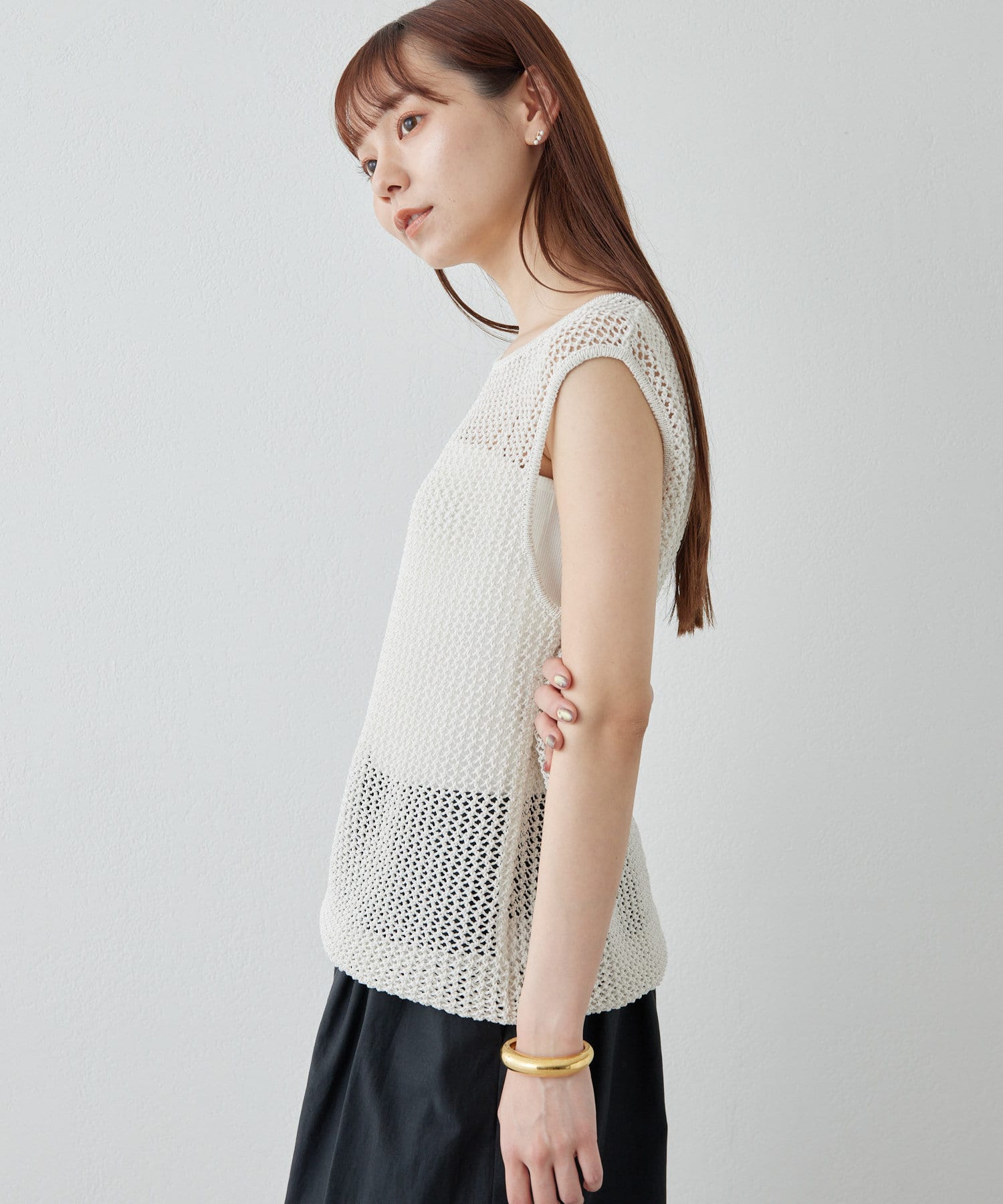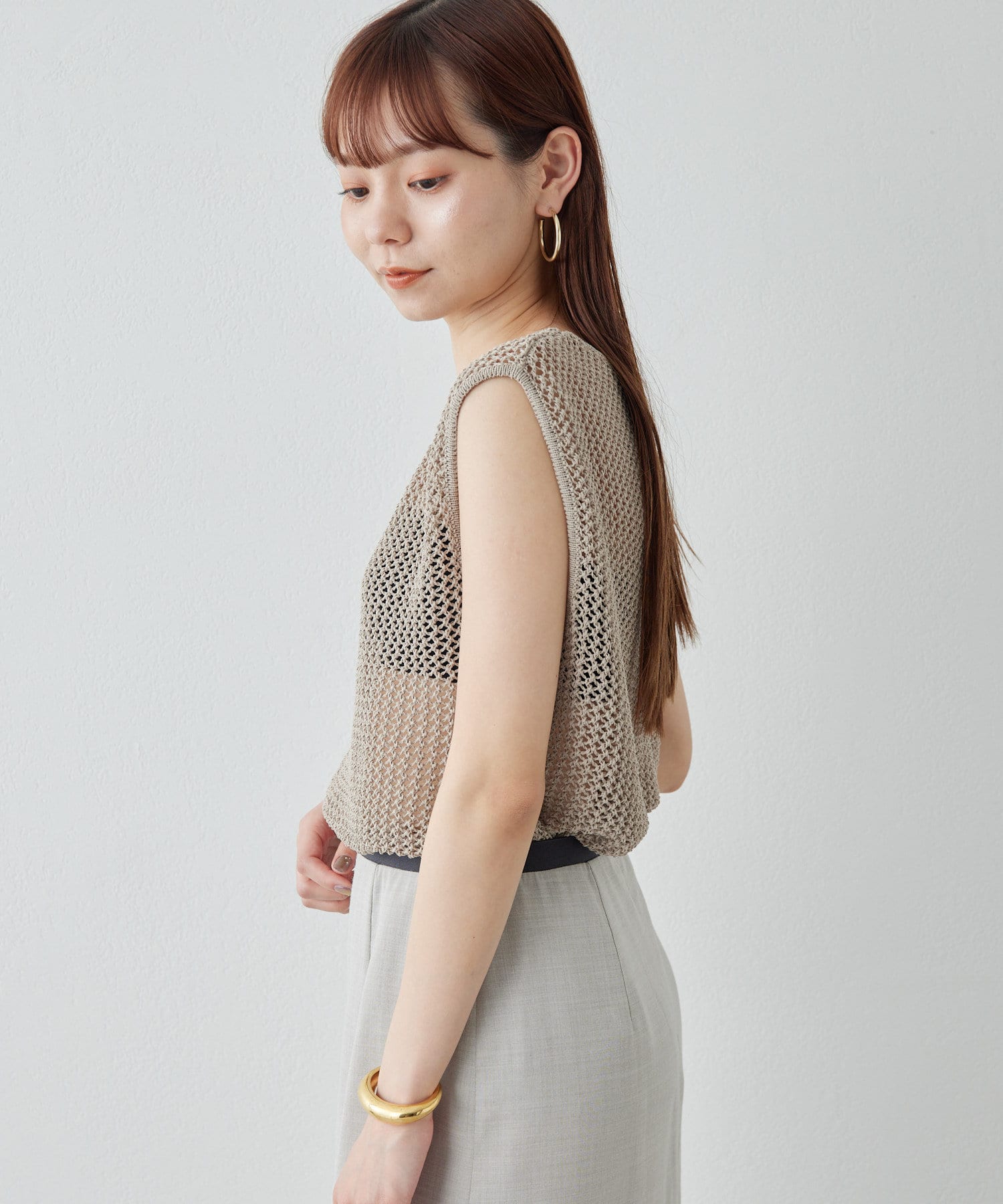 ヘルシーな着こなしを品良く楽しめるメッシュノースリニット