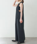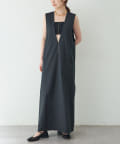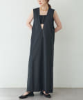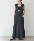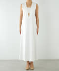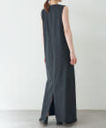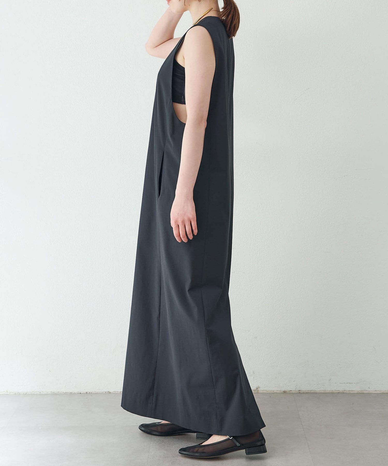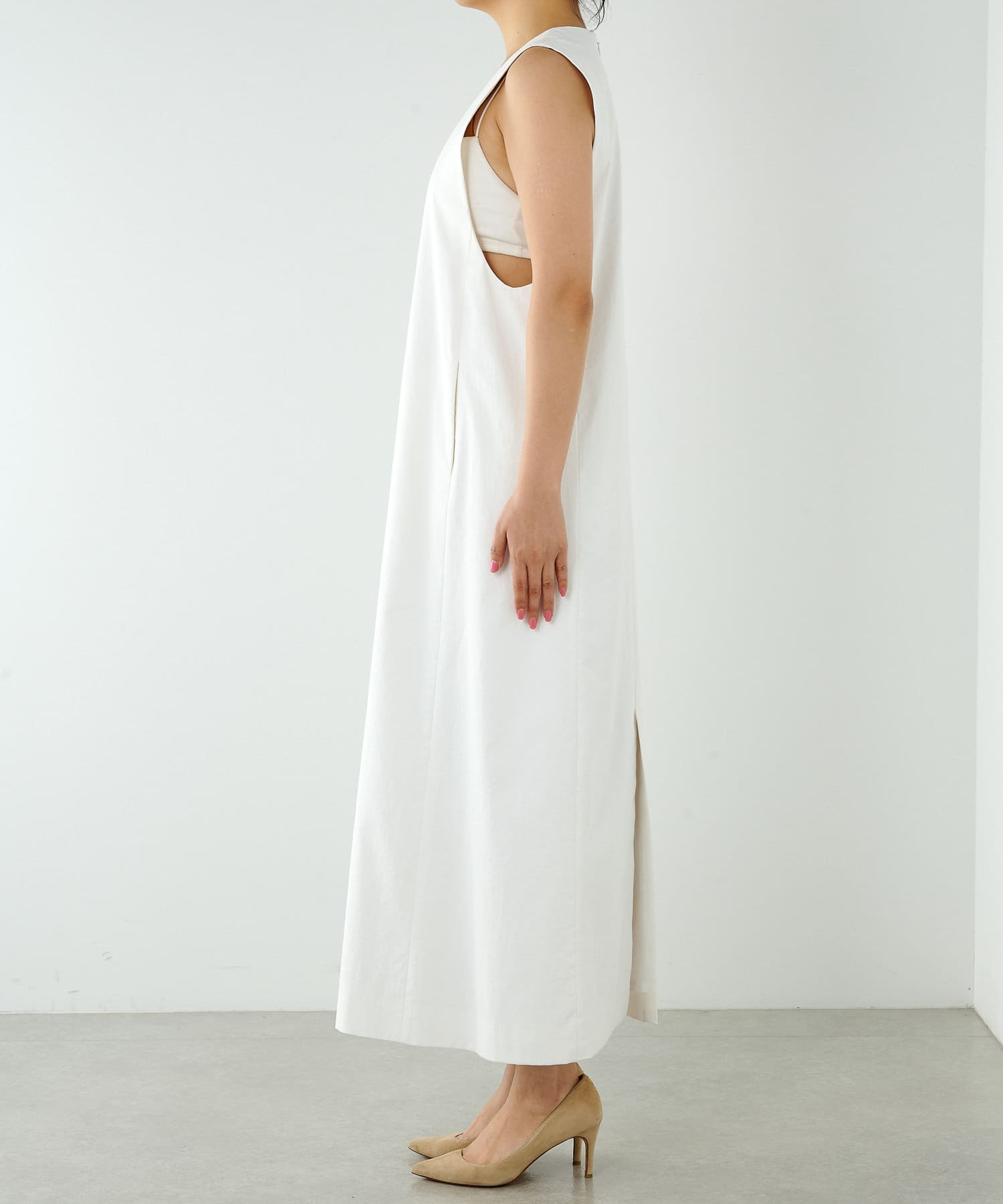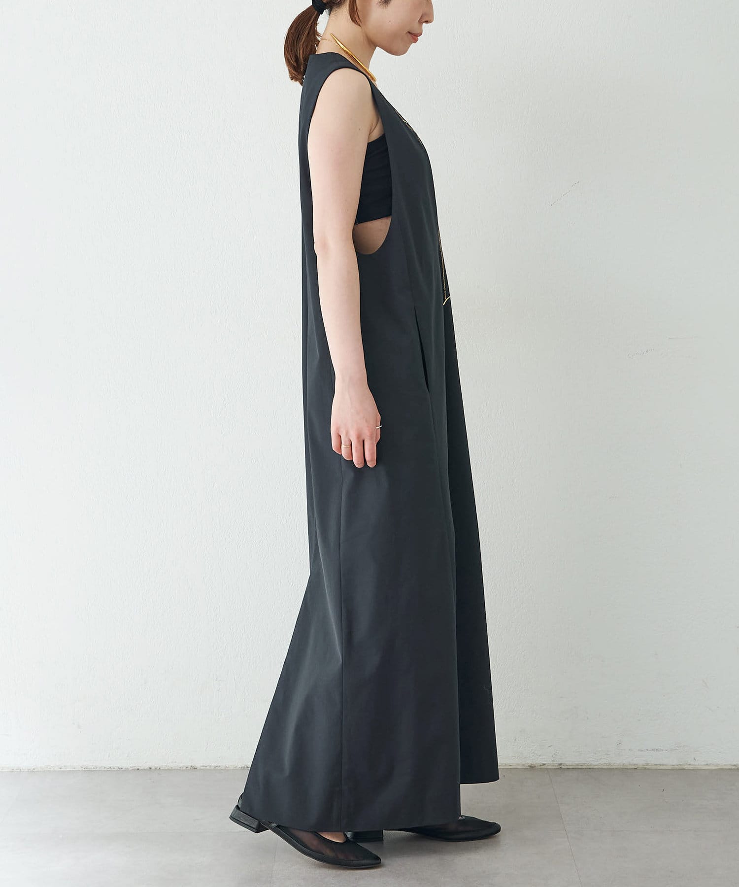 ■深めのVネック開きが特徴的なノースリーブワンピース。