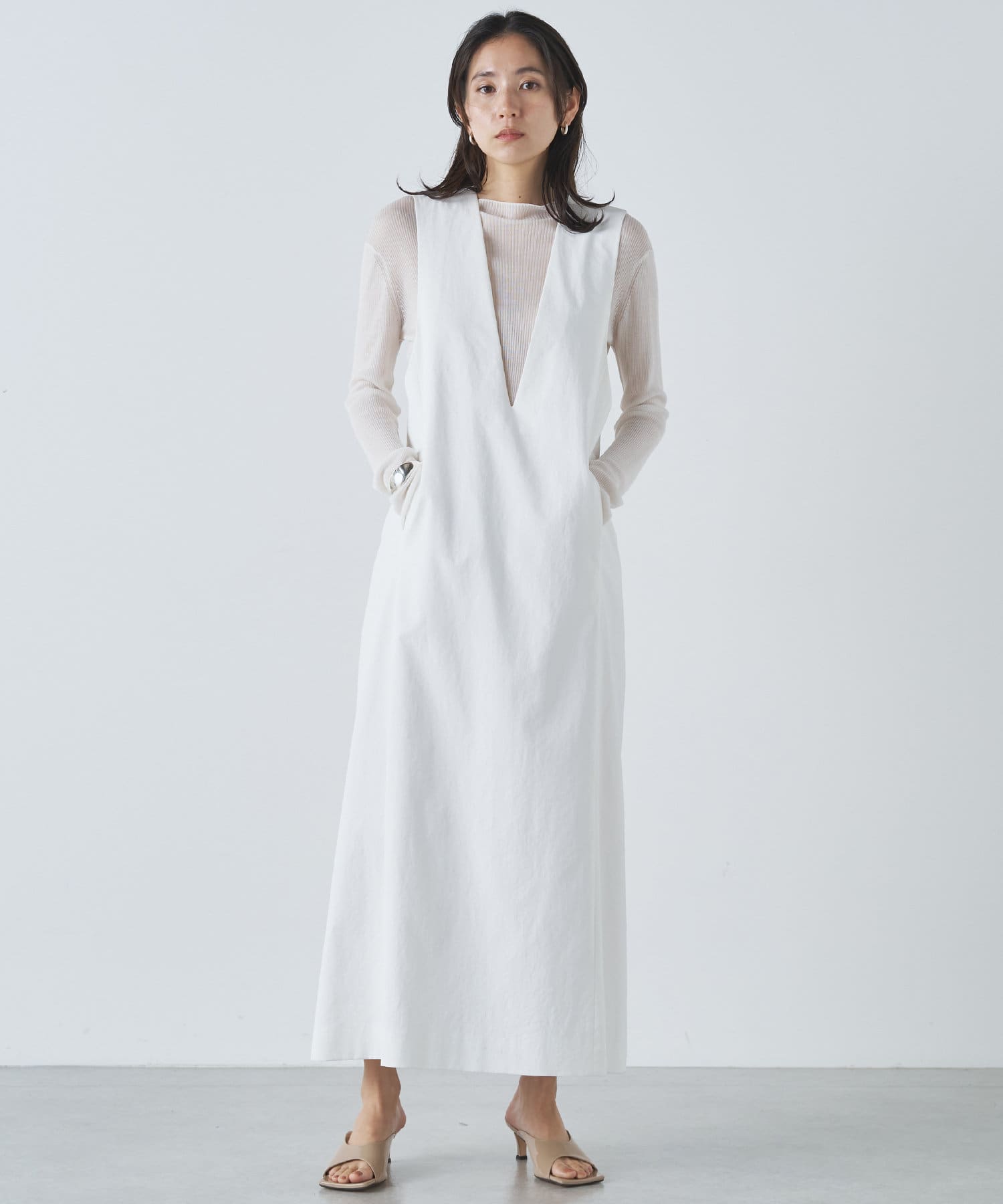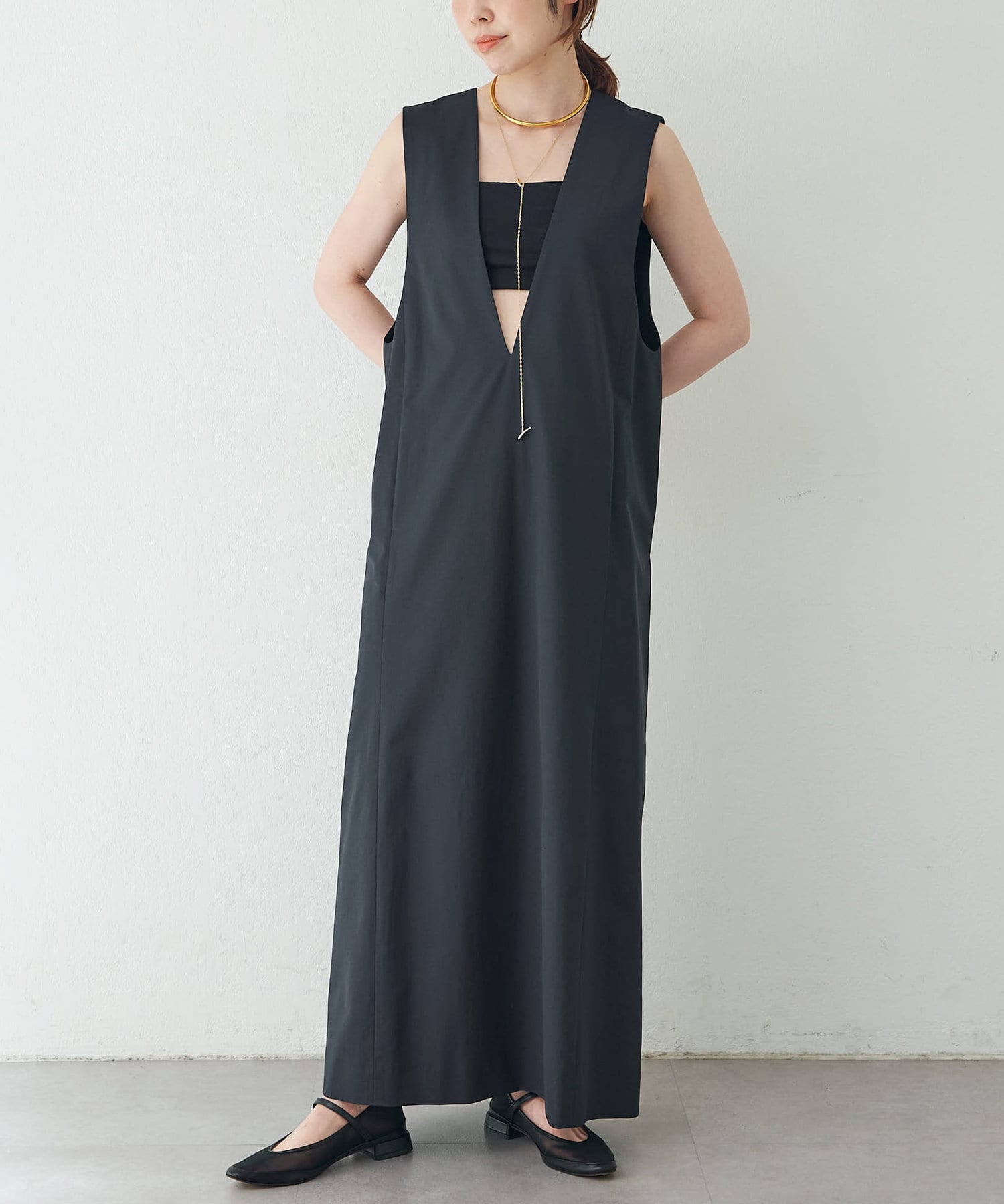 着方のバリエーションを楽しめる、ミニマルな深Vネックワンピ