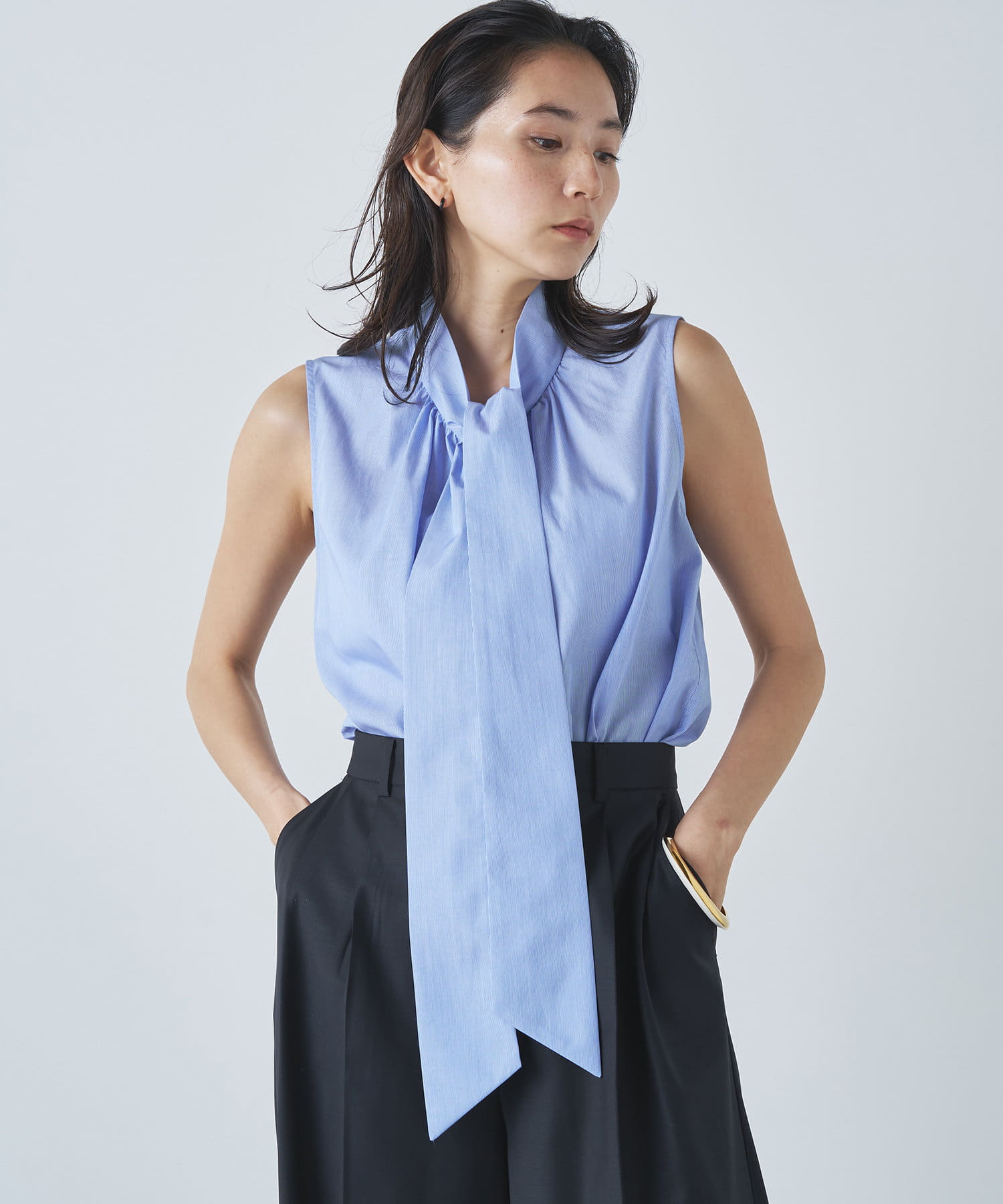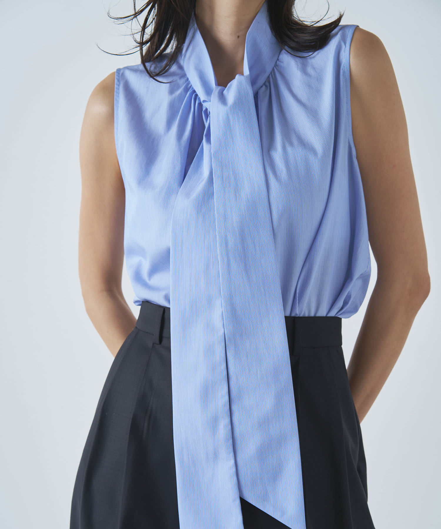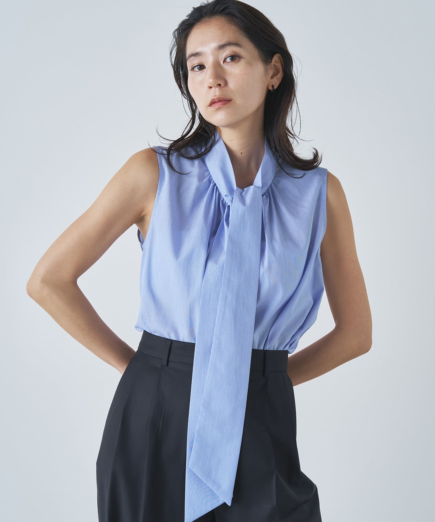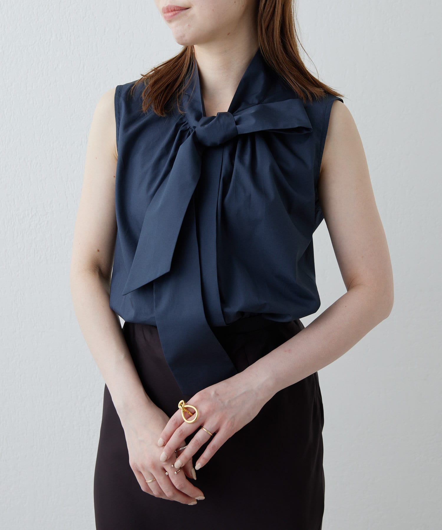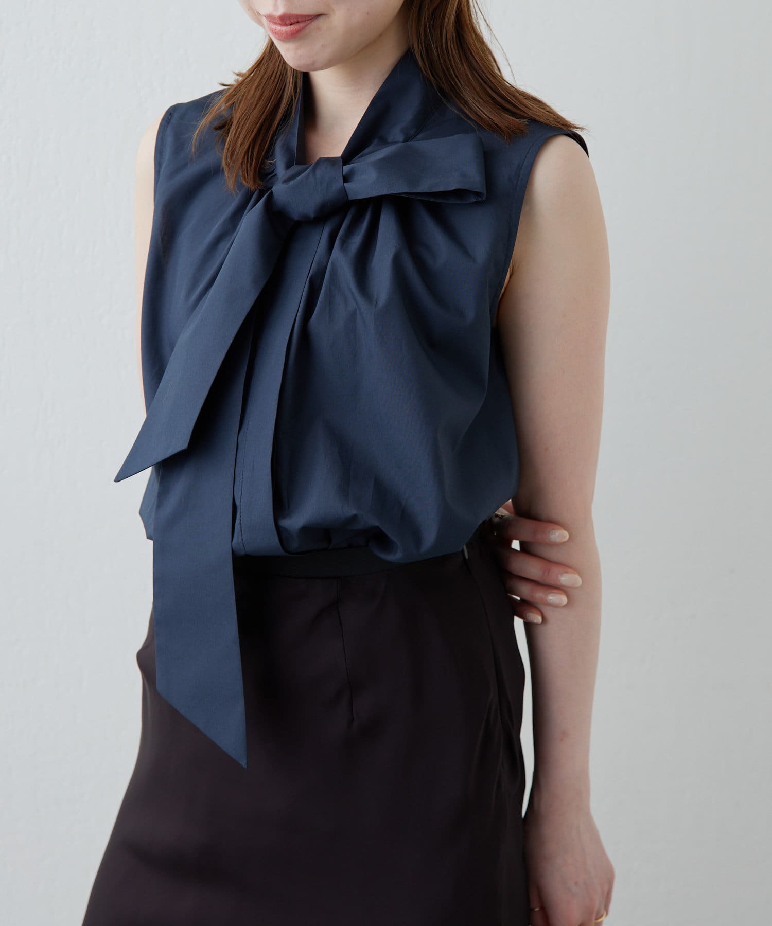 ■ボウタイデザインがポイントになったノースリーブブラウス。