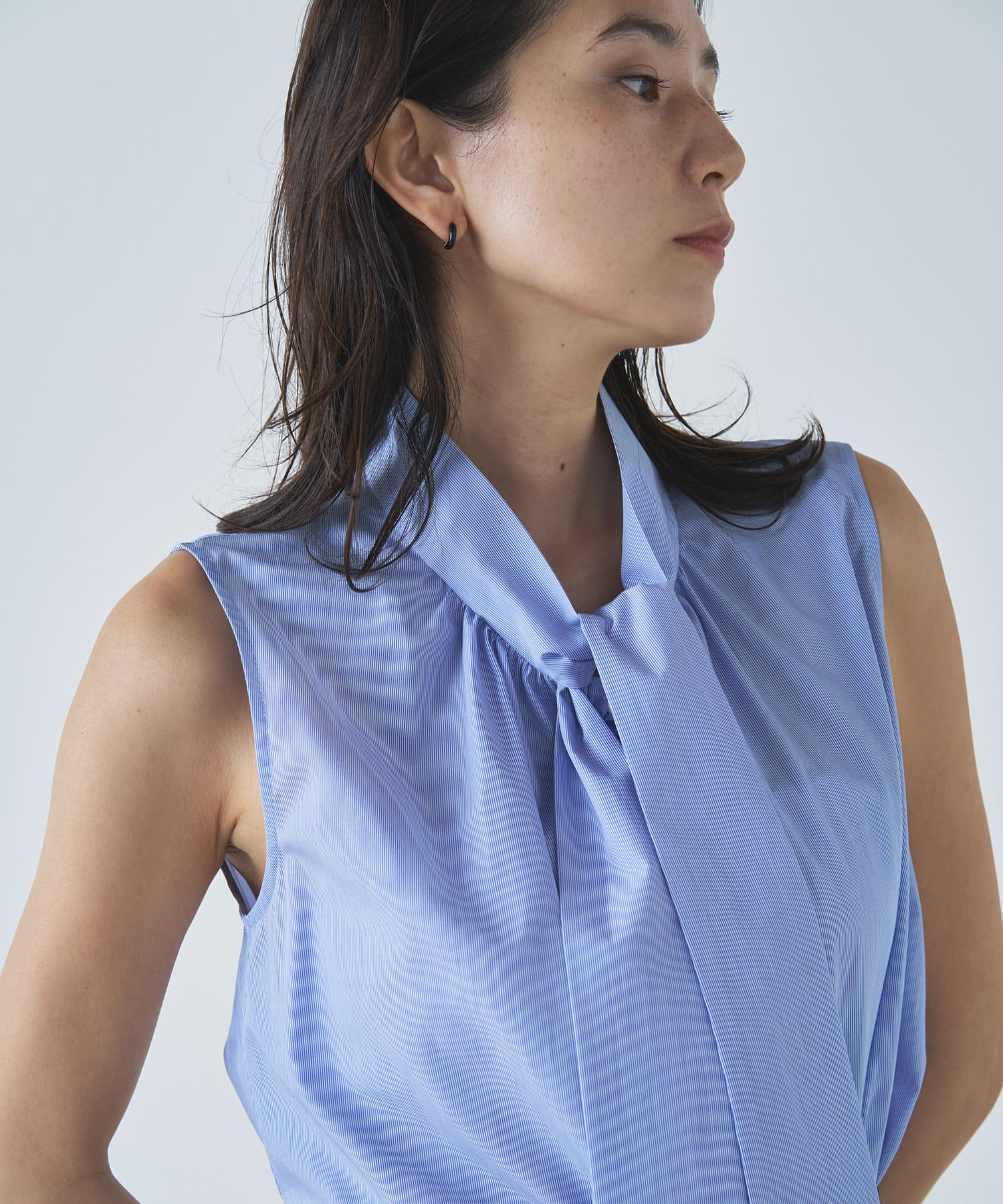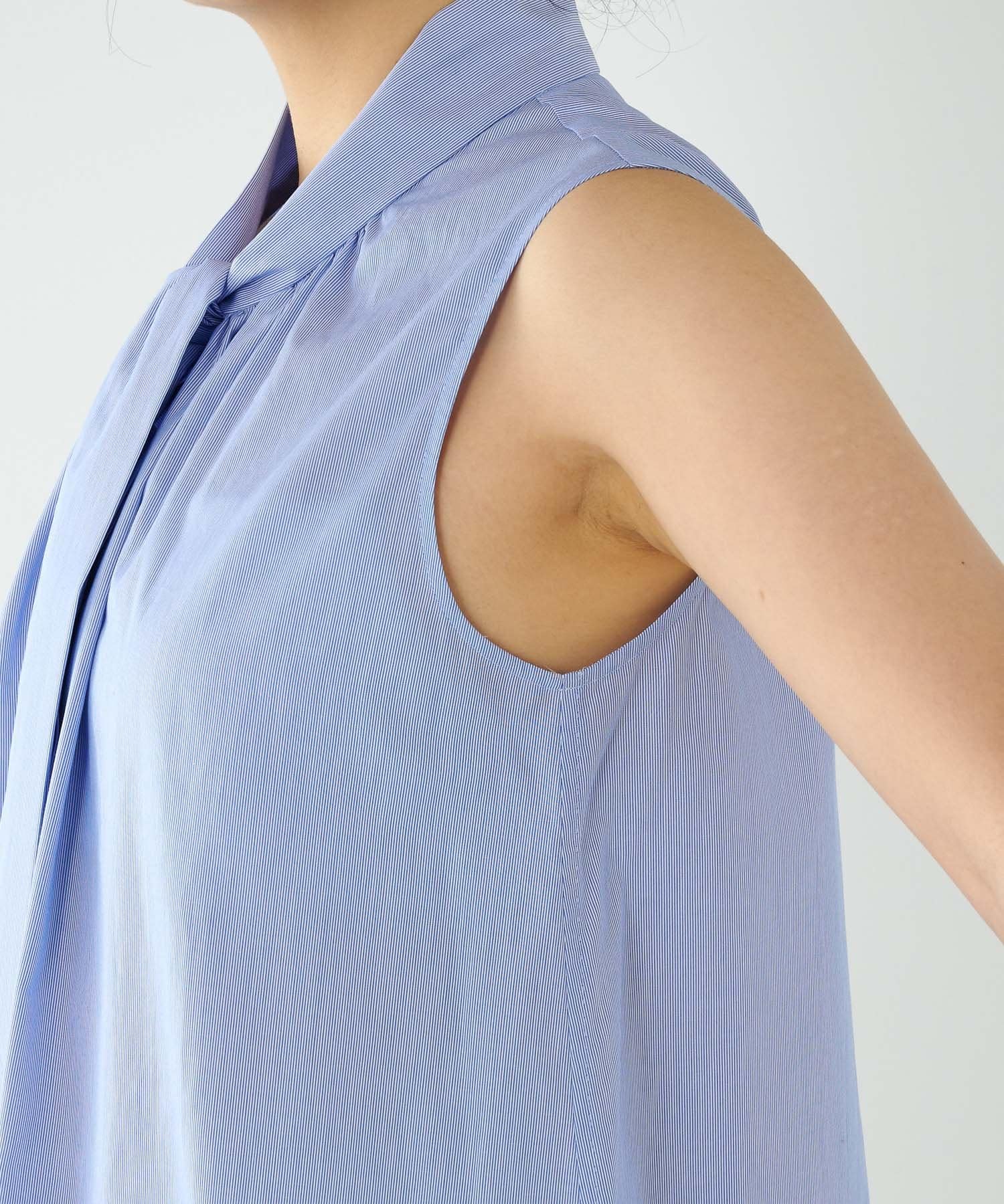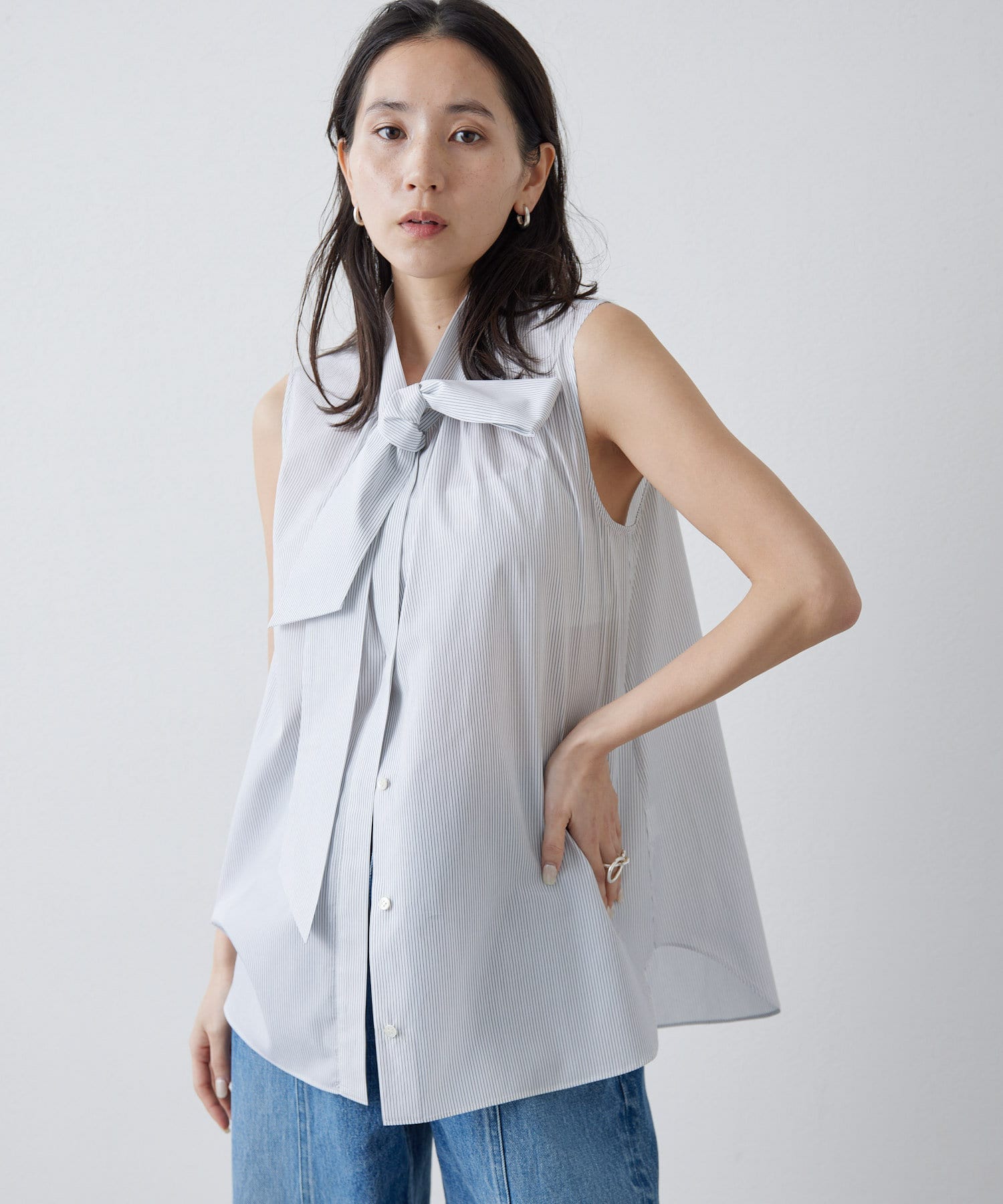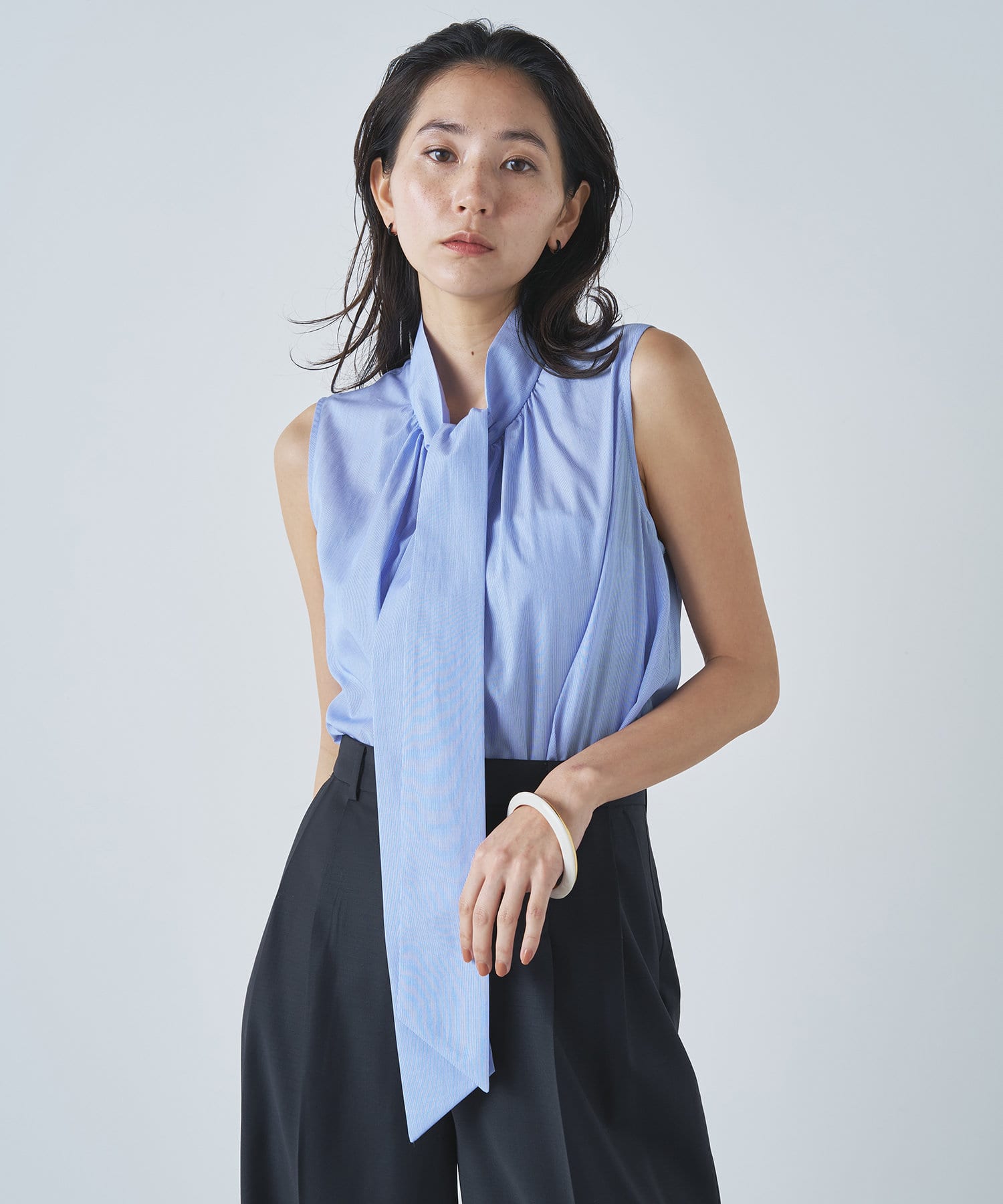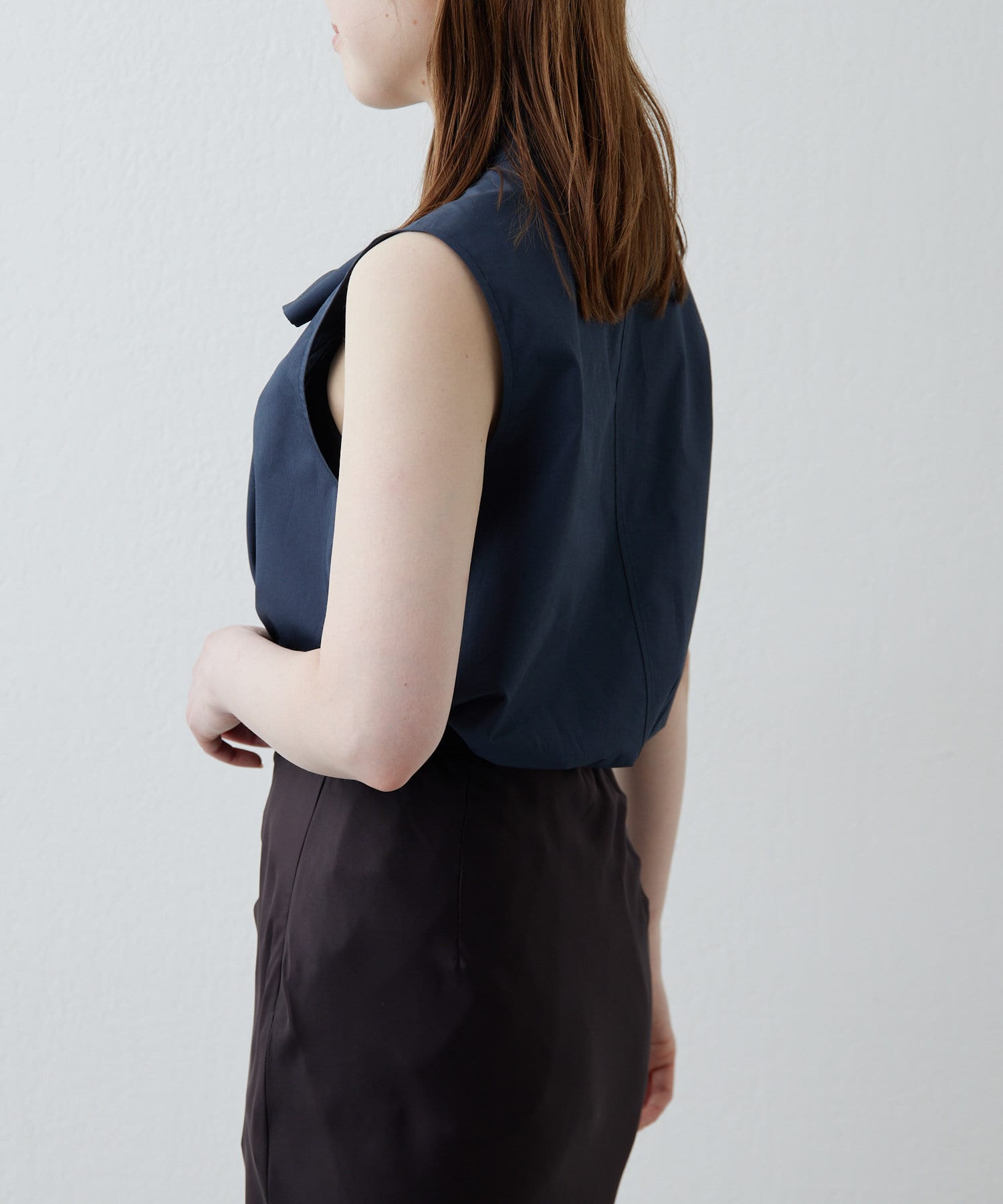 ■ボウタイデザインがポイントになったノースリーブブラウス。