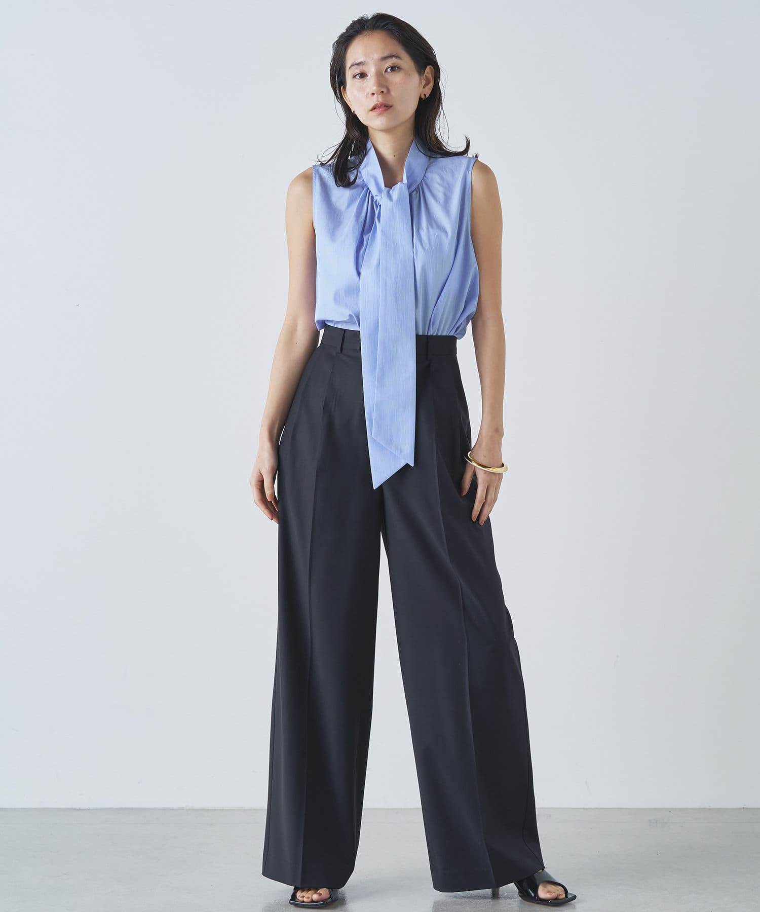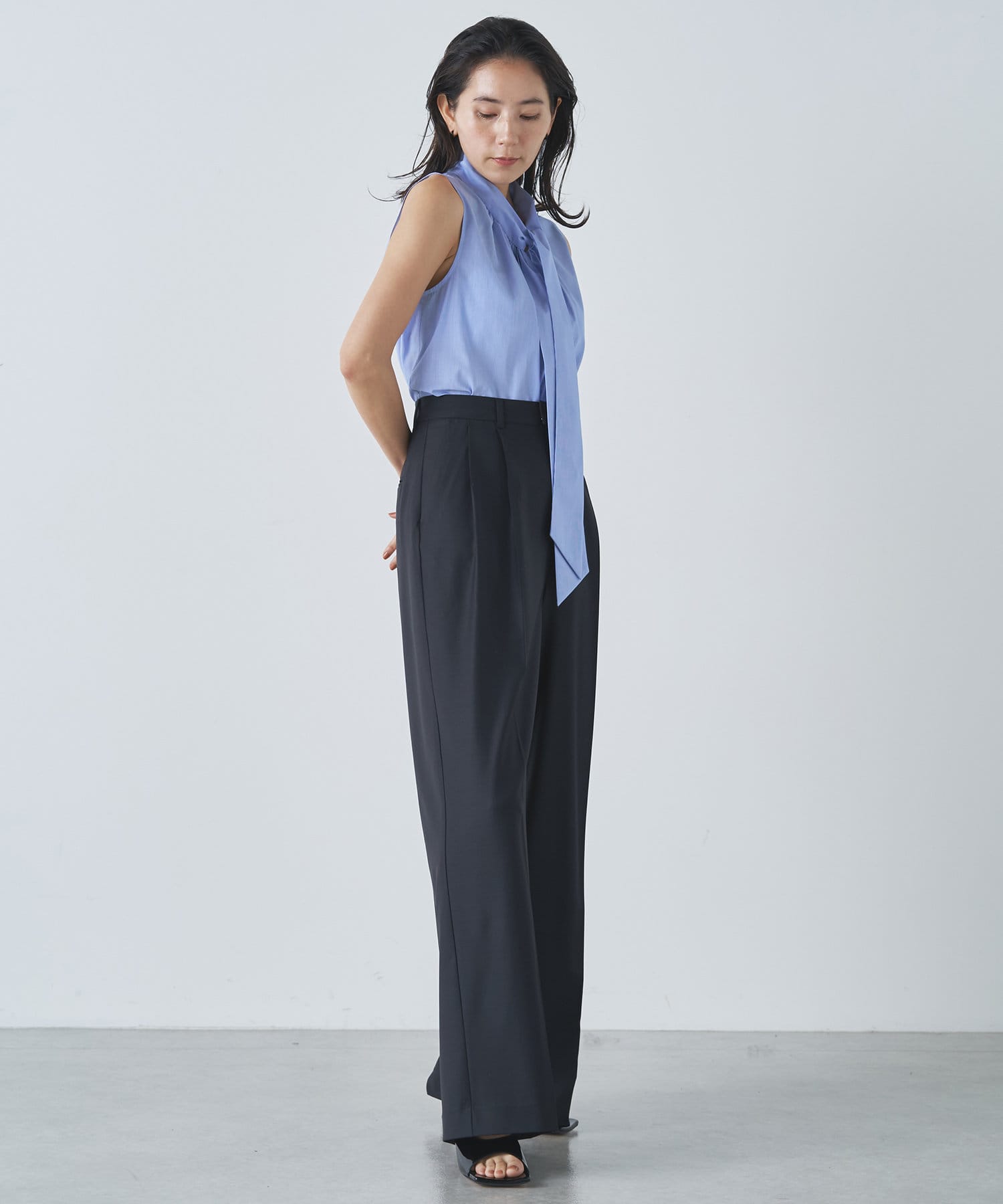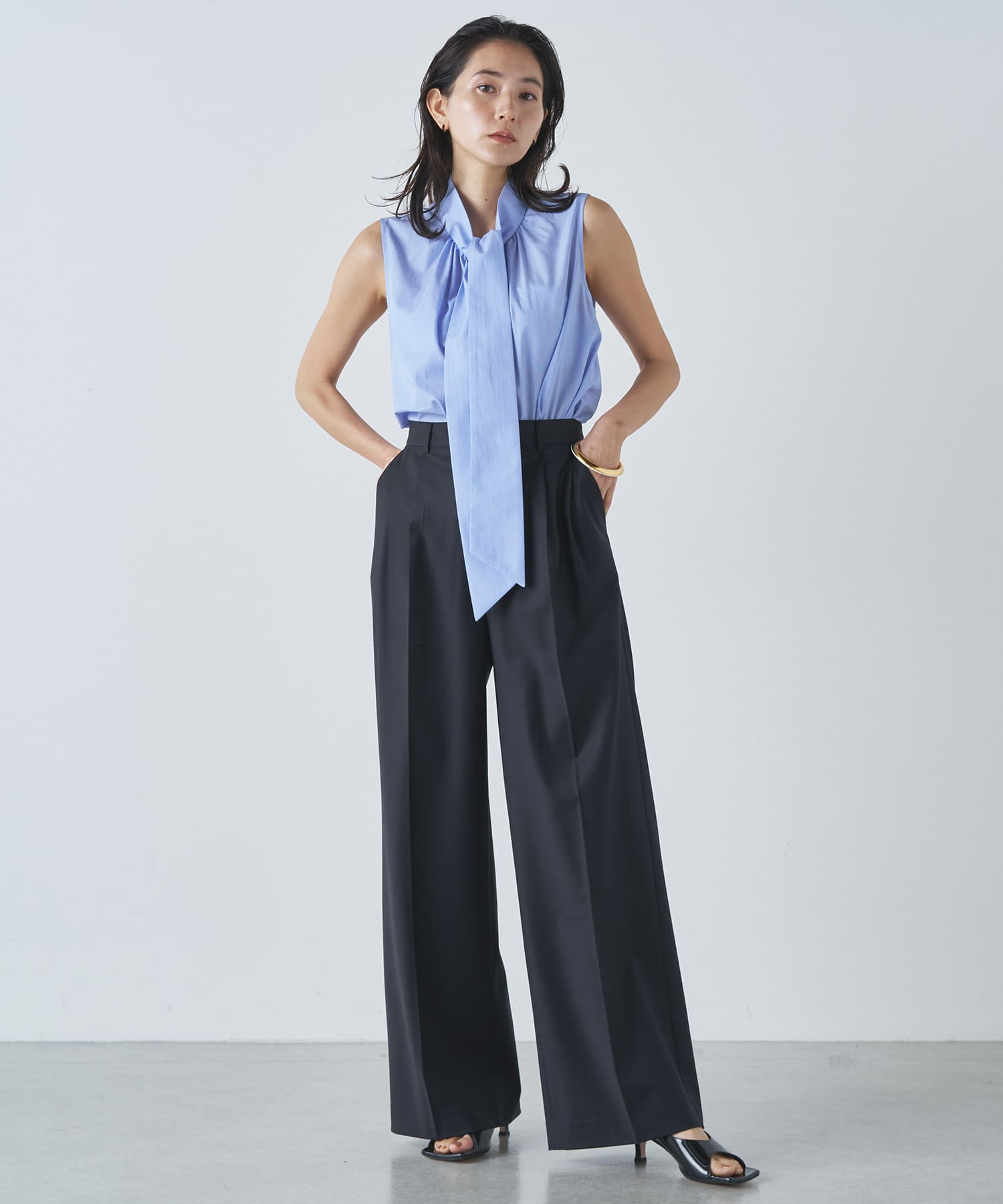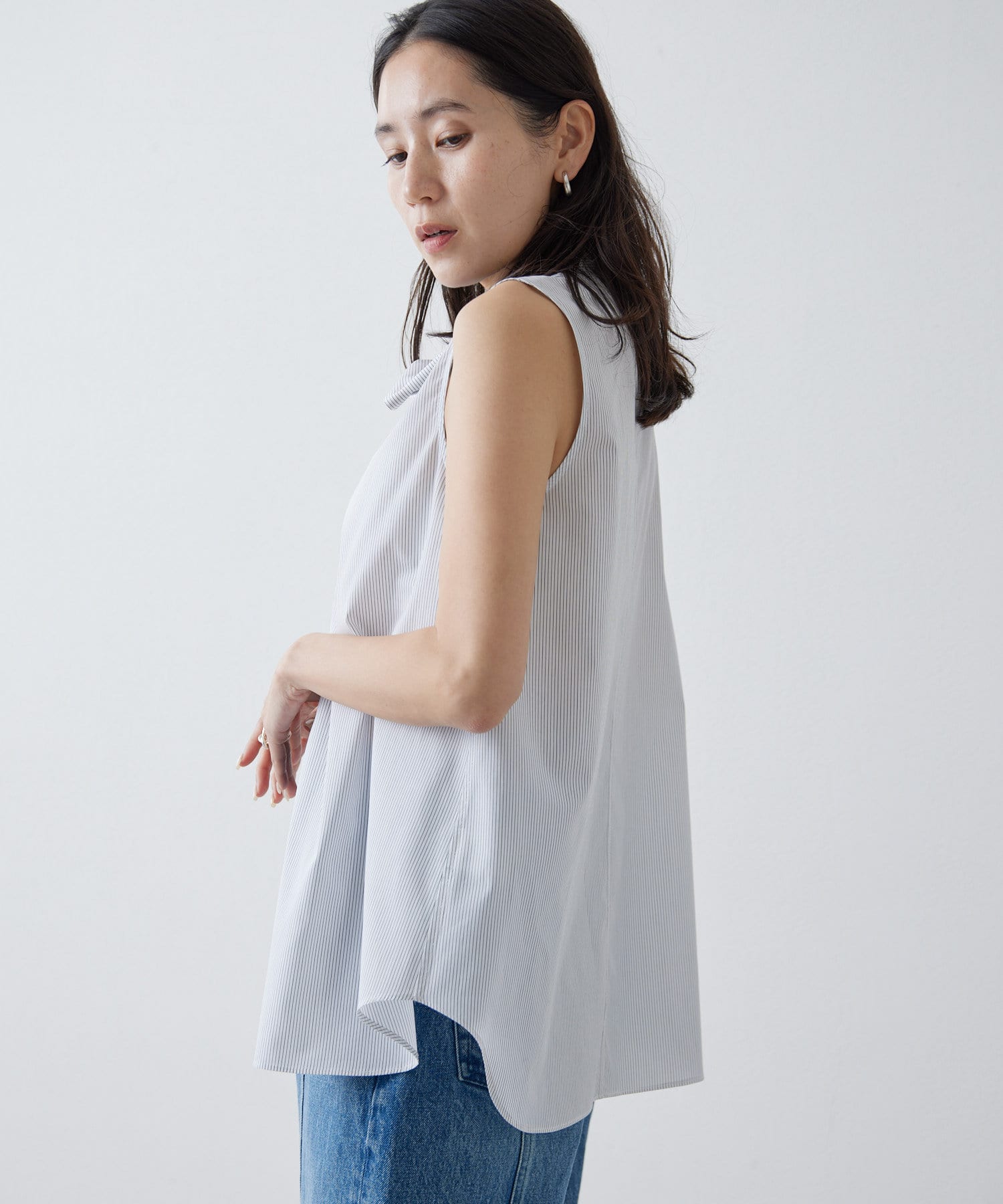 ■ボウタイデザインがポイントになったノースリーブブラウス。