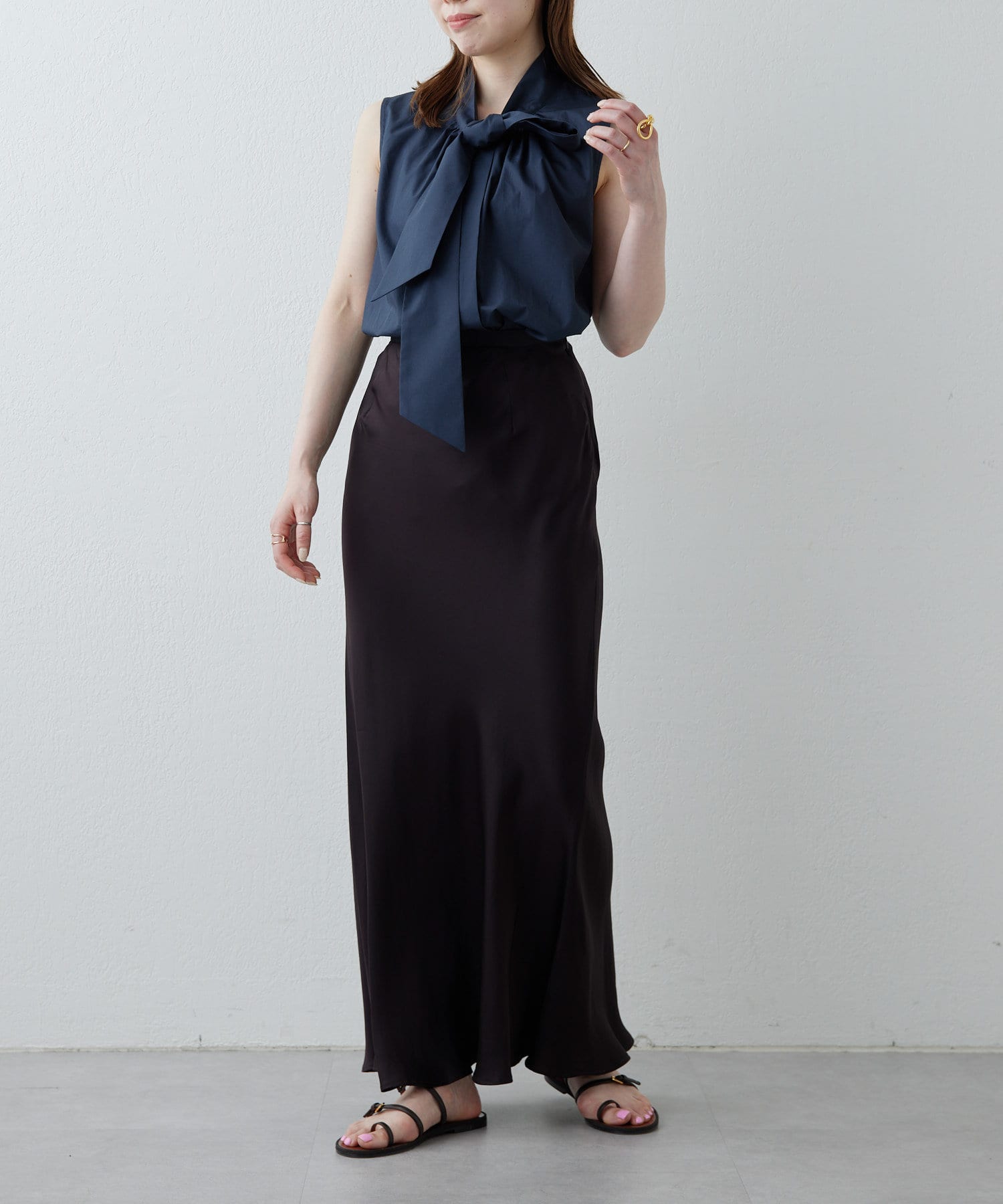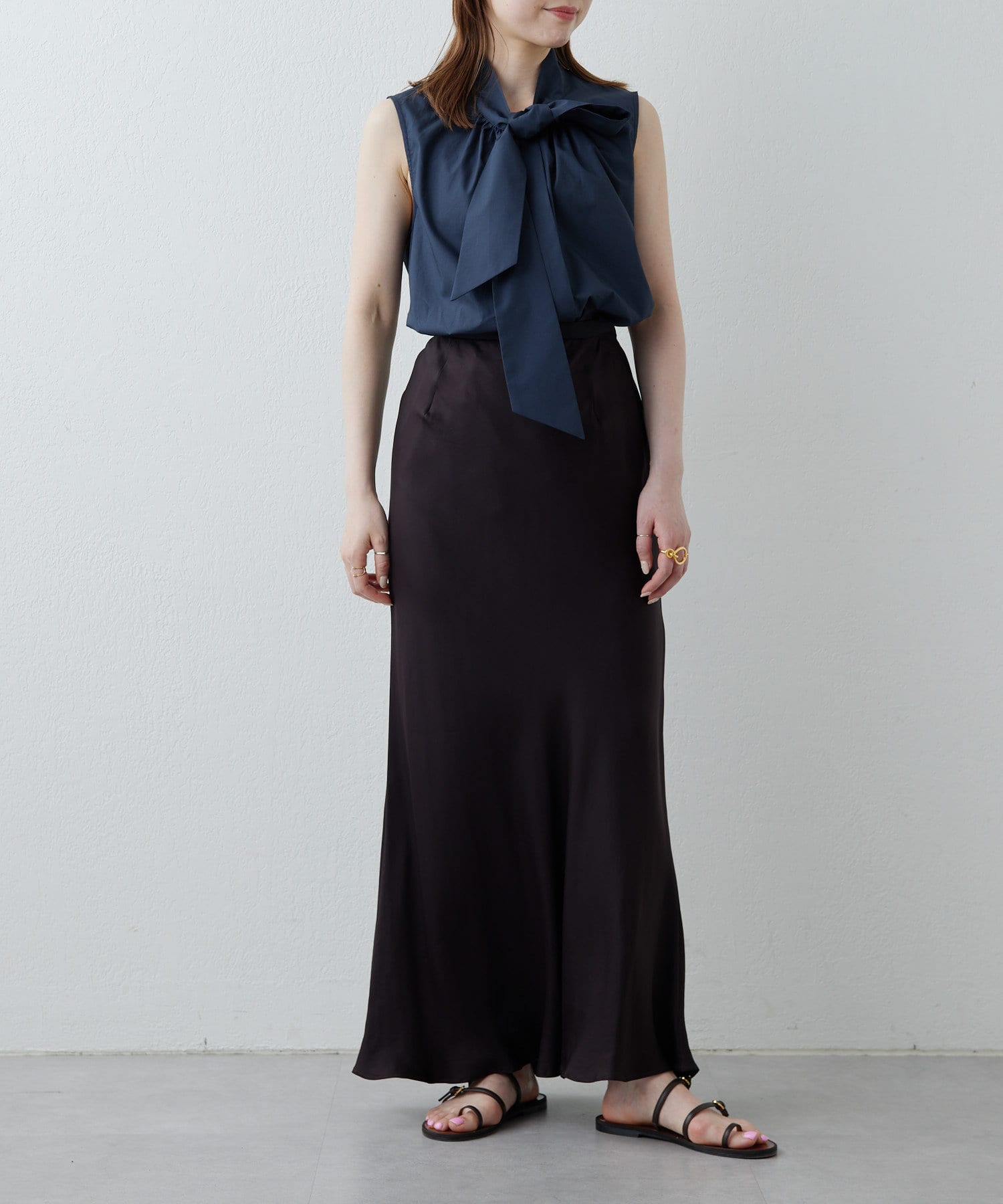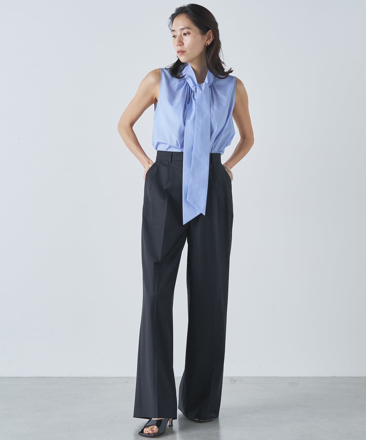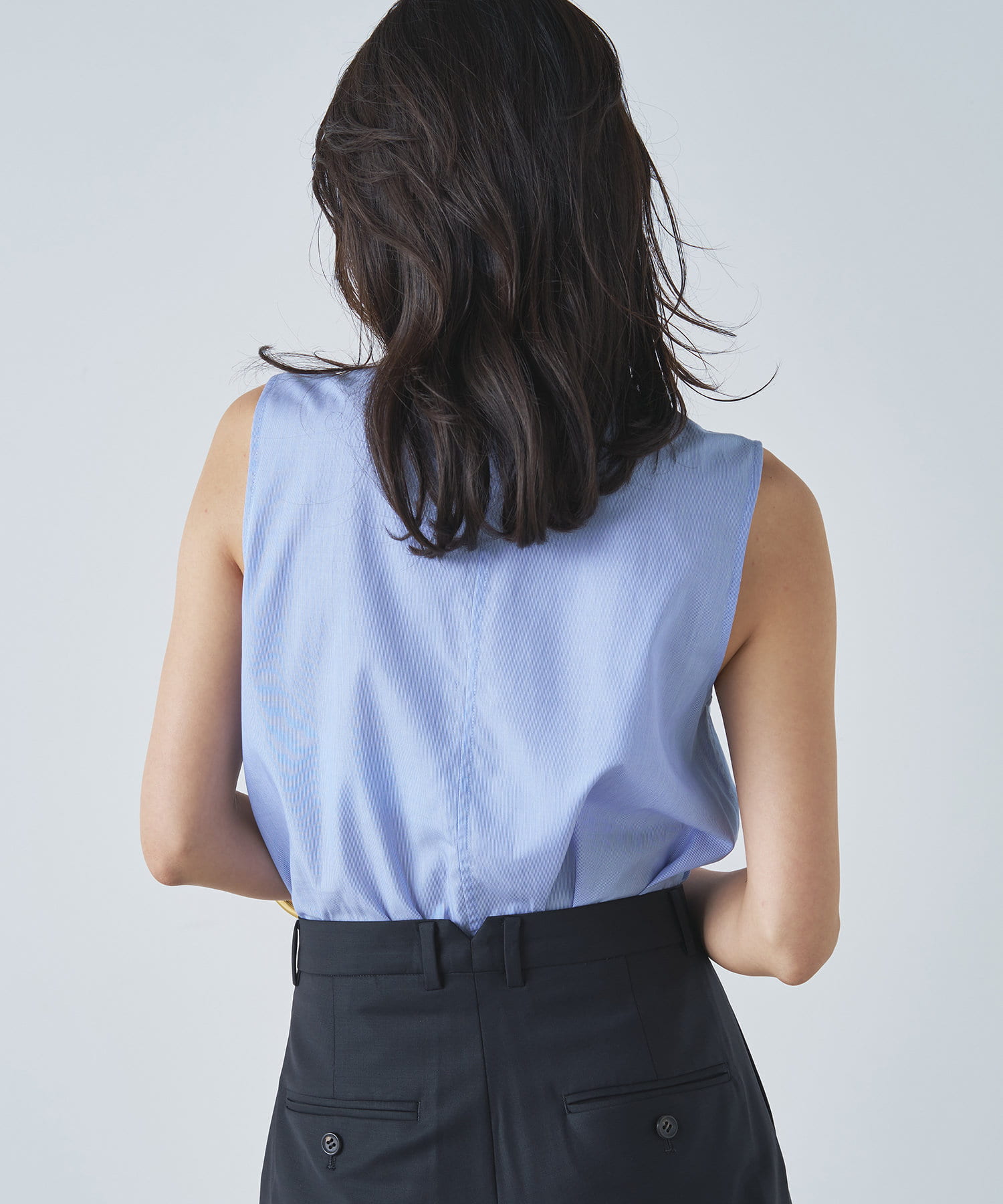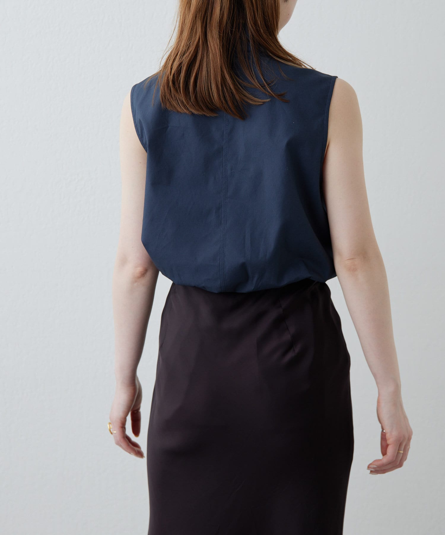 ■ボウタイデザインがポイントになったノースリーブブラウス。
