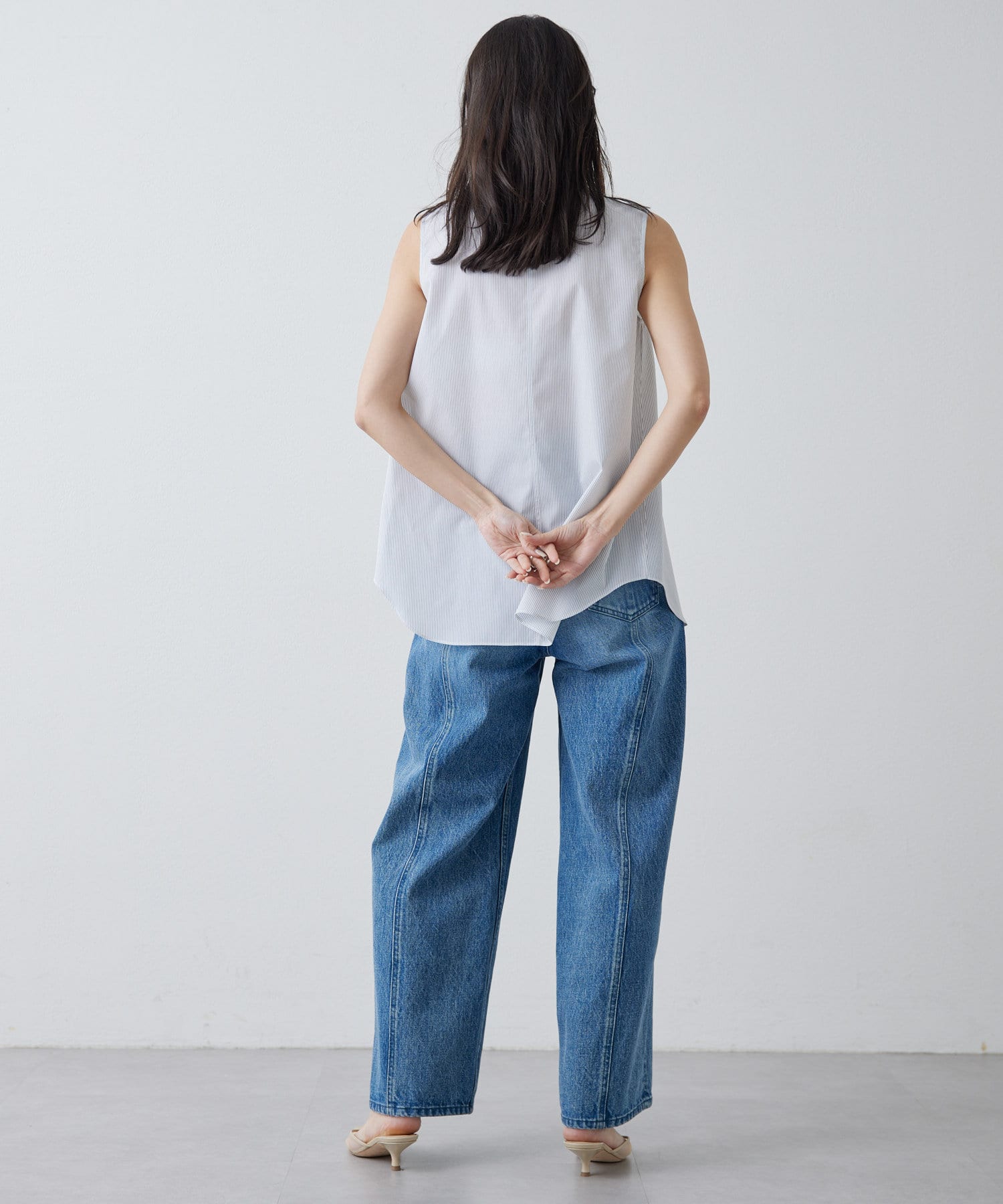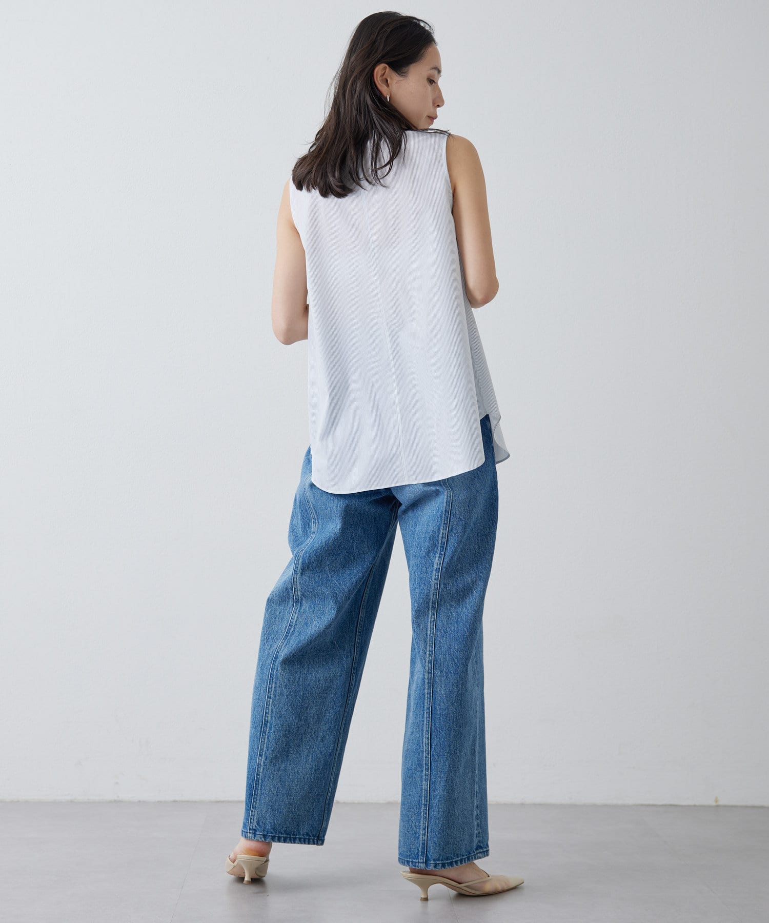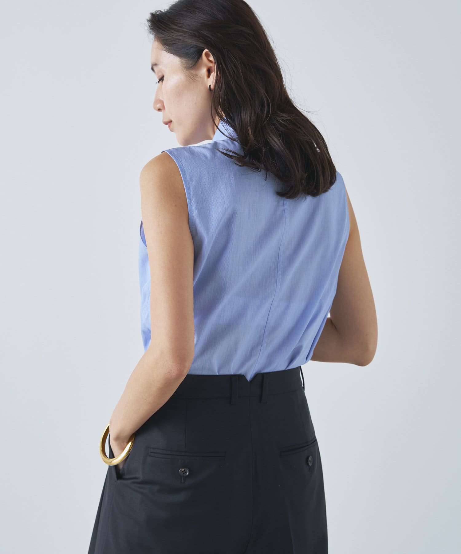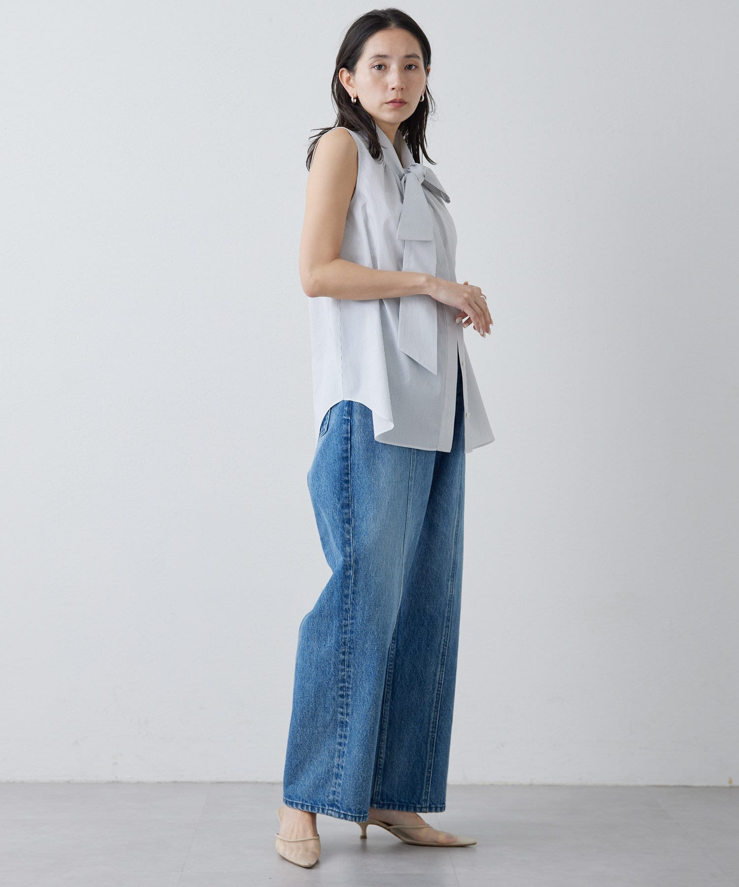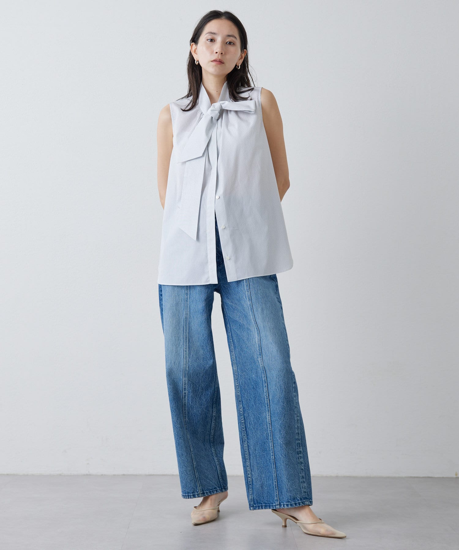 ■ボウタイデザインがポイントになったノースリーブブラウス。