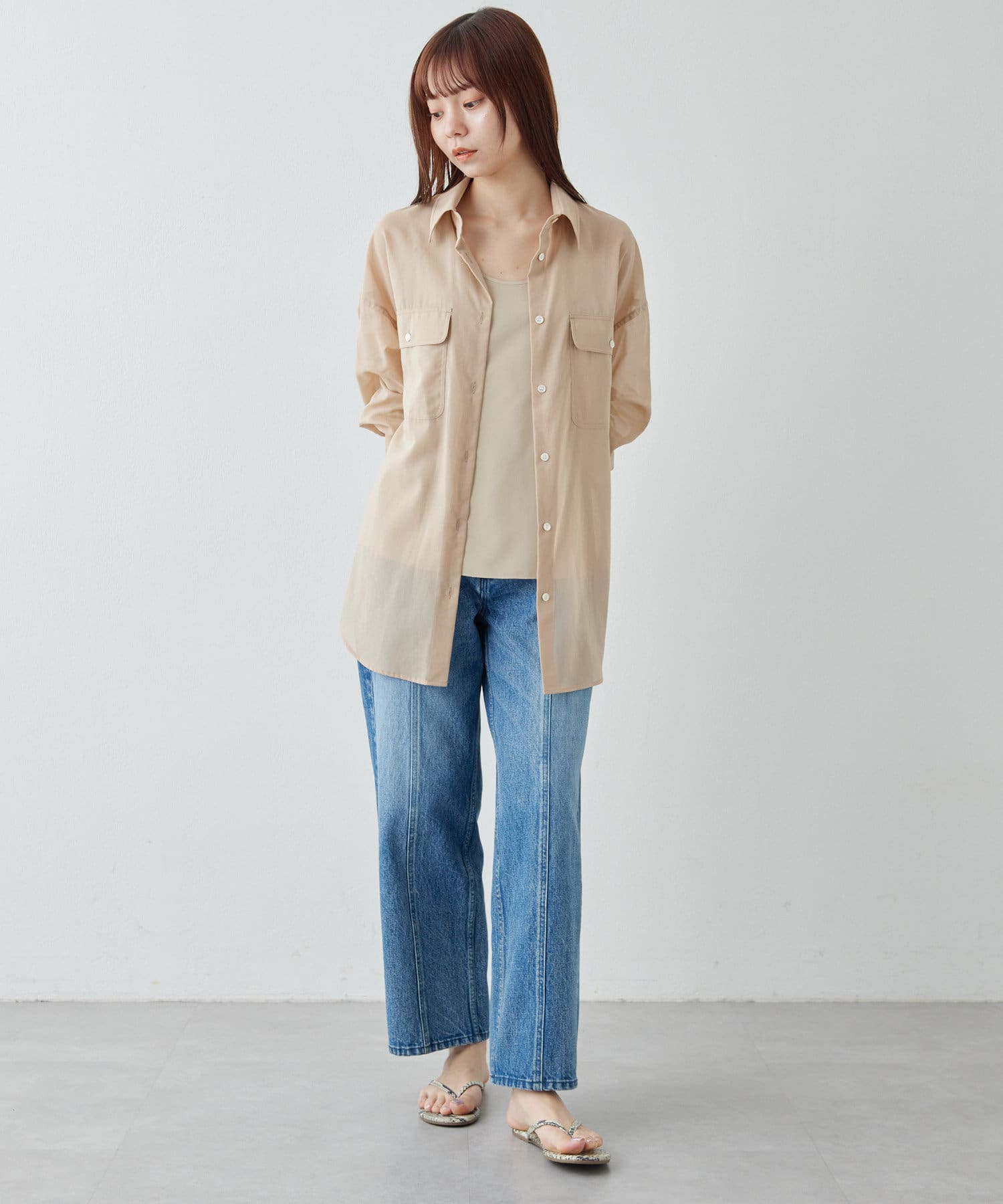 夏の羽織りとして重宝する、軽やかなコットンシアーシャツ