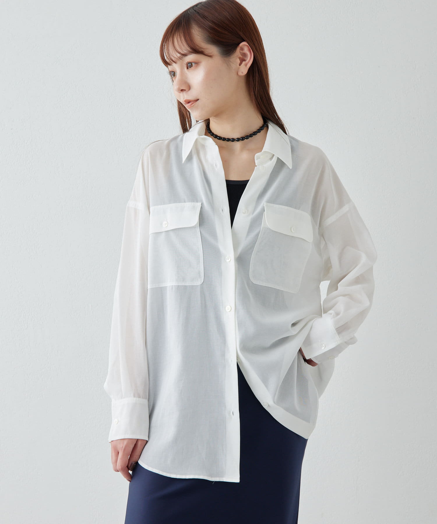 夏の羽織りとして重宝する、軽やかなコットンシアーシャツ