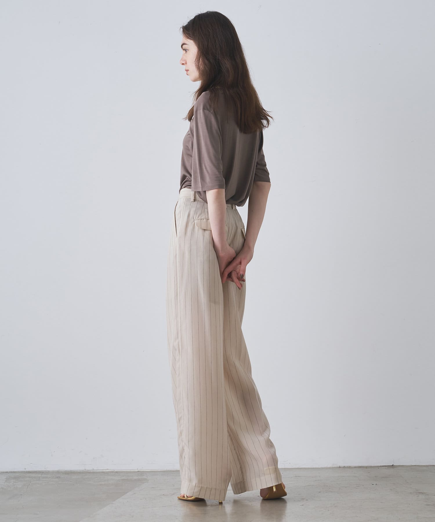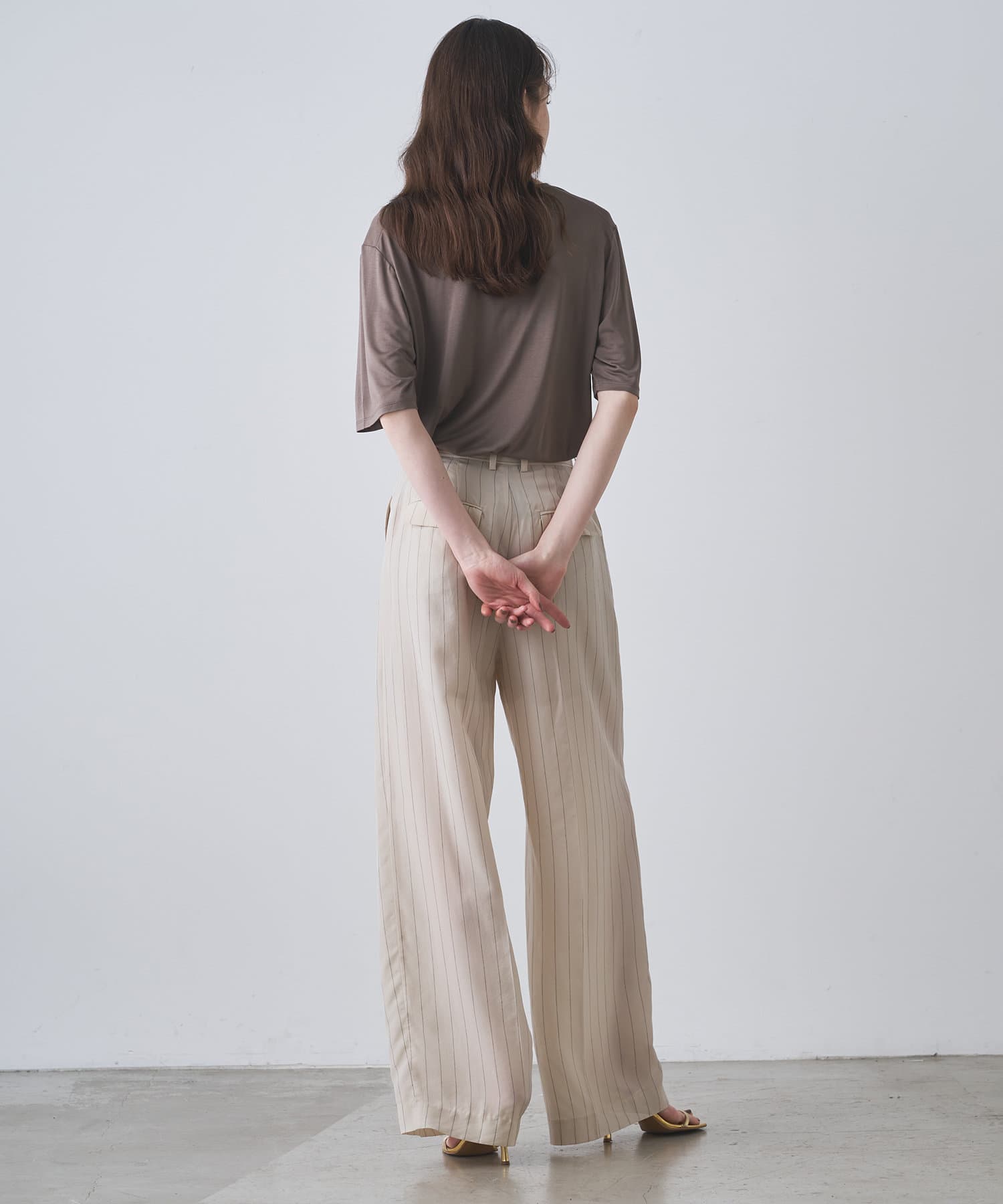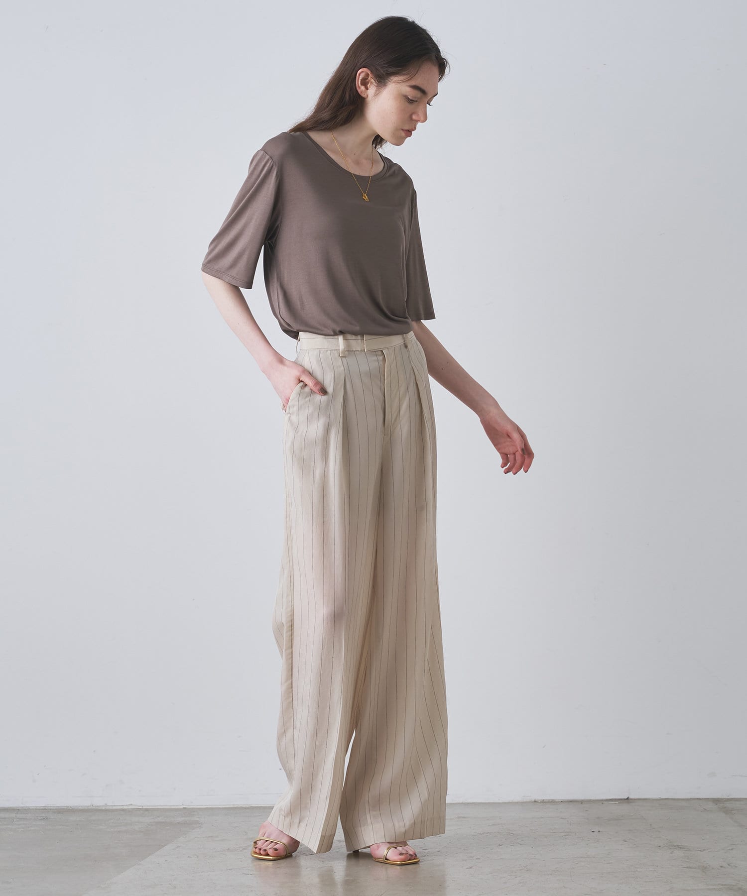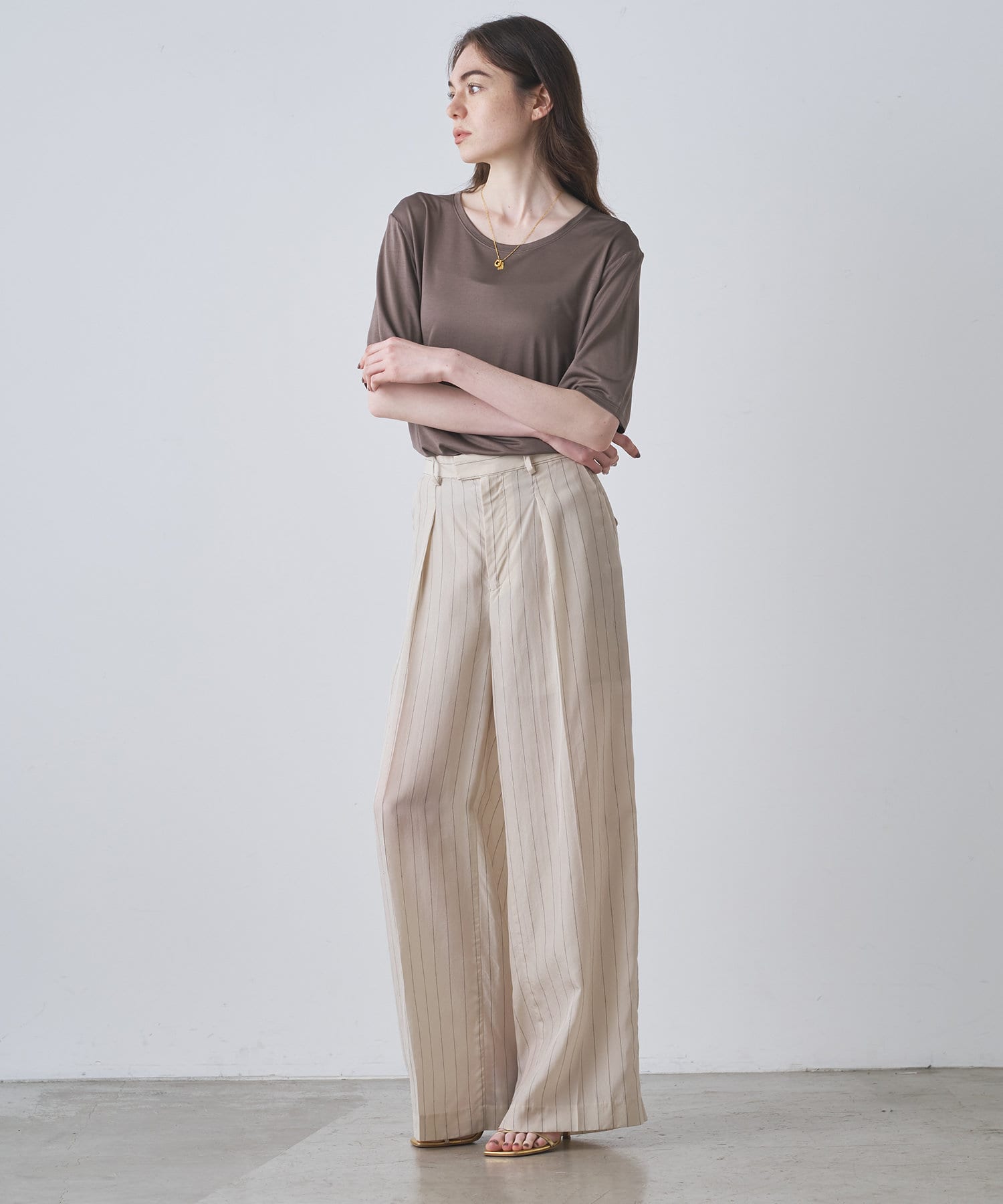 ■程よい開きのラウンドネックとワイドシルエットがリラクシーな一着。
