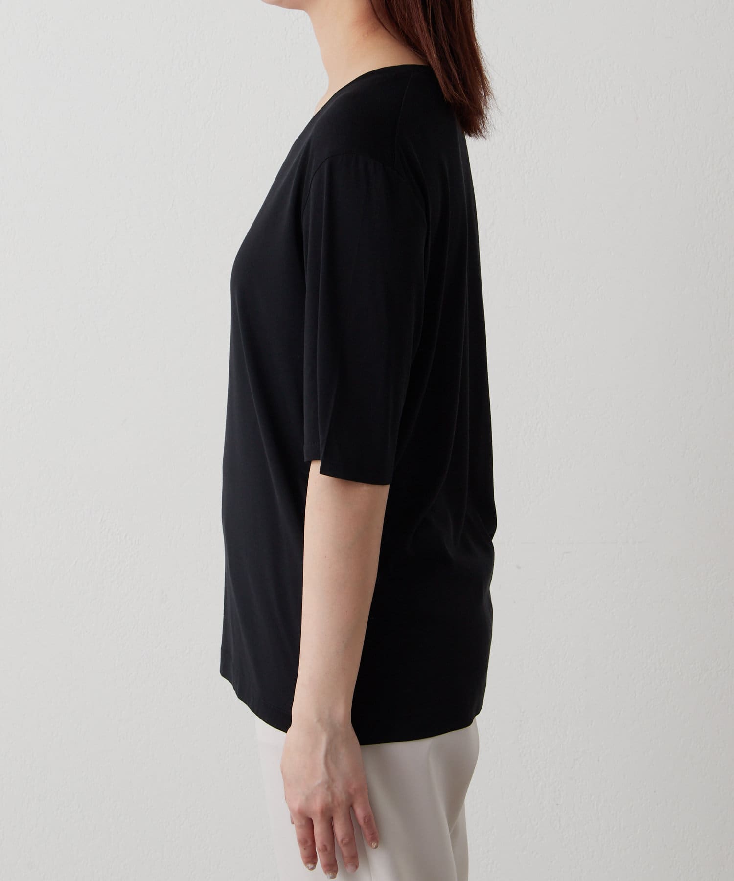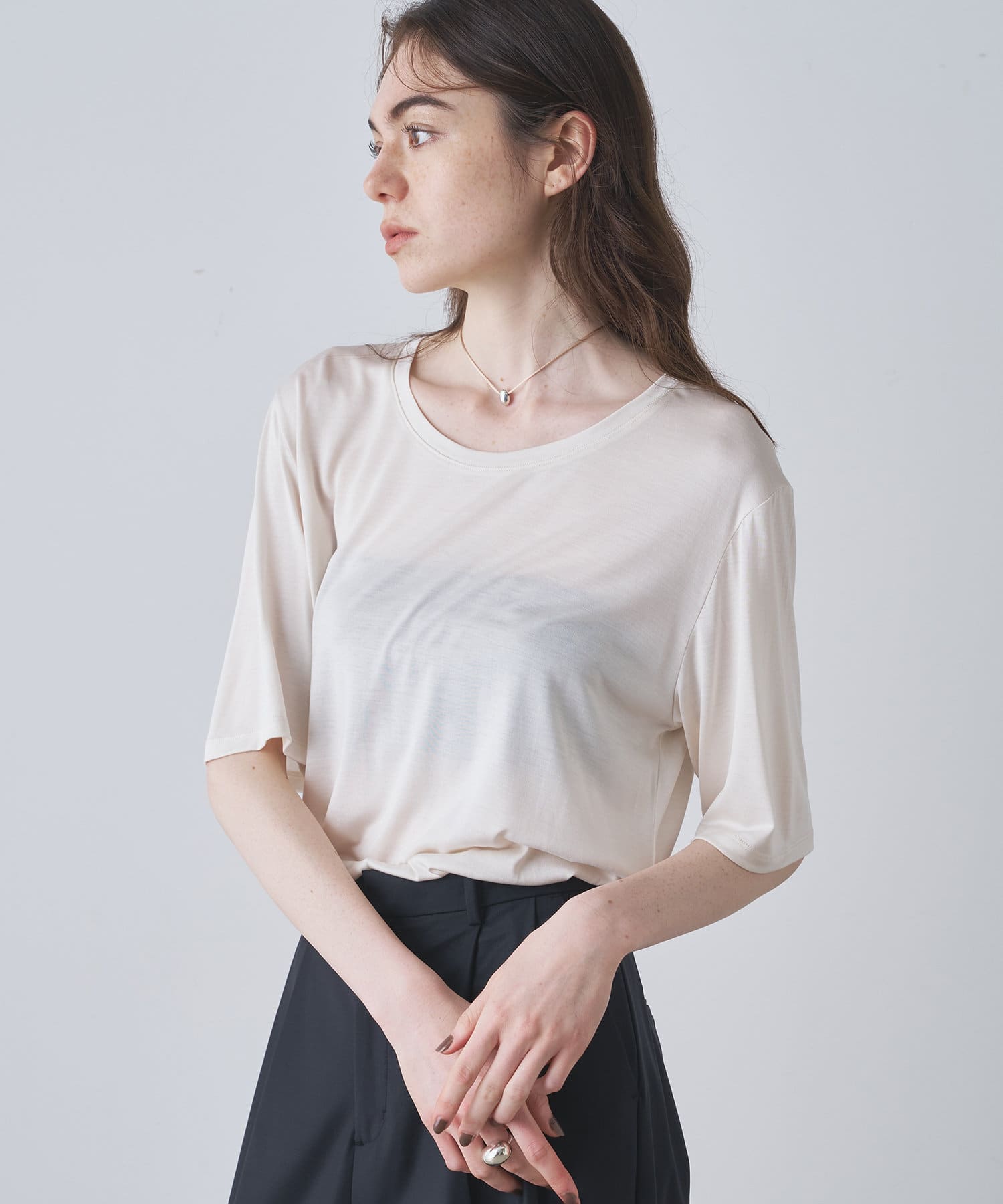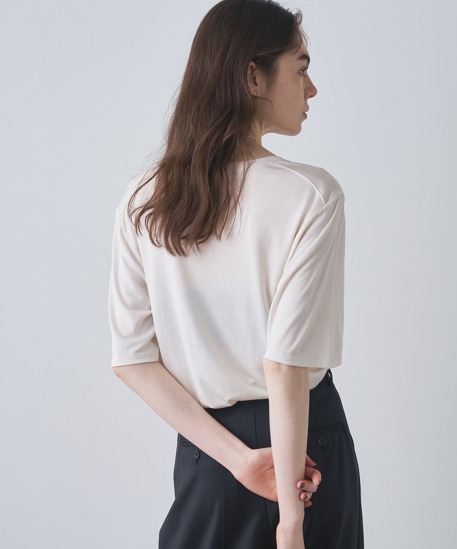 洗えるシルク素材が嬉しい、上品ハーフスリーブTEE