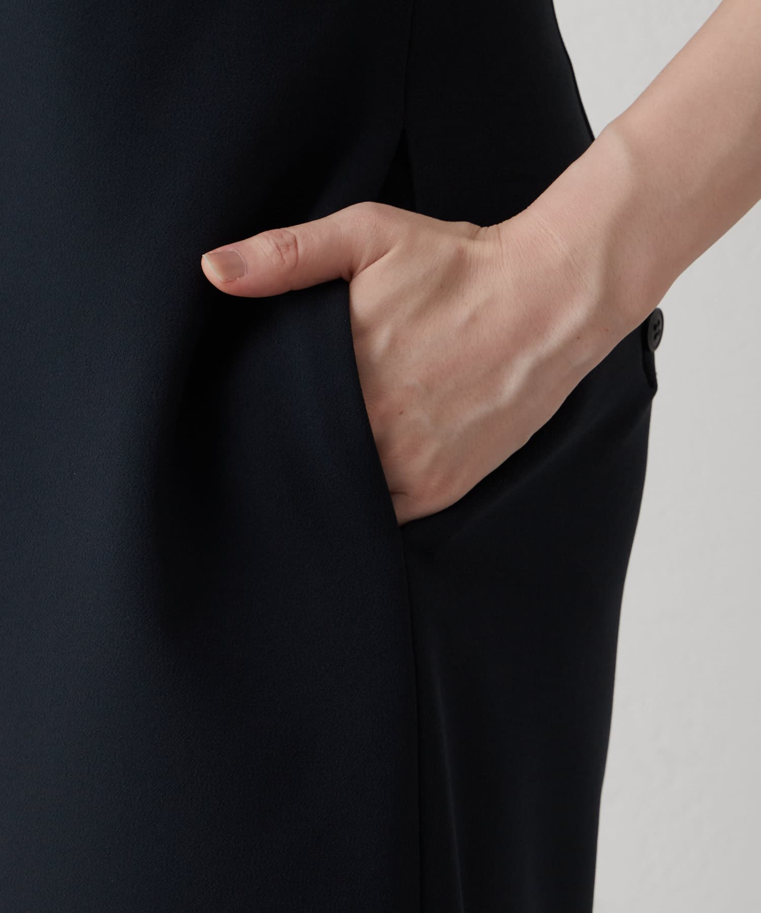 ■程よいハリ感のある生地がボディラインを拾わず、スタイルアップを叶えてくれる一枚。