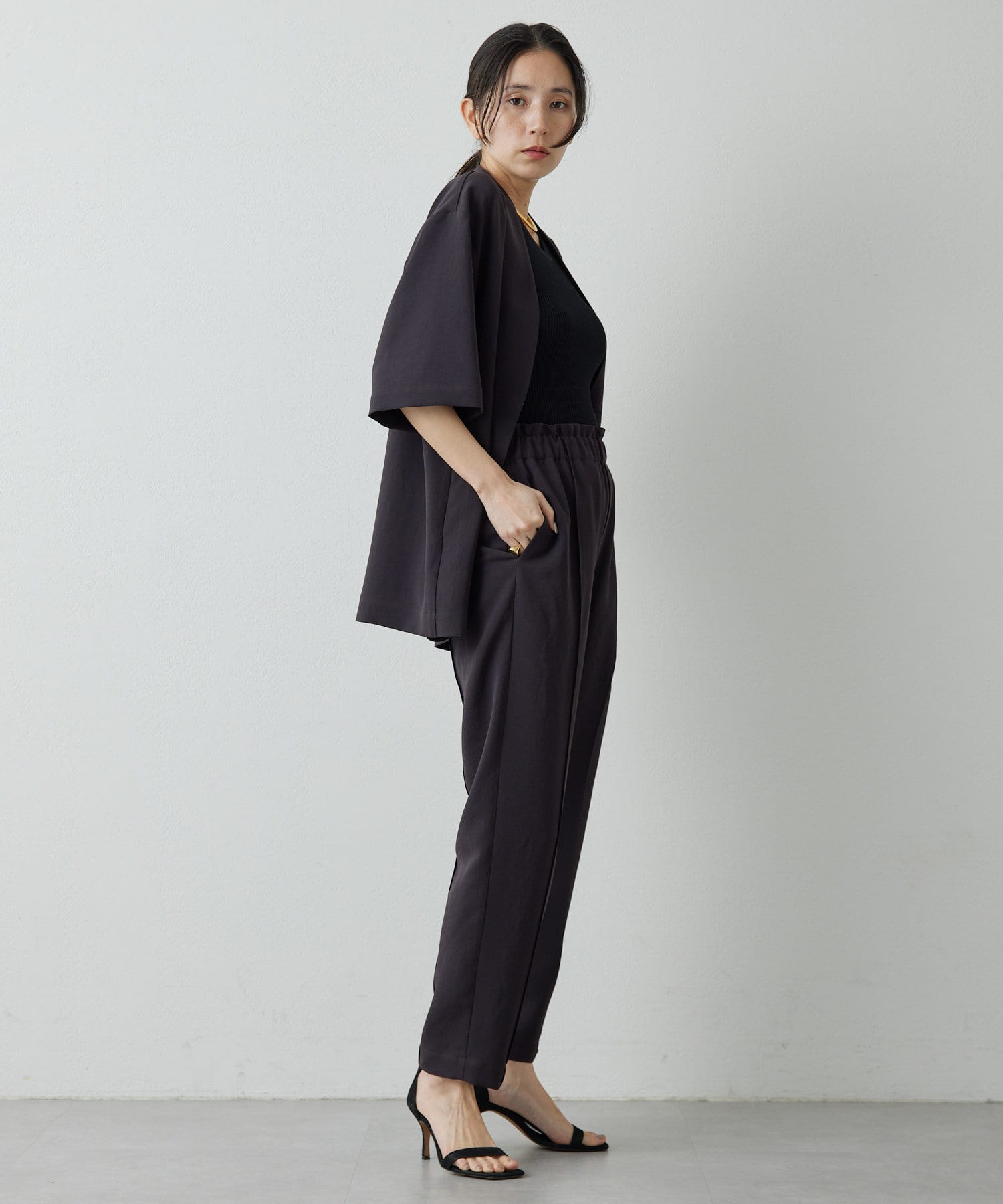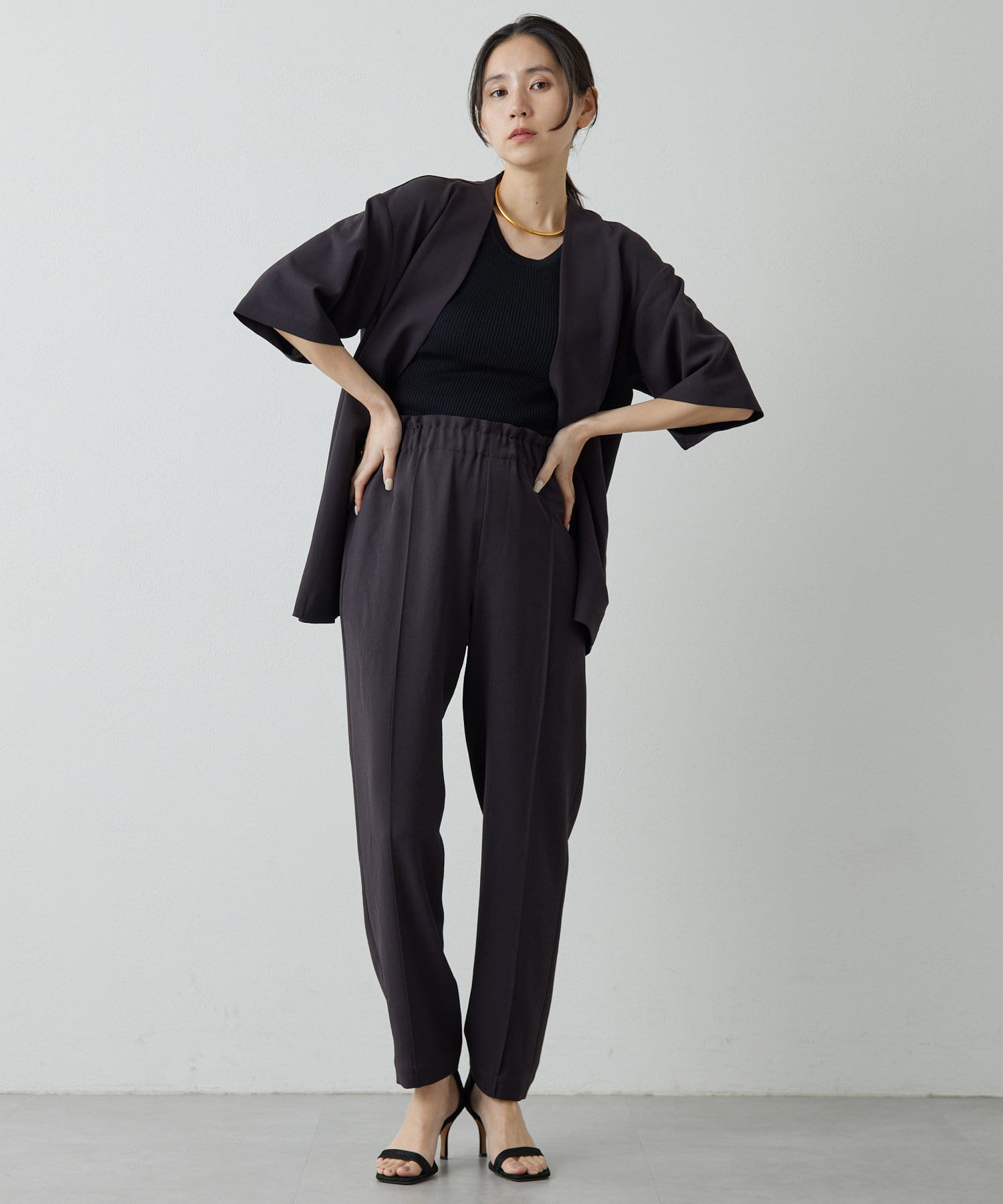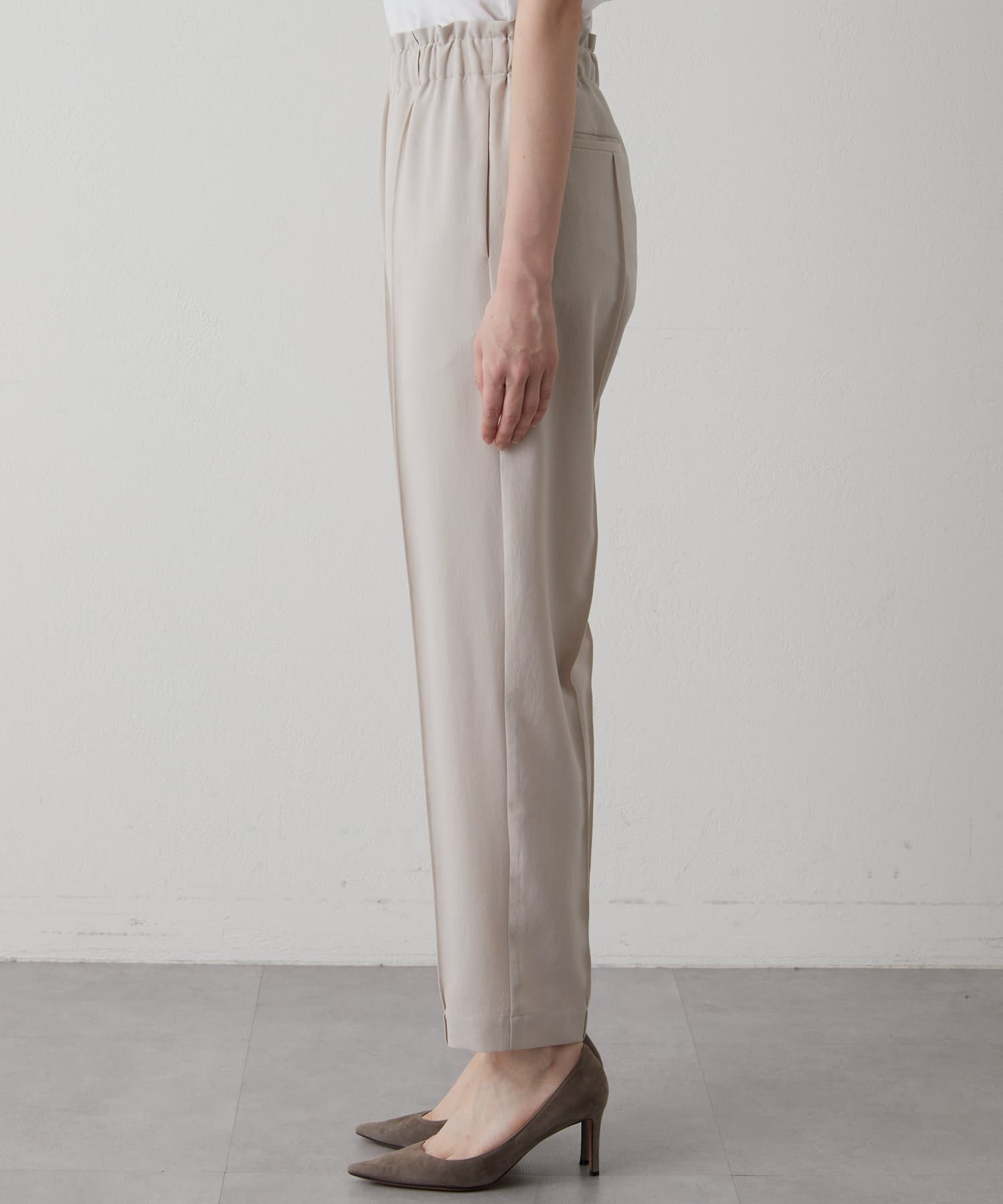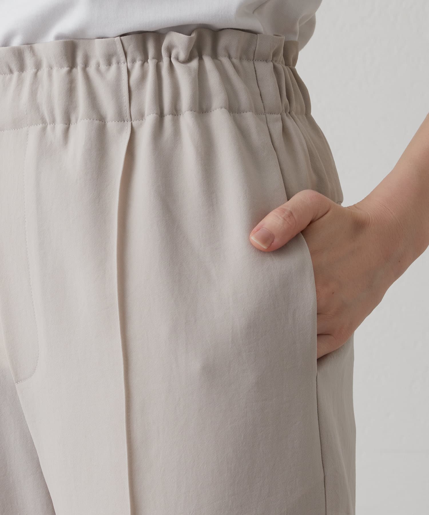 夏の定番素材で仕上げた、きれいめイージーパンツ