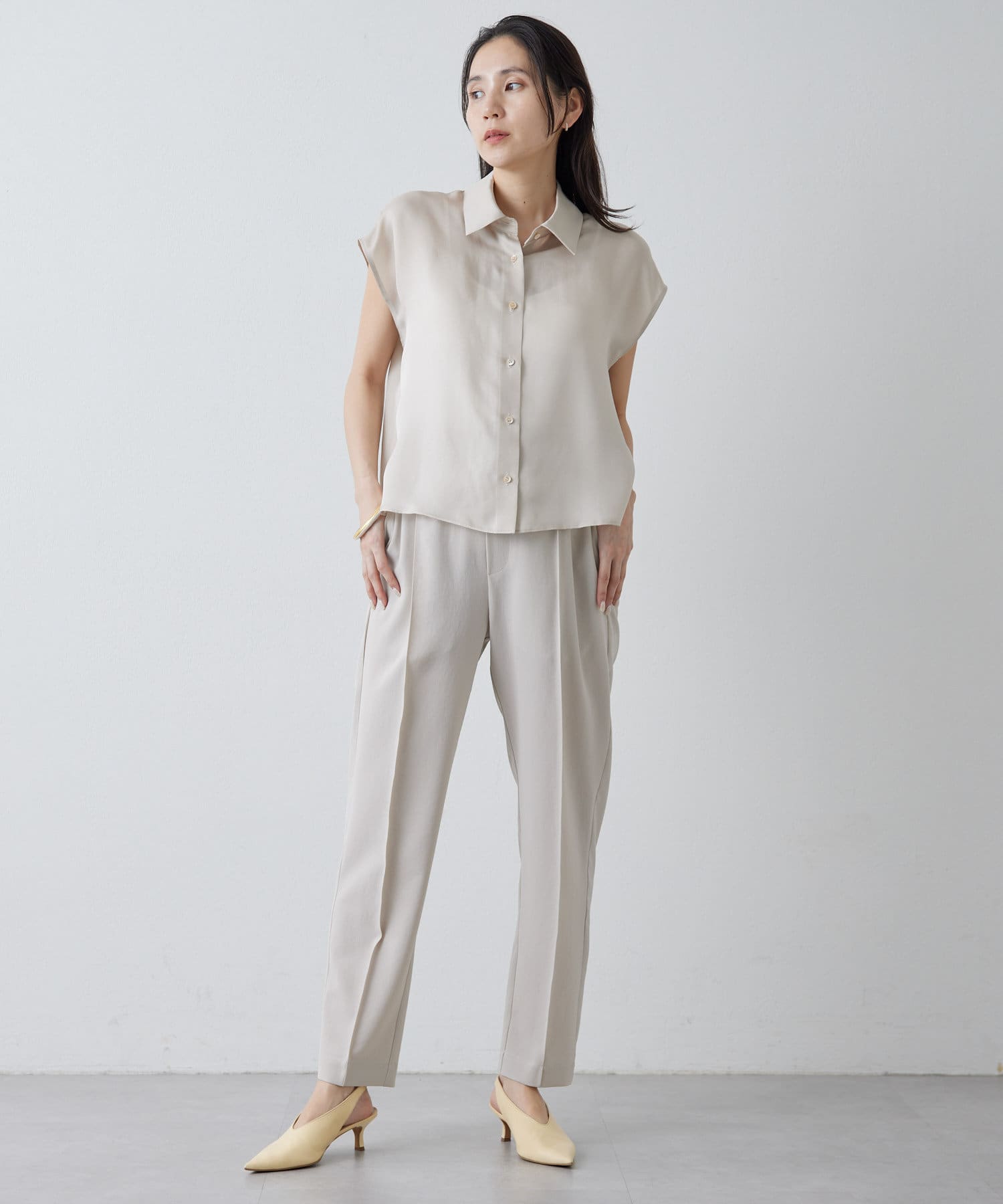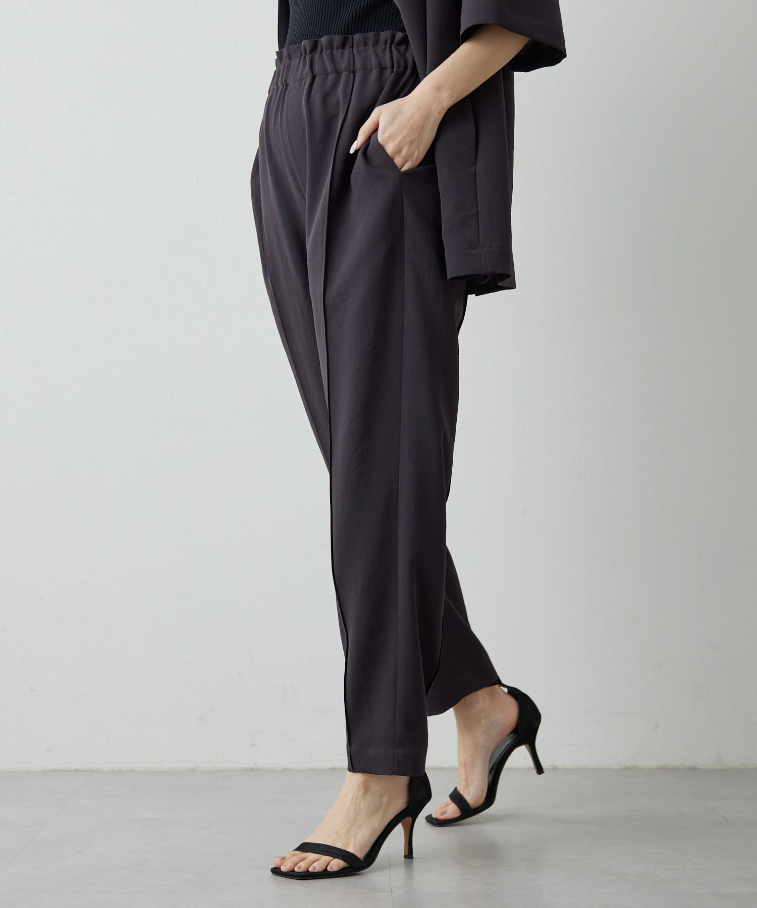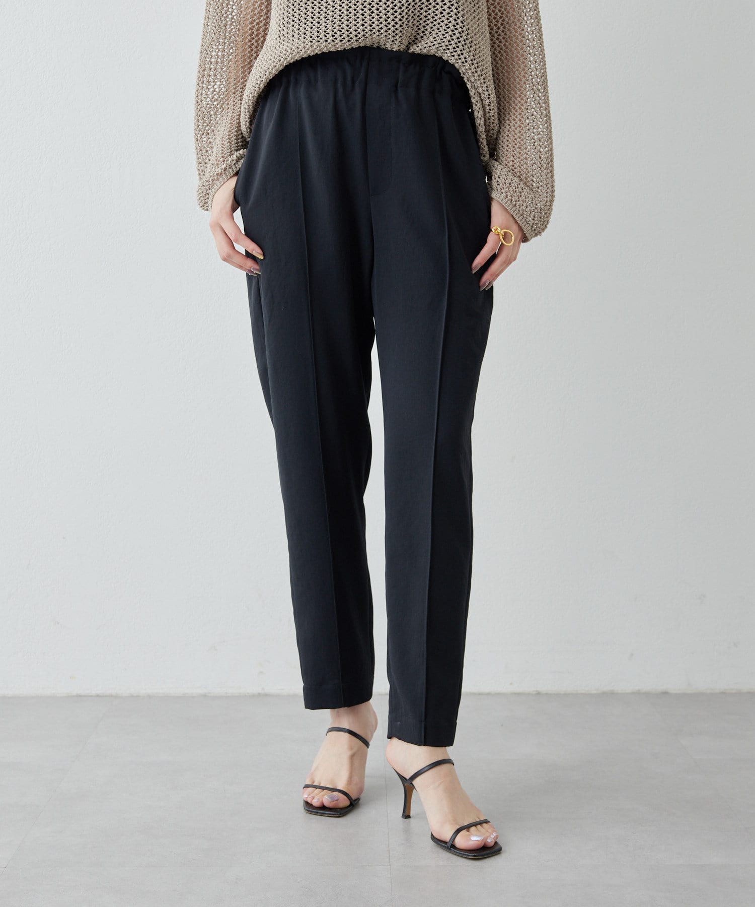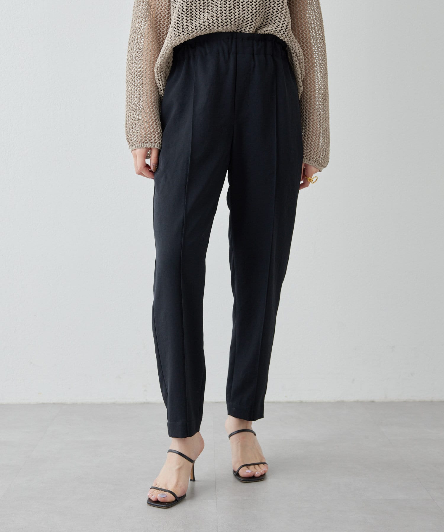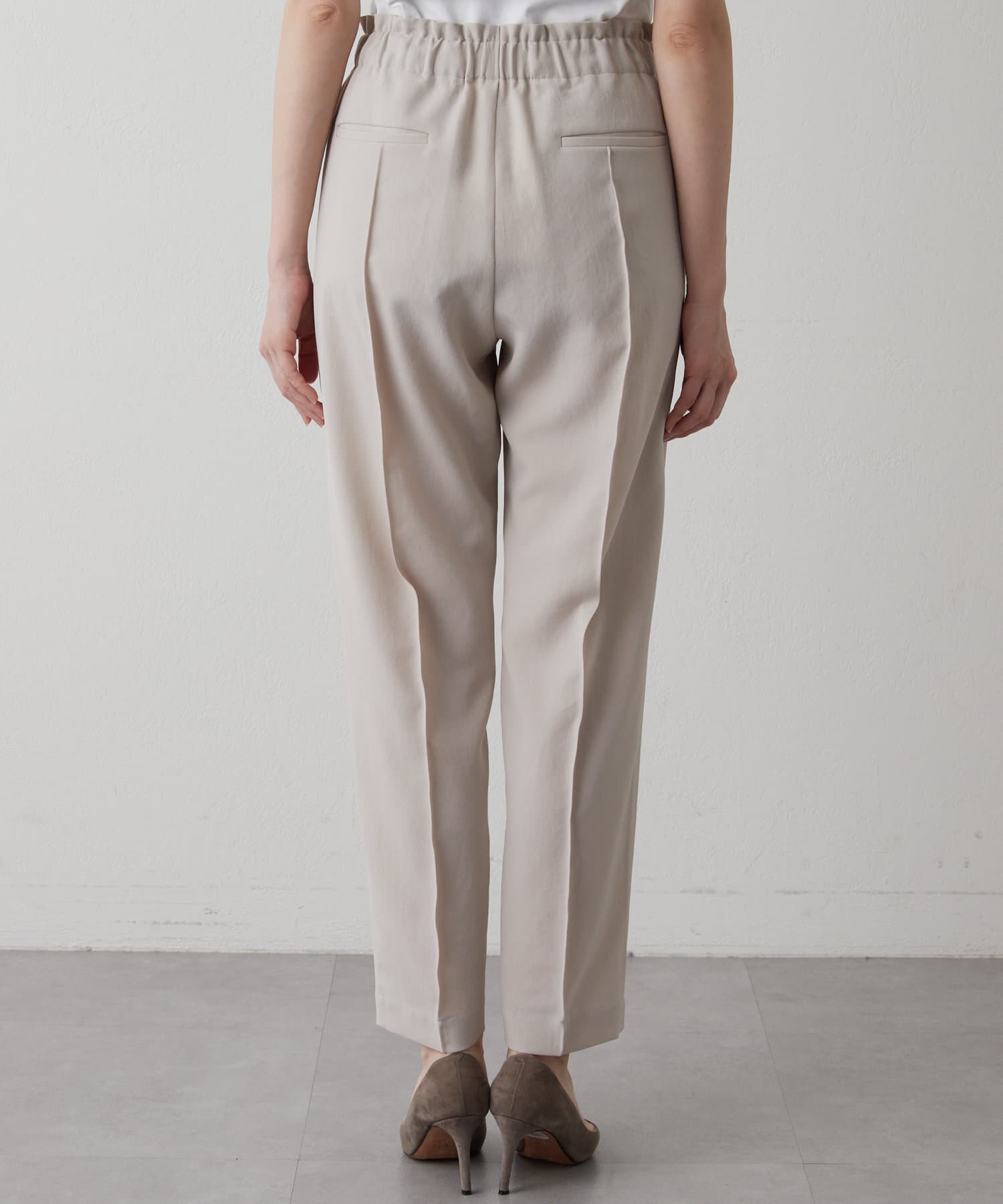 涼しく、さらっとしていて乾きやすい。梅雨や真夏におすすめです!テーパードのデザインなので、ヒールのないシューズでもバランスがとれます◎。ストレスなく履ける細見えパンツです!