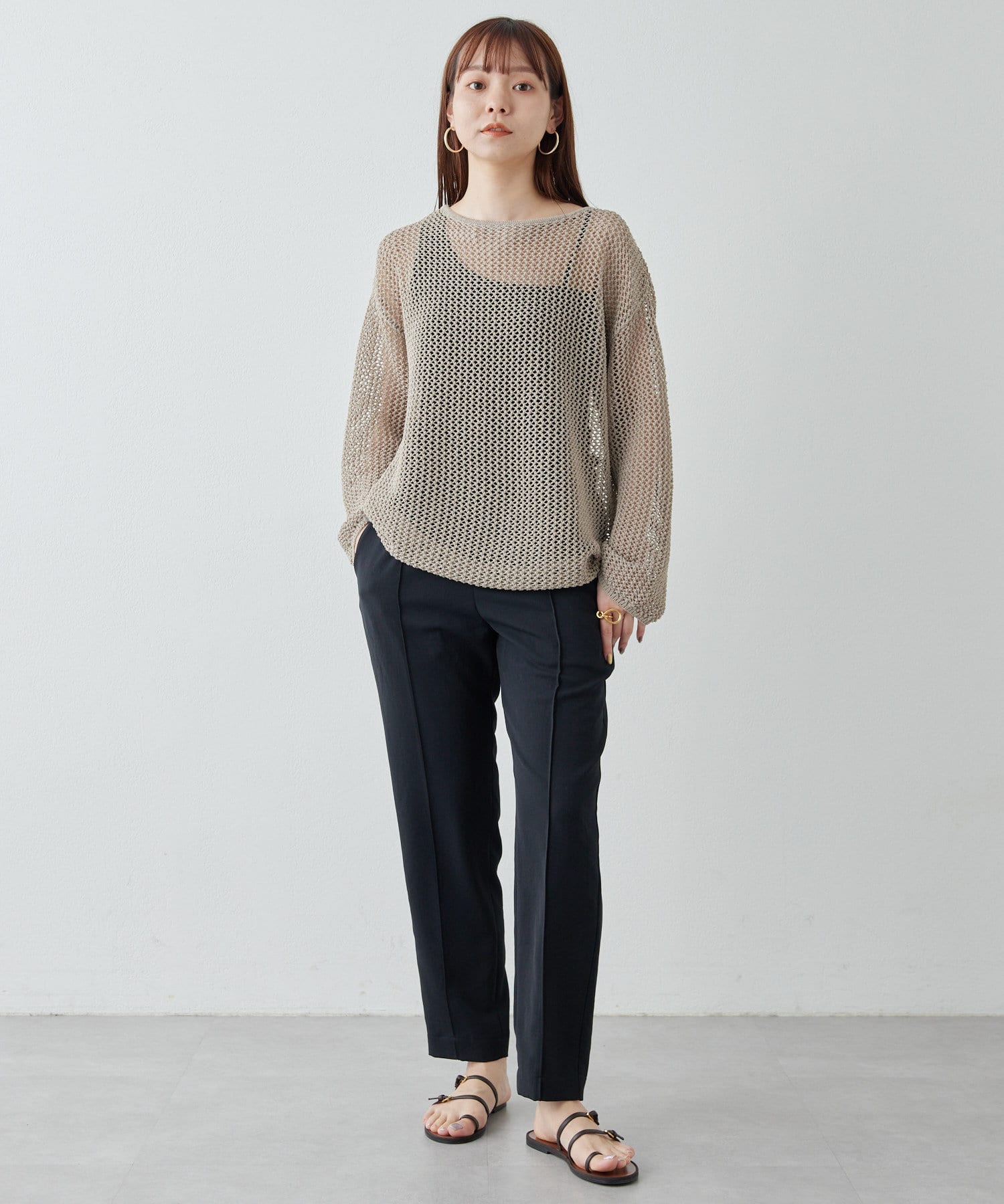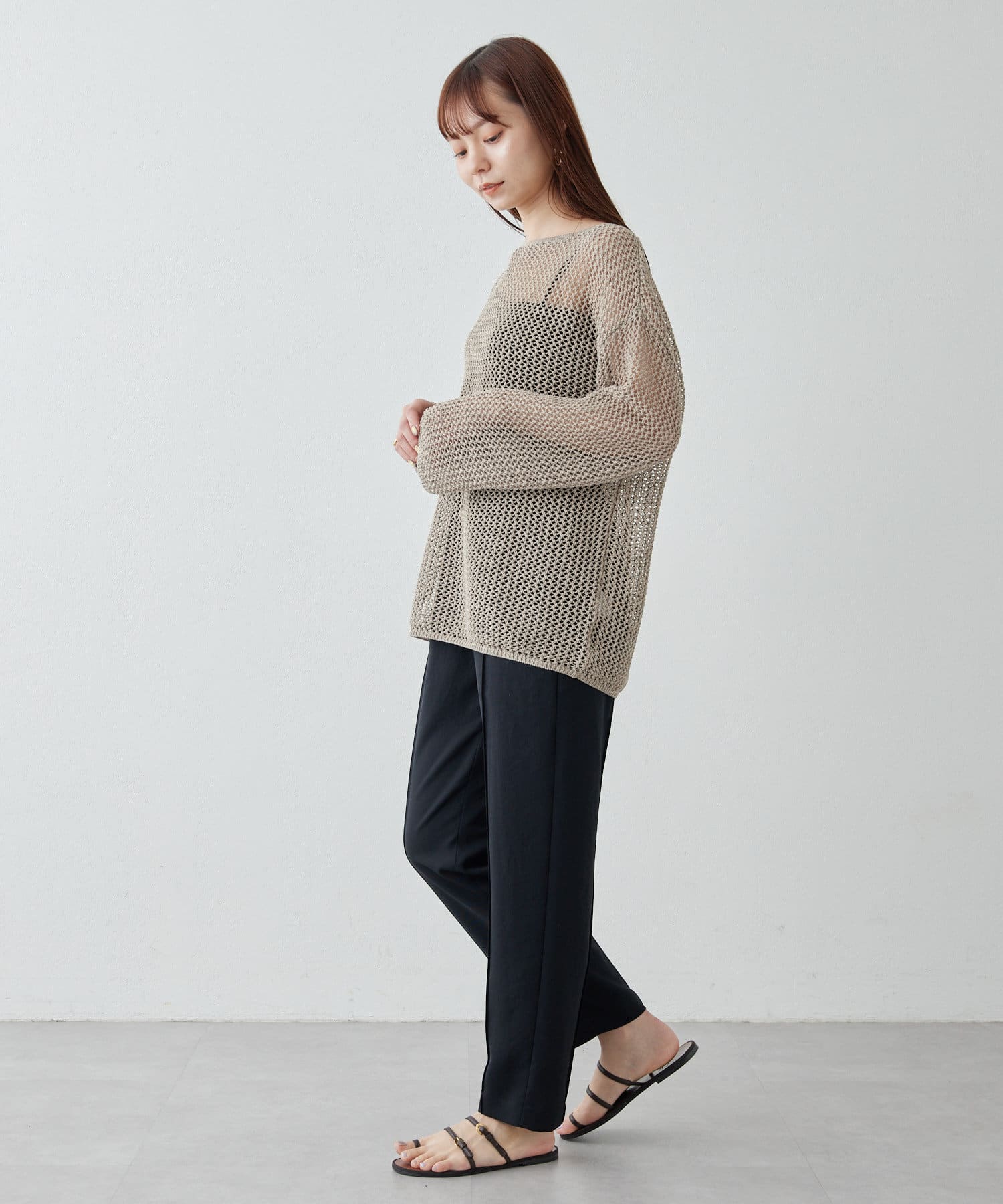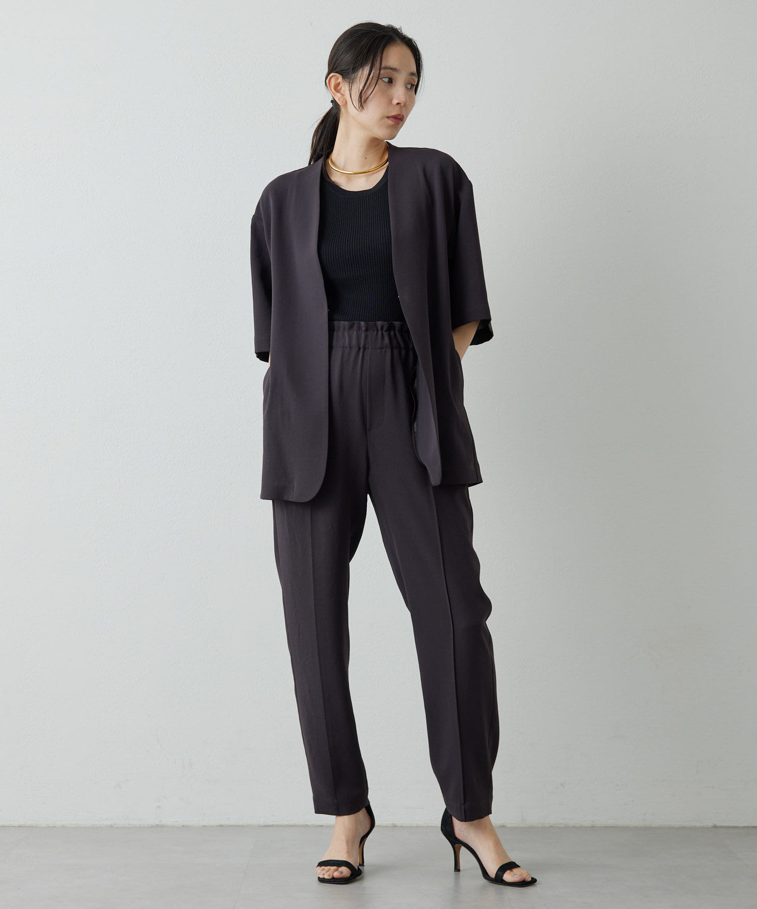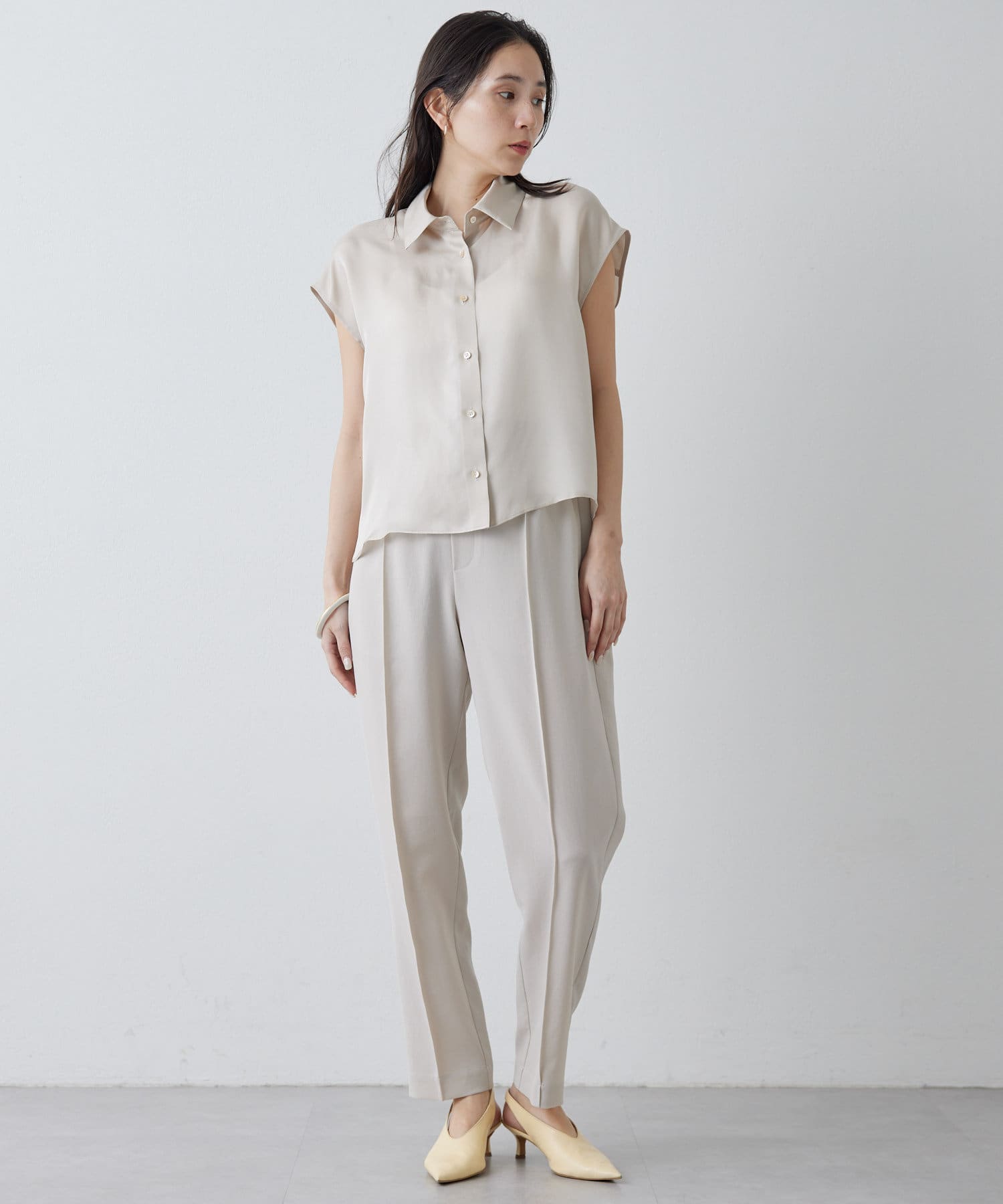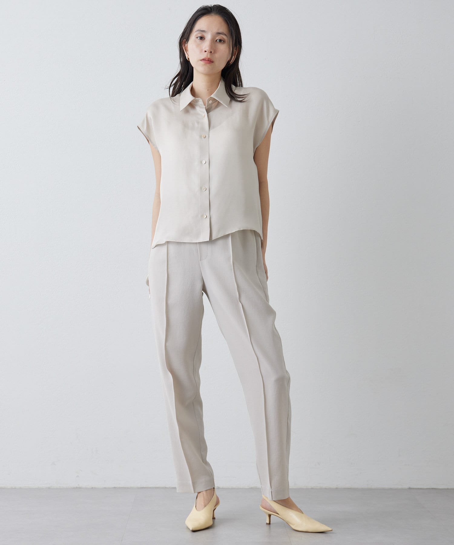 涼しく、さらっとしていて乾きやすい。梅雨や真夏におすすめです!テーパードのデザインなので、ヒールのないシューズでもバランスがとれます◎。ストレスなく履ける細見えパンツです!