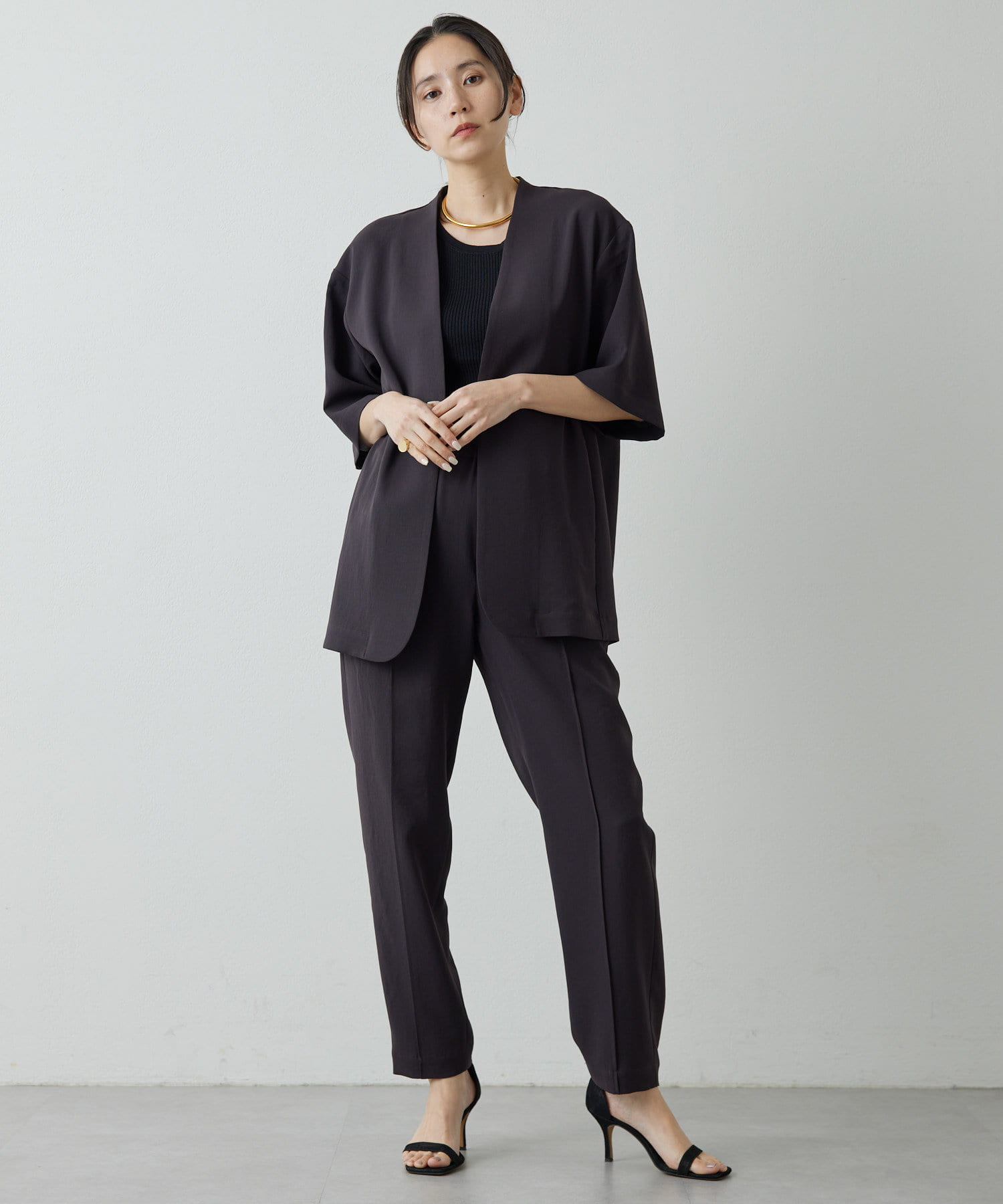 ■同素材のドライツイルハーフスリーブジャケット(ブランド品番:DNZ1041507A0001)とのセットアップもおすすめ。