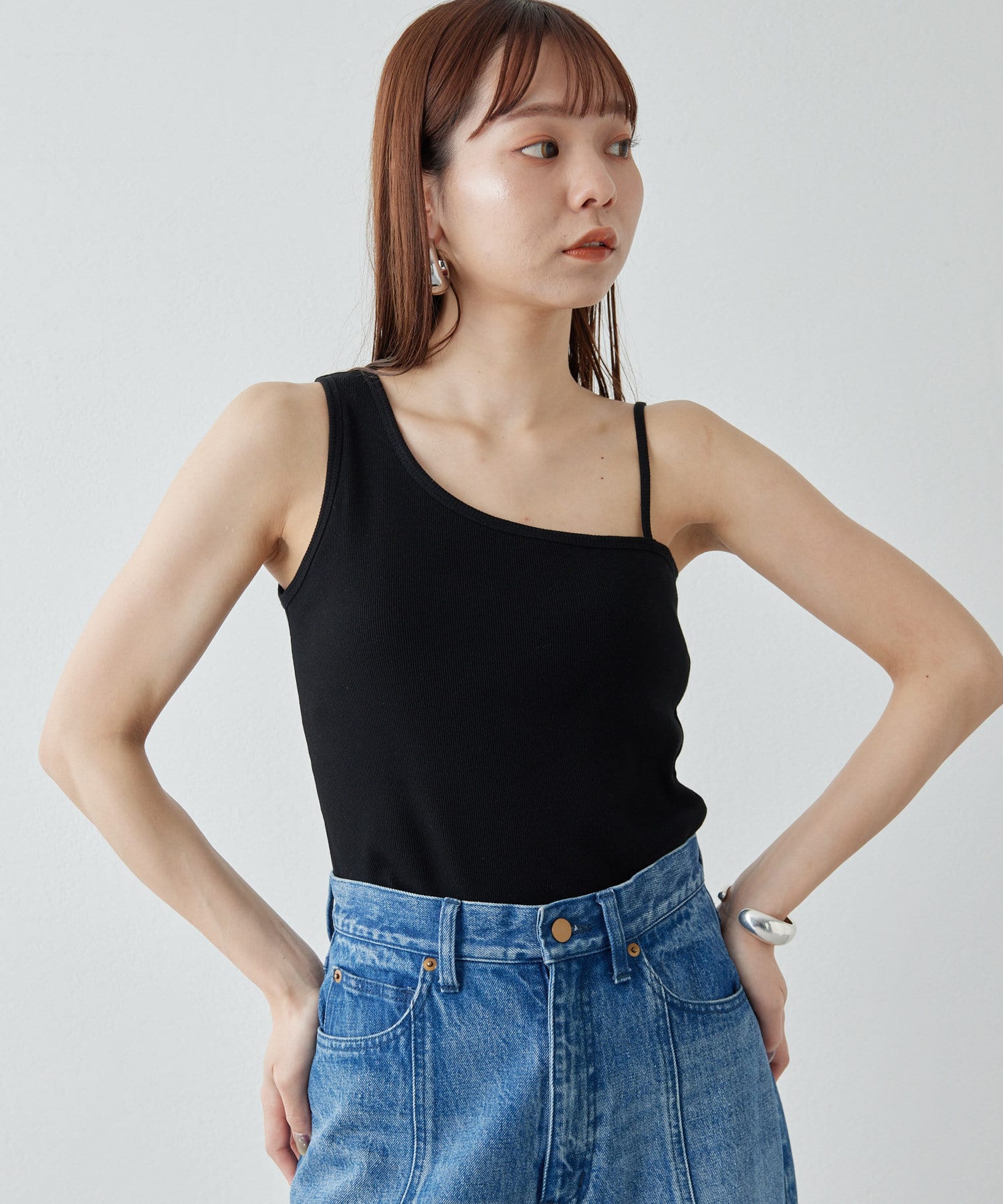 スタイリングにニュアンスをプラスする、大人のアシメタンク
